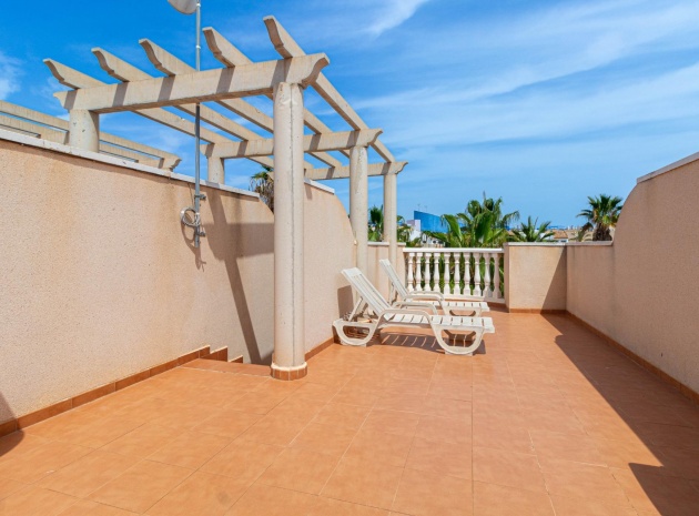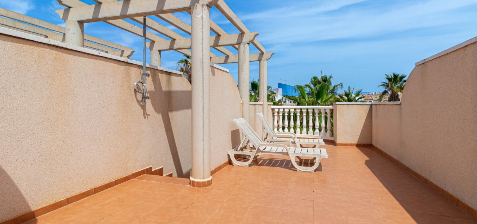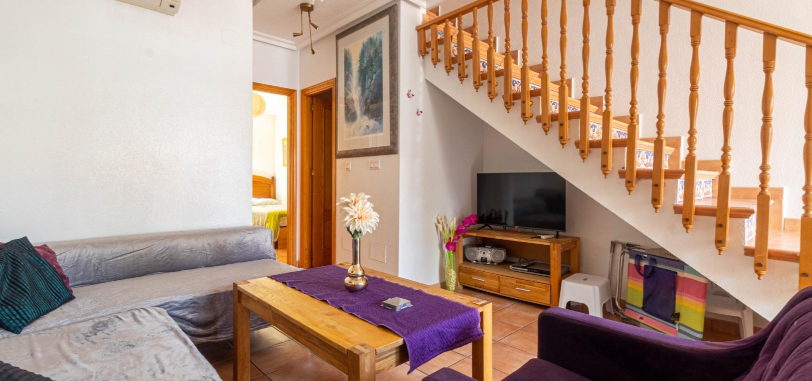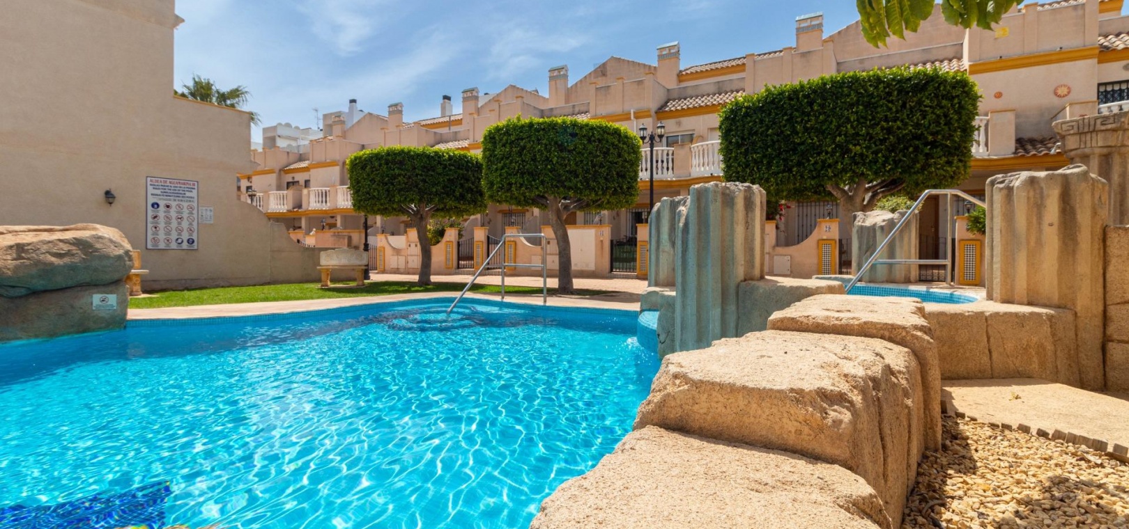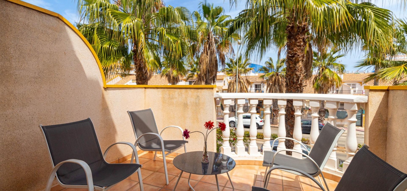 Dieses Doppelhaus zum Verkauf im Wohngebiet Aldeas de Aguamarina in Cabo Roig ist ein wahres Juwel an der Costa Blanca. Dieses Anwesen mit Touristenlizenz verfügt über 3 Schlafzimmer und 2 Badezimmer und ist damit der perfekte Ort, um einen Urlaub zu genießen oder das ganze Jahr über darin zu leben. ~~Das Haus verfügt über eine Terrasse, einen Garten und ein Solarium und bietet mehrere Außenbereiche zum Entspannen, Sonnenbaden und Genießen der seitlichen Aussicht auf das Meer. Umgeben von Palmen bietet dieses Doppelhaus eine tropische und friedliche Atmosphäre, die zum Ausruhen und Entspannen einlädt.~~Die Lage ist unschlagbar, nur einen Schritt von allen Arten von Dienstleistungen wie Geschäften, Restaurants und Supermärkten entfernt, was ein komfortables und praktisches Leben gewährleistet. Darüber hinaus können Sie durch die Nähe zum Strand das ganze Jahr über das Meer und die Sonne genießen.~~Das Anwesen verfügt für zusätzlichen Komfort über eine Klimaanlage und wird teilweise möbliert übergeben, sodass Sie problemlos einziehen und das Haus sofort genießen können.~~Dieses Stadthaus im Wohngebiet Aldeas de Aguamarina ist eine einmalige Gelegenheit für alle, die eine bezugsfertige Immobilie an der wunderschönen Costa Blanca suchen. Zögern Sie nicht, dieses Anwesen zu besichtigen und alle Annehmlichkeiten und Reize zu entdecken, die es zu bieten hat. Ein echtes Juwel in einer himmlischen Umgebung!