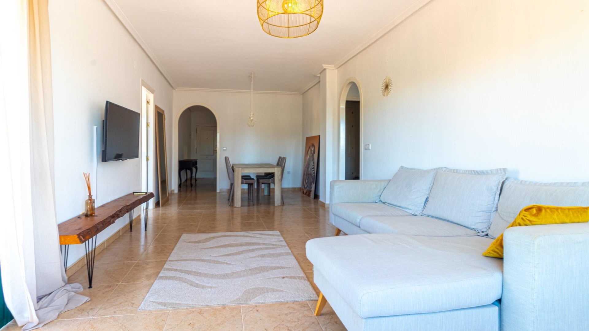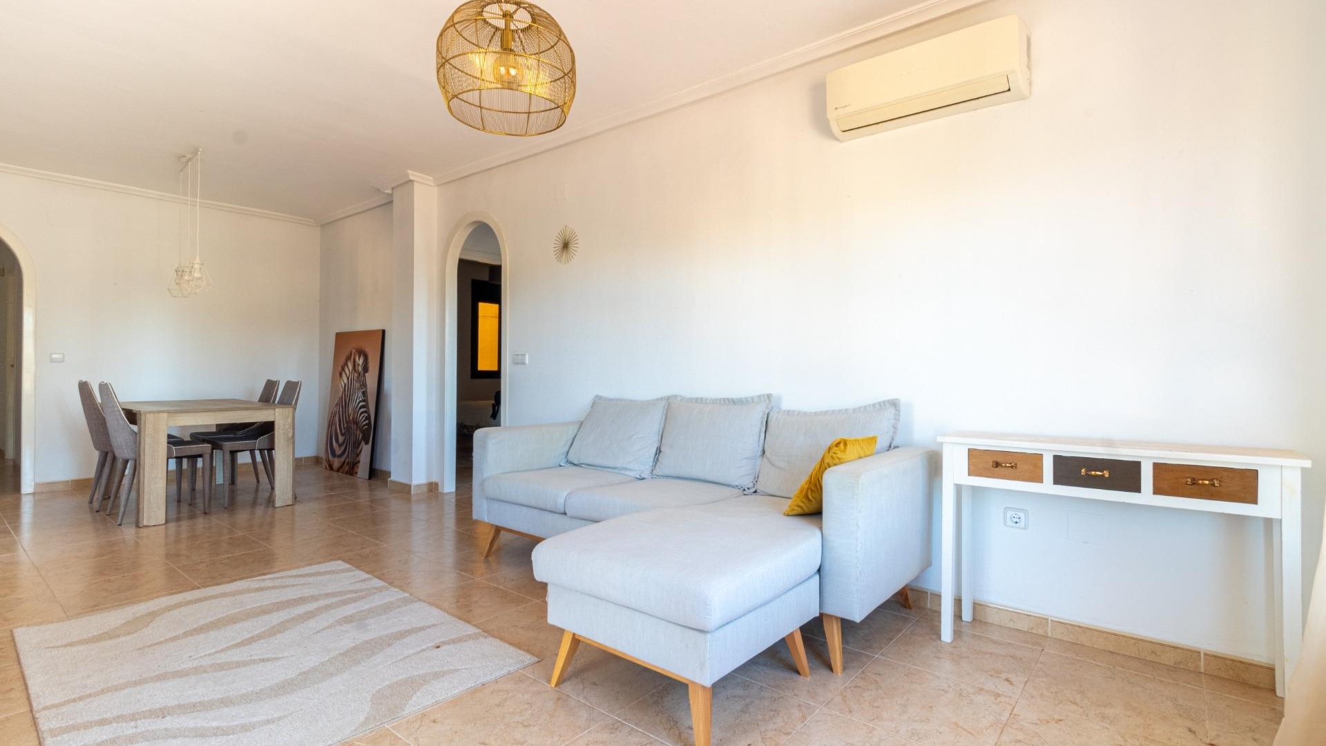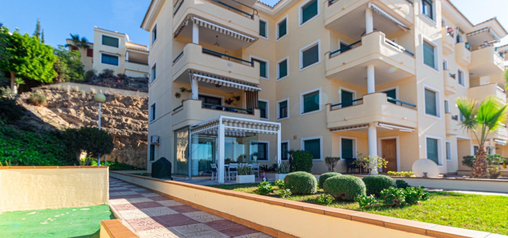 Willkommen in Ihrem neuen Zuhause im prestigeträchtigen Campoamor Golf! Wir präsentieren Ihnen diese herrliche Wohnung mit 3 Schlafzimmern und 2 Bädern zum Verkauf in einer privilegierten Lage mit unvergleichlichem Panoramablick auf den Golfplatz und die üppigen Grünflächen der Anlage. ~Vom geräumigen Wohn-Esszimmer mit seinem großen Fenster, das den Raum mit natürlichem Licht durchflutet, genießen Sie eine atemberaubende Aussicht. Der direkte Zugang zu einer Terrasse von ca. 25 m² ermöglicht es Ihnen, das mediterrane Klima im Freien zu genießen, ein Sonnenbad zu nehmen oder ein Abendessen im Freien mit der Schönheit der Landschaft im Hintergrund zu genießen. Die separate Küche mit ihrer praktischen Galerie bietet einen funktionalen und komfortablen Raum zum Zubereiten Ihrer Mahlzeiten. ~Die voll möblierte Wohnung verfügt über eine Klimaanlage für Ihren maximalen Komfort, sowohl im Sommer als auch im Winter. Darüber hinaus können Sie den erfrischenden Gemeinschaftspool genießen, der perfekt zum Entspannen und Genießen der Sonne ist. ~Campoamor Golf: Mehr als eine Anlage, es ist ein Lebensstil. Campoamor Golf liegt in einer privilegierten Gegend der Costa Blanca und bietet eine ruhige und sichere Umgebung, ideal für Familien und Golfliebhaber. Zu den Dienstleistungen gehören: ~~ Verschiedene Restaurants und Bars: Von gehobenen Restaurants bis hin zu zwanglosen Bars finden Sie Optionen für jeden Geschmack und jedes Budget.~ ~ Supermärkte und lokale Geschäfte: Alles, was Sie für den Alltag brauchen, ist in Reichweite.~ ~ In Strandnähe: In nur wenigen Autominuten können Sie die wunderschönen Strände der Costa Blanca genießen.~ ~ Einfacher Zugang zu anderen Städten: In der Nähe von Städten wie Torrevieja und Orihuela Costa gelegen, können Sie problemlos auf weitere Dienstleistungen und Attraktionen zugreifen.~ ~ ~ Kurz gesagt bietet diese Immobilie die perfekte Kombination aus Luxus, Komfort und einer privilegierten Lage. Verpassen Sie nicht die Gelegenheit, diese herrliche Wohnung in Campoamor Golf zu erwerben und einen unvergleichlichen Lebensstil zu genießen. Kontaktieren Sie uns, um einen Besichtigungstermin zu vereinbaren!