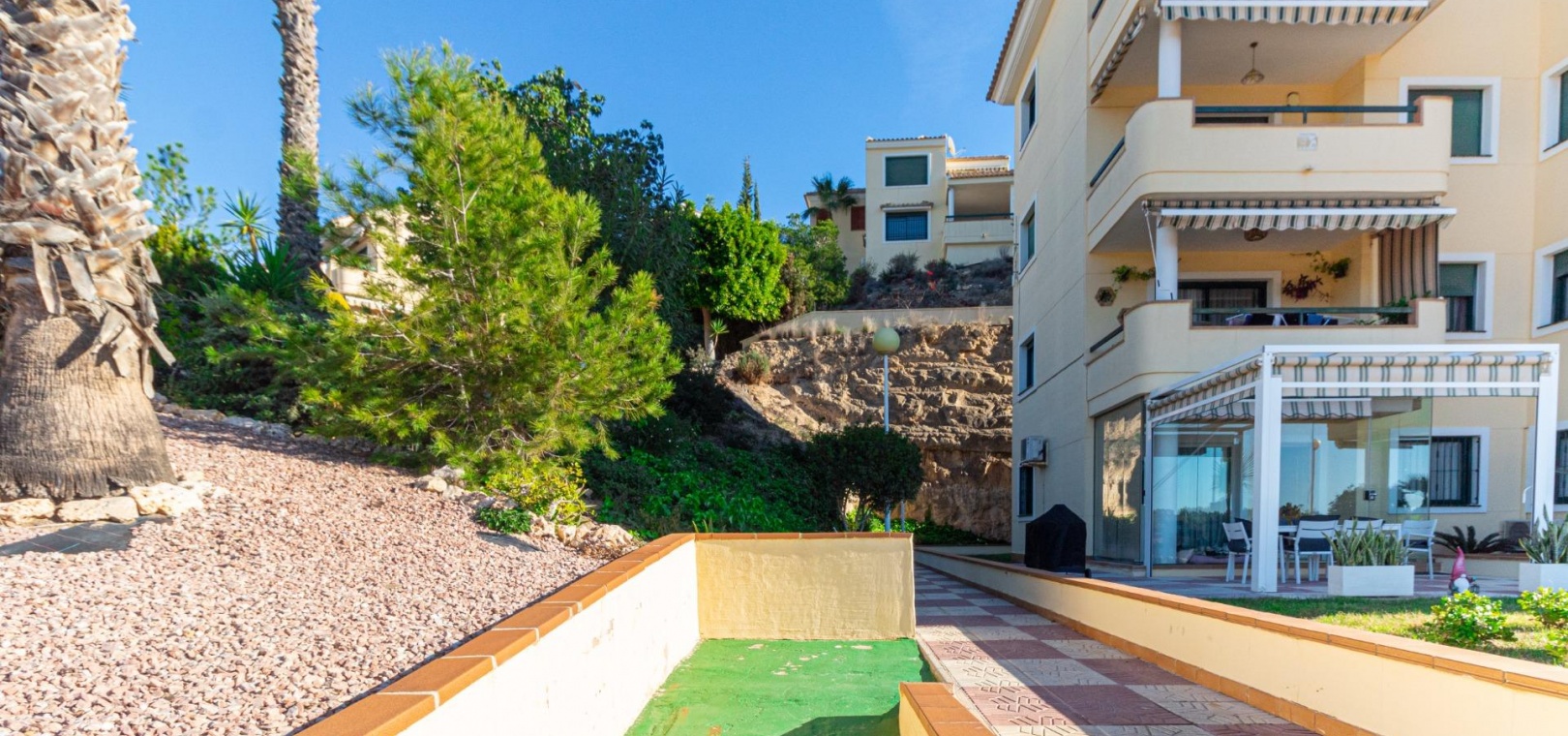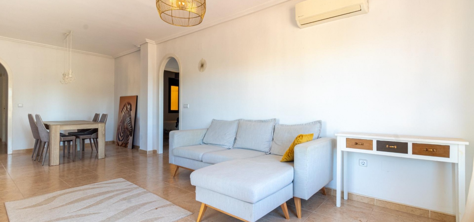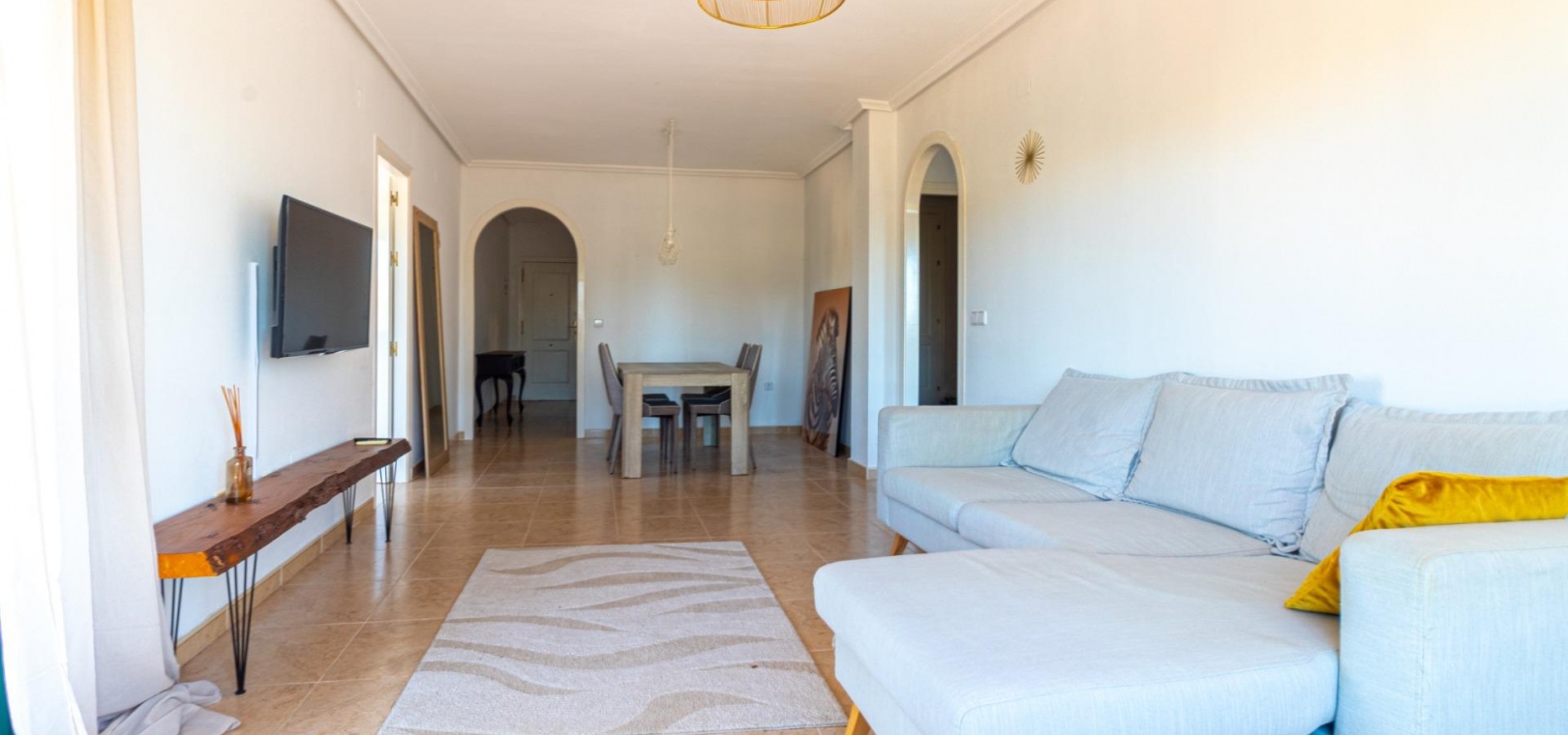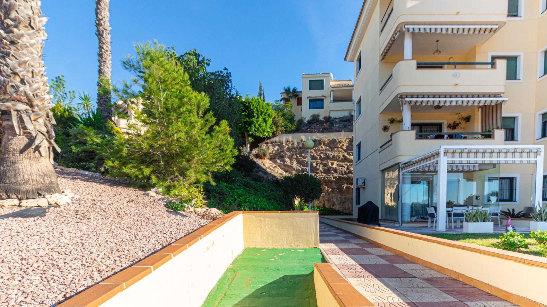 Willkommen in Ihrem neuen Zuhause im prestigeträchtigen Campoamor Golf! Wir präsentieren Ihnen diese herrliche Wohnung mit 3 Schlafzimmern und 2 Bädern zum Verkauf in einer privilegierten Lage mit unvergleichlichem Panoramablick auf den Golfplatz und die üppigen Grünflächen der Anlage. ~Vom geräumigen Wohn-Esszimmer mit seinem großen Fenster, das den Raum mit natürlichem Licht durchflutet, genießen Sie eine atemberaubende Aussicht. Der direkte Zugang zu einer Terrasse von ca. 25 m² ermöglicht es Ihnen, das mediterrane Klima im Freien zu genießen, ein Sonnenbad zu nehmen oder ein Abendessen im Freien mit der Schönheit der Landschaft im Hintergrund zu genießen. Die separate Küche mit ihrer praktischen Galerie bietet einen funktionalen und komfortablen Raum zum Zubereiten Ihrer Mahlzeiten. ~Die voll möblierte Wohnung verfügt über eine Klimaanlage für Ihren maximalen Komfort, sowohl im Sommer als auch im Winter. Darüber hinaus können Sie den erfrischenden Gemeinschaftspool genießen, der perfekt zum Entspannen und Genießen der Sonne ist. ~Campoamor Golf: Mehr als eine Anlage, es ist ein Lebensstil. Campoamor Golf liegt in einer privilegierten Gegend der Costa Blanca und bietet eine ruhige und sichere Umgebung, ideal für Familien und Golfliebhaber. Zu den Dienstleistungen gehören: ~~ Verschiedene Restaurants und Bars: Von gehobenen Restaurants bis hin zu zwanglosen Bars finden Sie Optionen für jeden Geschmack und jedes Budget.~ ~ Supermärkte und lokale Geschäfte: Alles, was Sie für den Alltag brauchen, ist in Reichweite.~ ~ In Strandnähe: In nur wenigen Autominuten können Sie die wunderschönen Strände der Costa Blanca genießen.~ ~ Einfacher Zugang zu anderen Städten: In der Nähe von Städten wie Torrevieja und Orihuela Costa gelegen, können Sie problemlos auf weitere Dienstleistungen und Attraktionen zugreifen.~ ~ ~ Kurz gesagt bietet diese Immobilie die perfekte Kombination aus Luxus, Komfort und einer privilegierten Lage. Verpassen Sie nicht die Gelegenheit, diese herrliche Wohnung in Campoamor Golf zu erwerben und einen unvergleichlichen Lebensstil zu genießen. Kontaktieren Sie uns, um einen Besichtigungstermin zu vereinbaren!