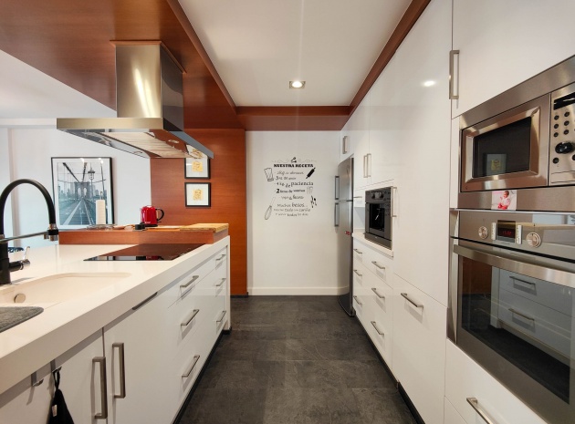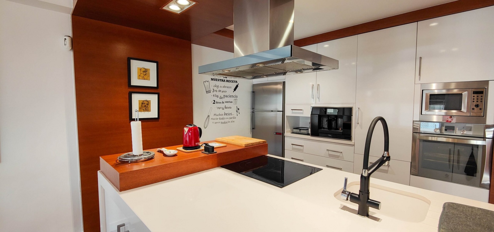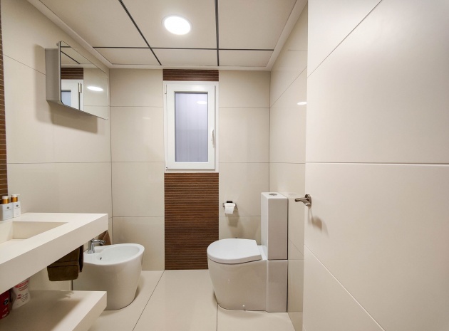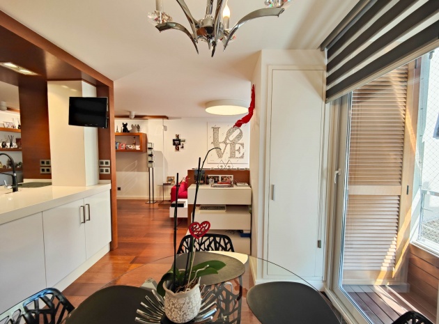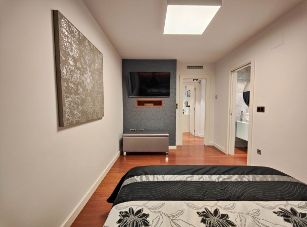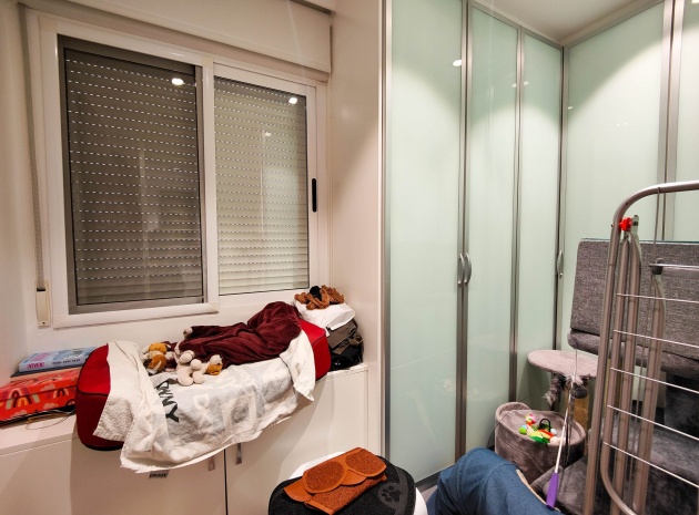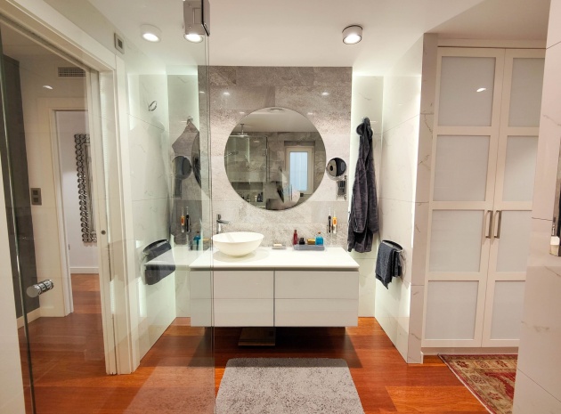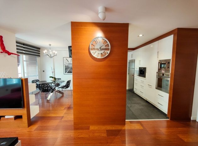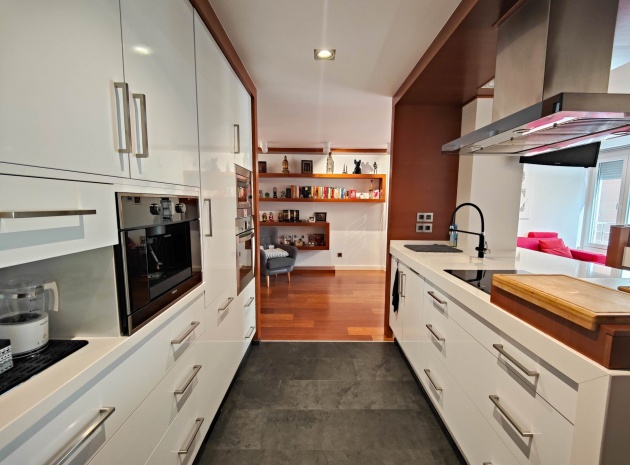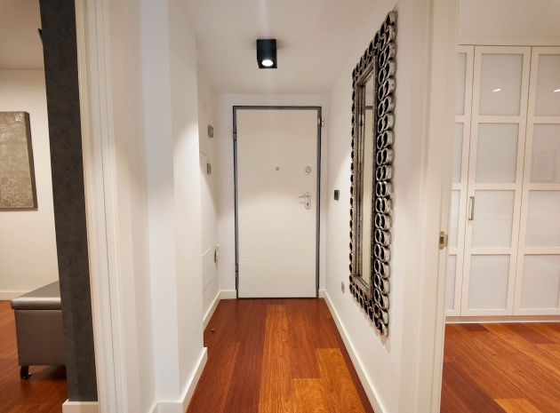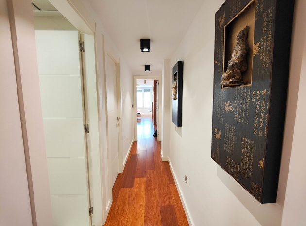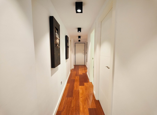 Exklusive Luxuswohnung mit Parkplatz im Zentrum von Torrevieja zu verkaufen. Wir freuen uns, Ihnen diese exklusive Luxuswohnung im Zentrum von Torrevieja präsentieren zu können. Sie liegt in einem Gebäude mit Aufzug, Baujahr 2005. Zur Wohnung gehören ein Parkplatz und ein Abstellraum im selben Gebäude. Diese Immobilie wurde vollständig und auf sehr hohem Niveau renoviert und schallisoliert, um Lärm von draußen und den Nachbarn zu vermeiden. Diese fantastische Wohnung bietet 3 Schlafzimmer, eines davon mit eigenem Badezimmer mit Marmorfliesen und einem luxuriösen italienischen Waschbecken, das zu einem geräumigen begehbaren Kleiderschrank führt. Außerdem gibt es eine geräumige Gästetoilette, ein geräumiges und sehr helles Wohnzimmer mit einer Ess- und Leseecke, eine hochwertige, voll ausgestattete Küche mit einer großen Kücheninsel mit viel Stauraum und eine kleine Südterrasse. Das Wohnzimmer erhält dank seiner großen Fenster und der Südausrichtung viel natürliches Licht. Es wird möbliert und mit Waren, mit Ausnahme persönlicher Gegenstände, verkauft. Die Wohnung verfügt über viele Extras wie eine Klimaanlage im gesamten Gebäude, eine Alarmanlage, hochwertiges Parkett, eine Sicherheitstür, elektrische Rollläden usw.----