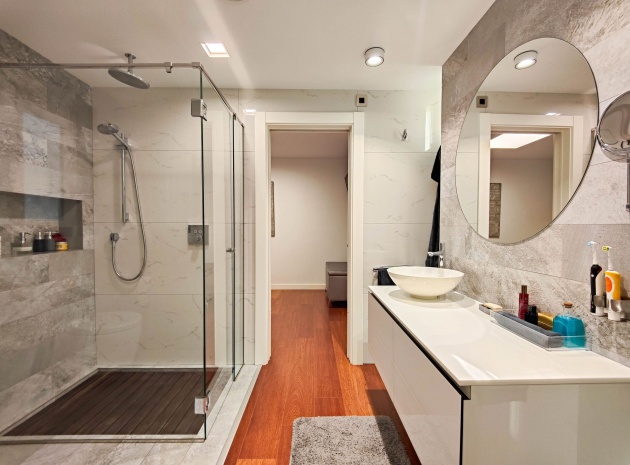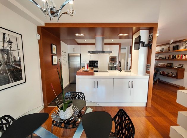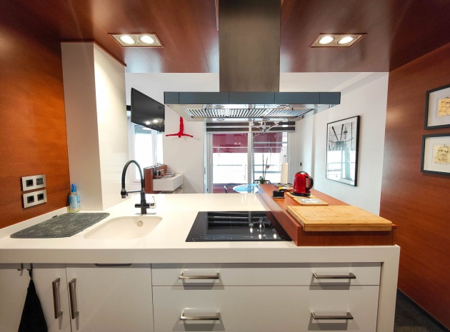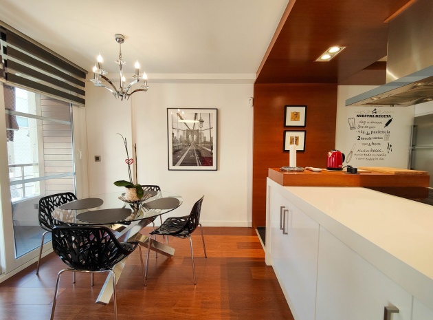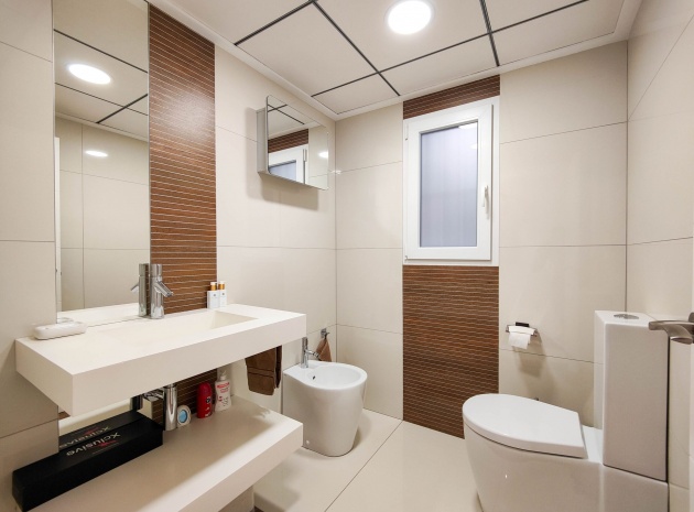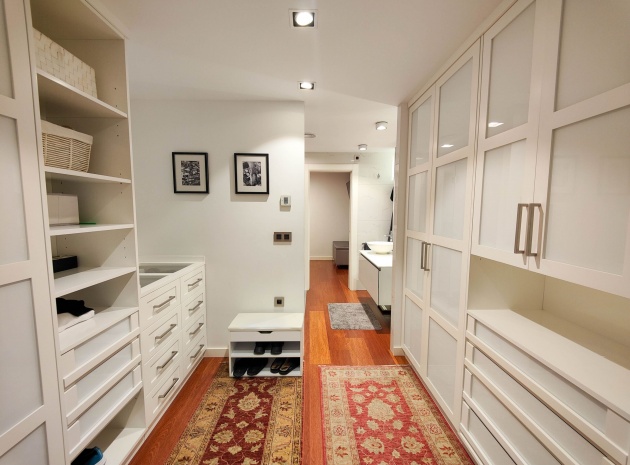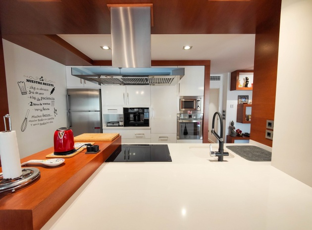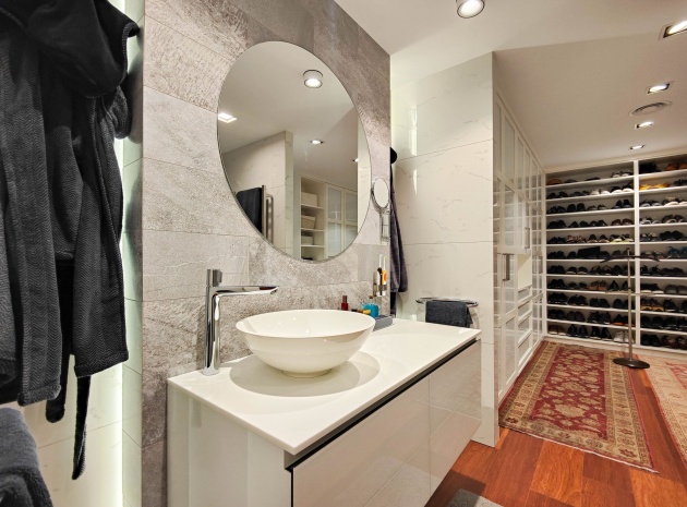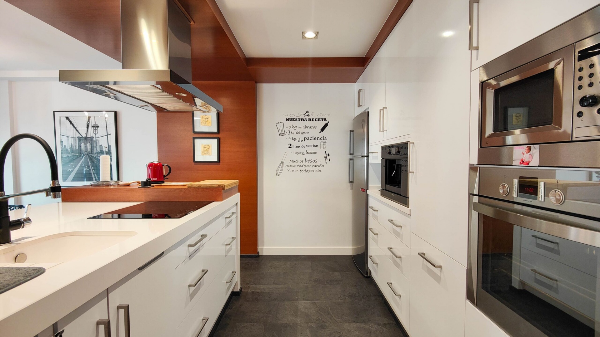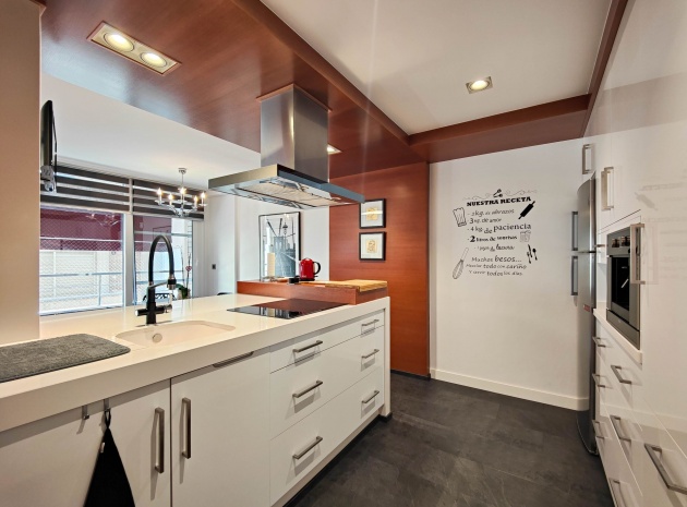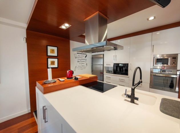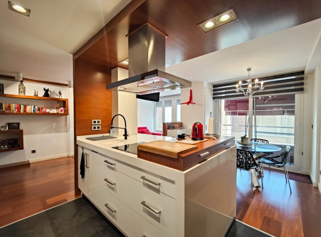 Exklusive Luxuswohnung mit Parkplatz im Zentrum von Torrevieja zu verkaufen. Wir freuen uns, Ihnen diese exklusive Luxuswohnung im Zentrum von Torrevieja präsentieren zu können. Sie liegt in einem Gebäude mit Aufzug, Baujahr 2005. Zur Wohnung gehören ein Parkplatz und ein Abstellraum im selben Gebäude. Diese Immobilie wurde vollständig und auf sehr hohem Niveau renoviert und schallisoliert, um Lärm von draußen und den Nachbarn zu vermeiden. Diese fantastische Wohnung bietet 3 Schlafzimmer, eines davon mit eigenem Badezimmer mit Marmorfliesen und einem luxuriösen italienischen Waschbecken, das zu einem geräumigen begehbaren Kleiderschrank führt. Außerdem gibt es eine geräumige Gästetoilette, ein geräumiges und sehr helles Wohnzimmer mit einer Ess- und Leseecke, eine hochwertige, voll ausgestattete Küche mit einer großen Kücheninsel mit viel Stauraum und eine kleine Südterrasse. Das Wohnzimmer erhält dank seiner großen Fenster und der Südausrichtung viel natürliches Licht. Es wird möbliert und mit Waren, mit Ausnahme persönlicher Gegenstände, verkauft. Die Wohnung verfügt über viele Extras wie eine Klimaanlage im gesamten Gebäude, eine Alarmanlage, hochwertiges Parkett, eine Sicherheitstür, elektrische Rollläden usw.----
