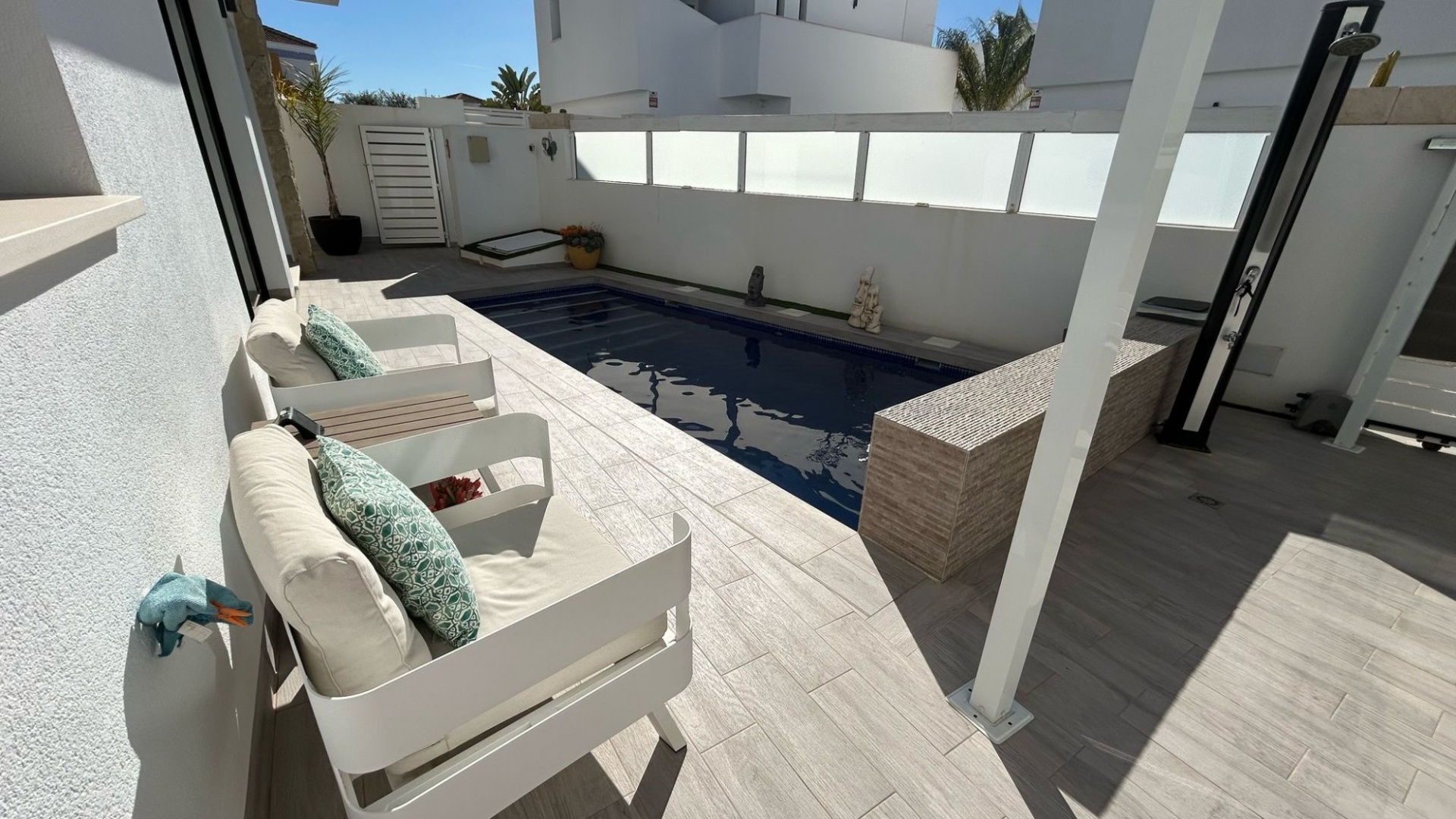 Gehen Sie nach draußen und genießen Sie den privaten Pool, der sich an warmen Tagen ideal zum Abkühlen eignet, oder genießen Sie die Sonne vom Solarium und der Terrasse. Die Villa verfügt außerdem über einen privaten Garten, einen Balkon und viel Stauraum. Sie ist teilweise möbliert. Ausgestattet mit Klimaanlage, Heizung und modernen Geräten ist dieses Haus bezugsfertig.