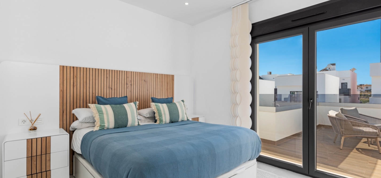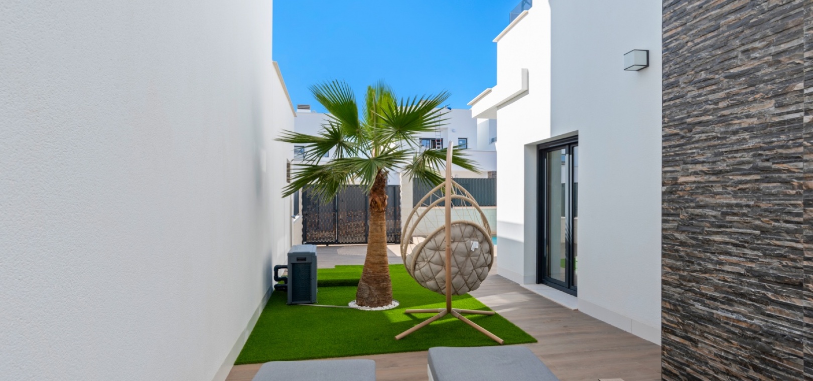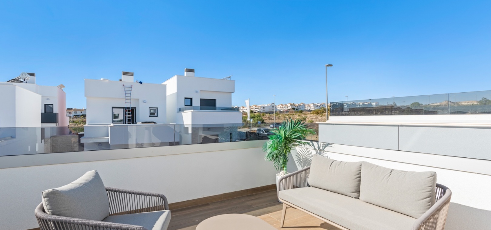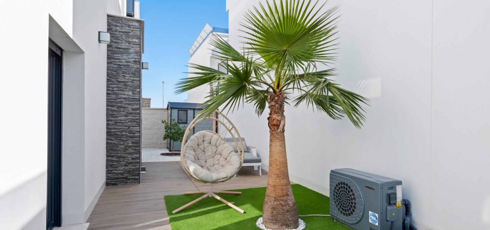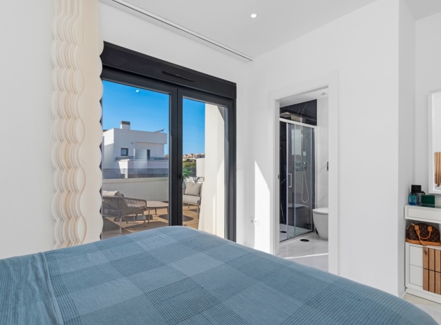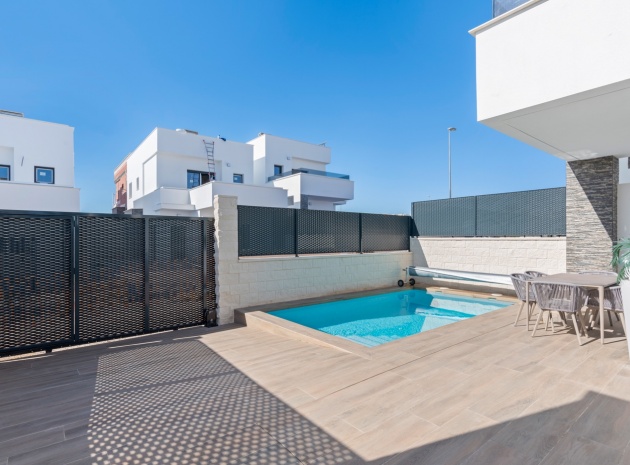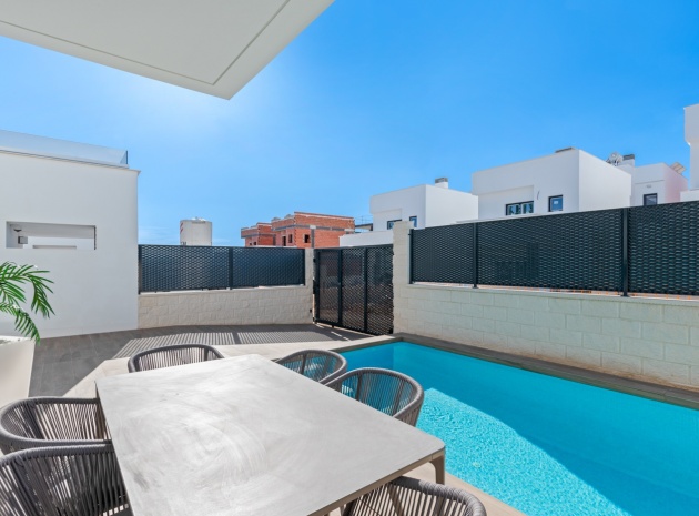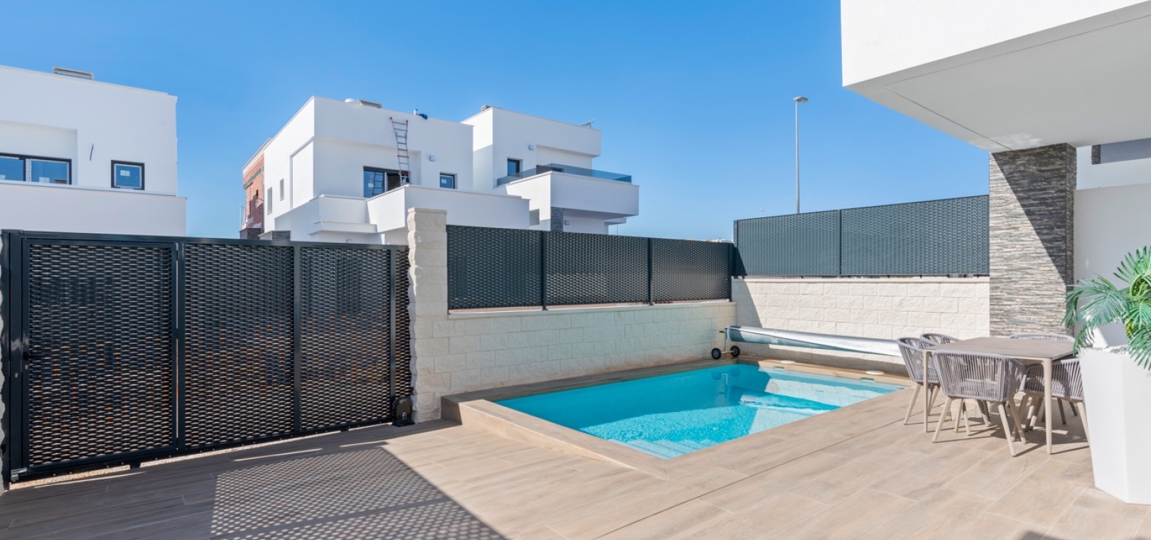 Willkommen in dieser luxuriösen Villa mit großartiger Lage in Vistabella Golf. Das Anwesen wurde 2024 fertiggestellt und verfügt über einen hohen Standard und großartige Außenbereiche mit privaten Terrassen, Garten und einem privaten beheizten Pool. Die Villa erstreckt sich über zwei Etagen. Im Erdgeschoss finden Sie das Wohnzimmer mit offener Küche, ein Schlafzimmer und ein Badezimmer. Im zweiten Stock haben Sie zwei weitere Schlafzimmer mit eigenem Bad. Vom Hauptschlafzimmer aus haben Sie Zugang zu einer geräumigen Terrasse. Vom zweiten Stock aus können Sie die Treppe hinauf zum großen Solarium nehmen. Hier haben Sie viel Platz, um die Sonne und die herrliche Aussicht auf die Umgebung zu genießen. Das Anwesen hat Sonnenkollektoren installiert. Auf dem Grundstück gibt es Parkplätze. Für weitere Informationen oder um einen Besichtigungstermin zu vereinbaren, kontaktieren Sie uns!