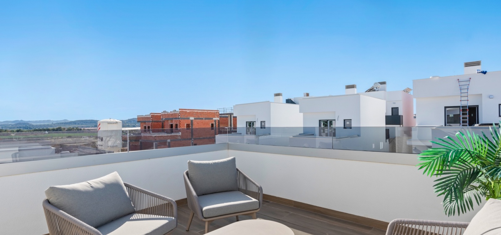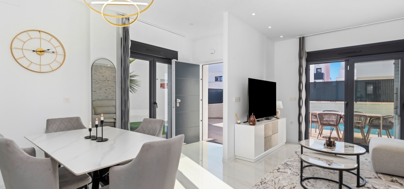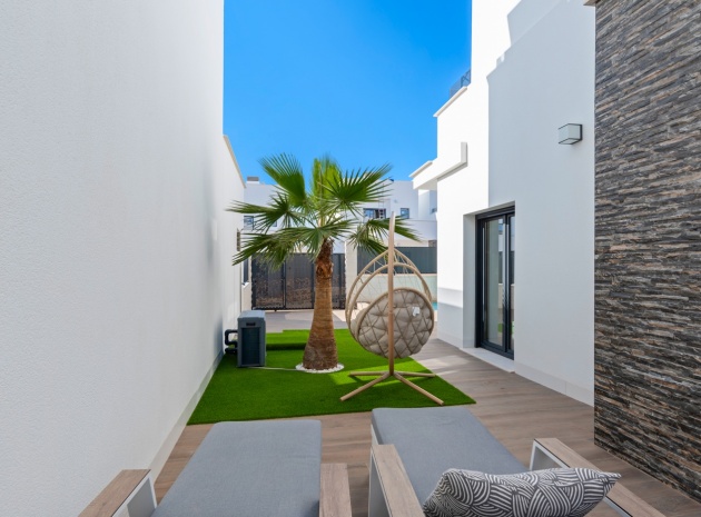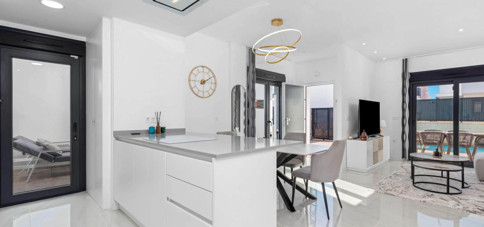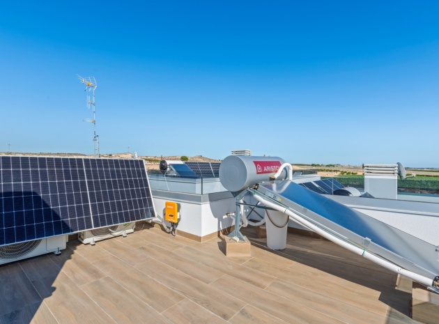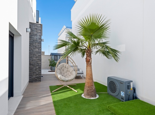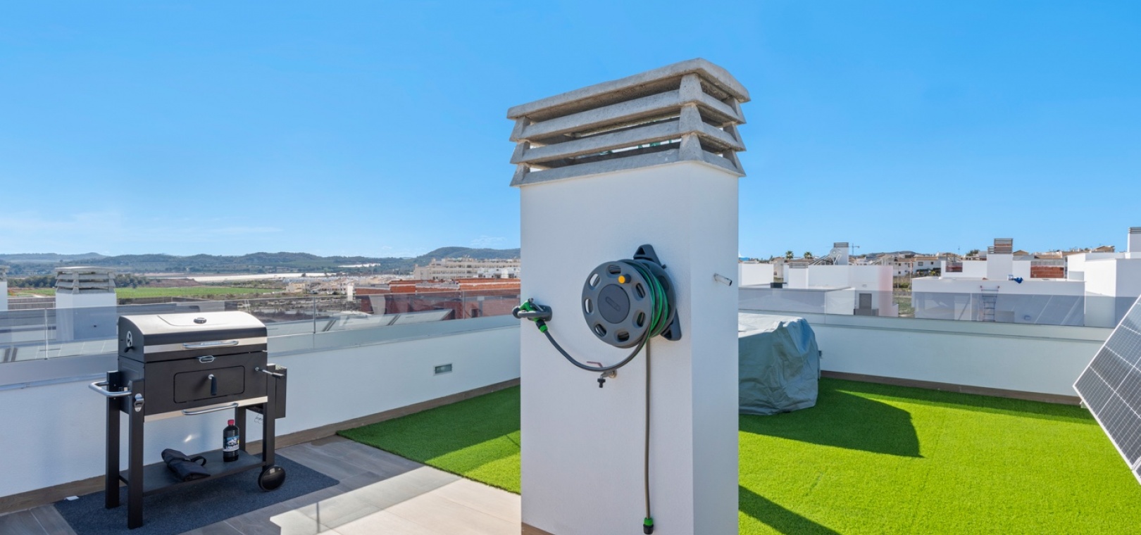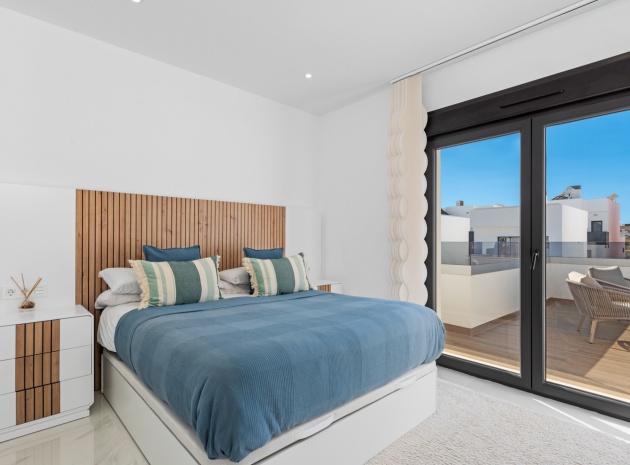 Willkommen in dieser luxuriösen Villa mit großartiger Lage in Vistabella Golf. Das Anwesen wurde 2024 fertiggestellt und verfügt über einen hohen Standard und großartige Außenbereiche mit privaten Terrassen, Garten und einem privaten beheizten Pool. Die Villa erstreckt sich über zwei Etagen. Im Erdgeschoss finden Sie das Wohnzimmer mit offener Küche, ein Schlafzimmer und ein Badezimmer. Im zweiten Stock haben Sie zwei weitere Schlafzimmer mit eigenem Bad. Vom Hauptschlafzimmer aus haben Sie Zugang zu einer geräumigen Terrasse. Vom zweiten Stock aus können Sie die Treppe hinauf zum großen Solarium nehmen. Hier haben Sie viel Platz, um die Sonne und die herrliche Aussicht auf die Umgebung zu genießen. Das Anwesen hat Sonnenkollektoren installiert. Auf dem Grundstück gibt es Parkplätze. Für weitere Informationen oder um einen Besichtigungstermin zu vereinbaren, kontaktieren Sie uns!