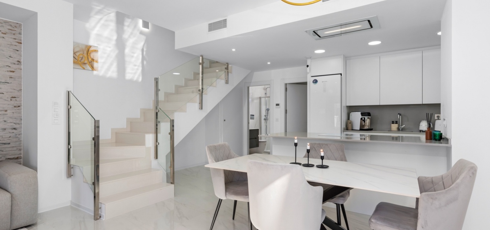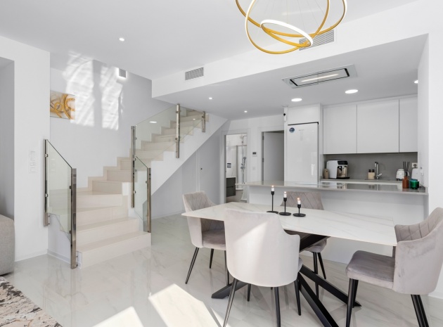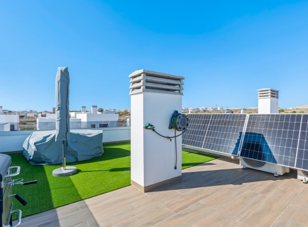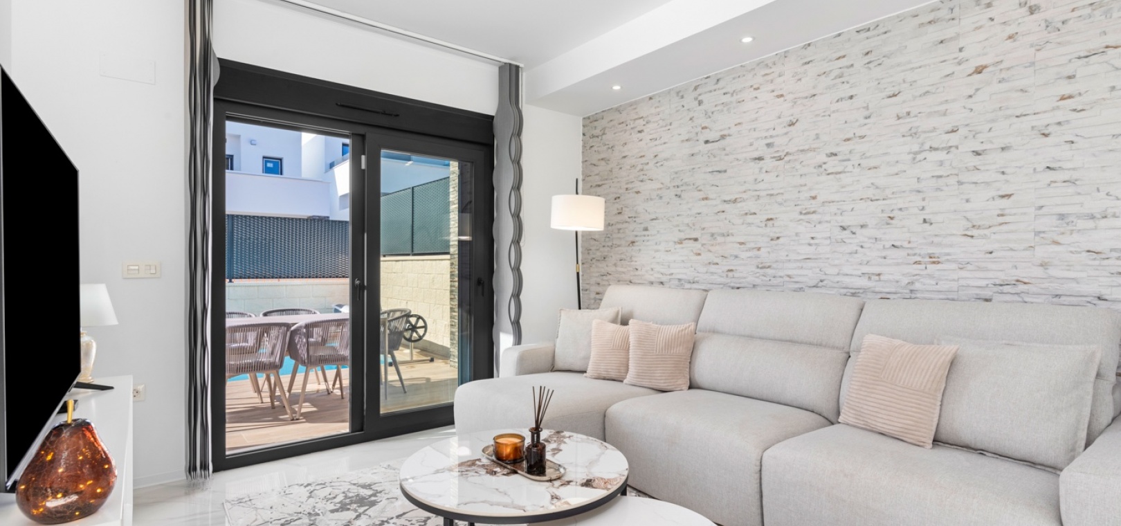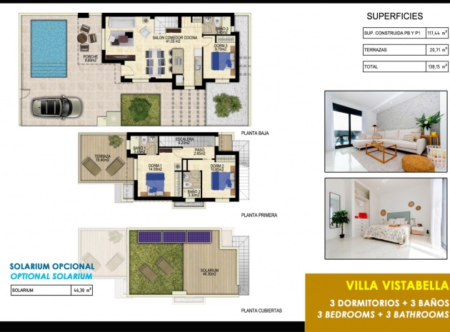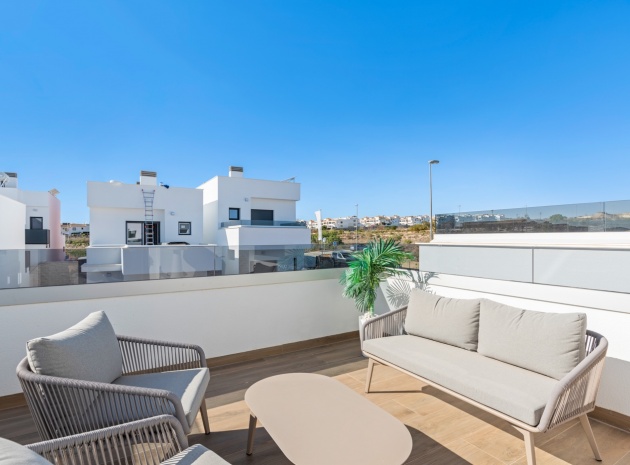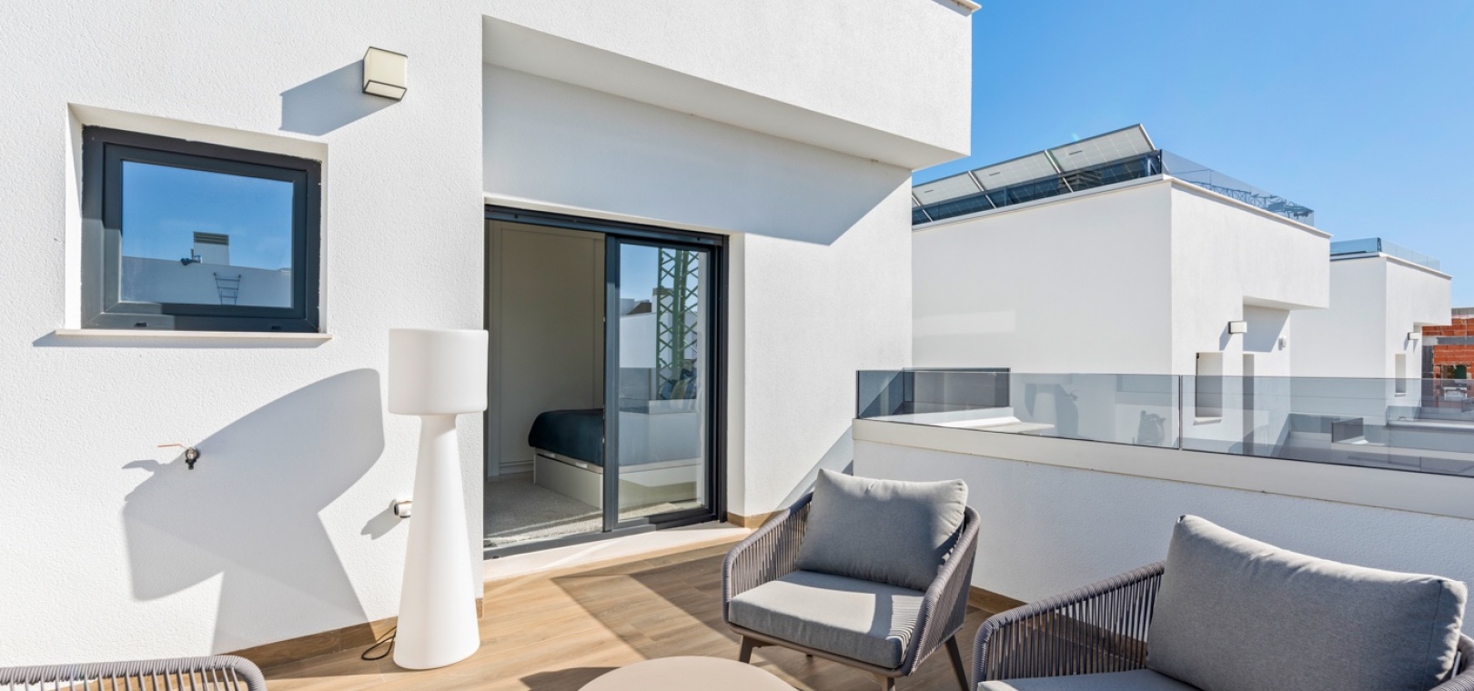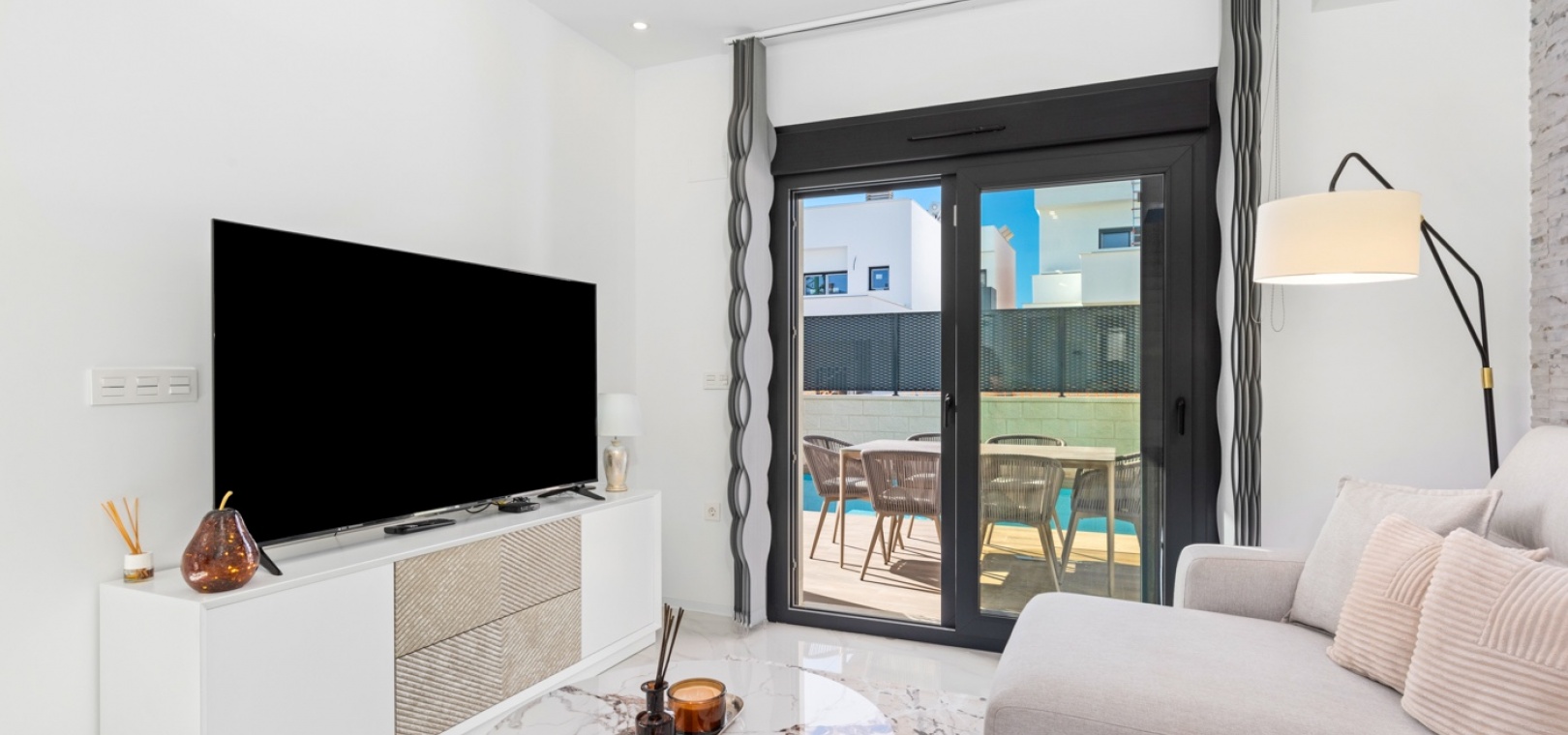 Willkommen in dieser luxuriösen Villa mit großartiger Lage in Vistabella Golf. Das Anwesen wurde 2024 fertiggestellt und verfügt über einen hohen Standard und großartige Außenbereiche mit privaten Terrassen, Garten und einem privaten beheizten Pool. Die Villa erstreckt sich über zwei Etagen. Im Erdgeschoss finden Sie das Wohnzimmer mit offener Küche, ein Schlafzimmer und ein Badezimmer. Im zweiten Stock haben Sie zwei weitere Schlafzimmer mit eigenem Bad. Vom Hauptschlafzimmer aus haben Sie Zugang zu einer geräumigen Terrasse. Vom zweiten Stock aus können Sie die Treppe hinauf zum großen Solarium nehmen. Hier haben Sie viel Platz, um die Sonne und die herrliche Aussicht auf die Umgebung zu genießen. Das Anwesen hat Sonnenkollektoren installiert. Auf dem Grundstück gibt es Parkplätze. Für weitere Informationen oder um einen Besichtigungstermin zu vereinbaren, kontaktieren Sie uns!