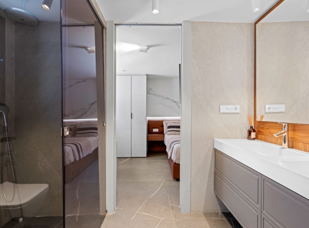 Im Untergeschoss der Immobilie finden wir ein geräumiges Wohnzimmer, einen Fitnessraum, 3 Schlafzimmer, 2 Badezimmer und eine Waschküche mit viel Stauraum. Im Erdgeschoss finden wir ein Esszimmer auf zwei Ebenen mit freiem Blick auf das Meer. Darüber hinaus finden wir auf dieser Etage eine amerikanische Küche im italienischen Design, komplett fertiggestellt und mit Geräten der besten Marken ausgestattet. Im ersten Stock des Hauses befinden sich ein Hauptraum mit Bad und Balkon sowie 2 weitere Schlafzimmer und 1 Badezimmer.