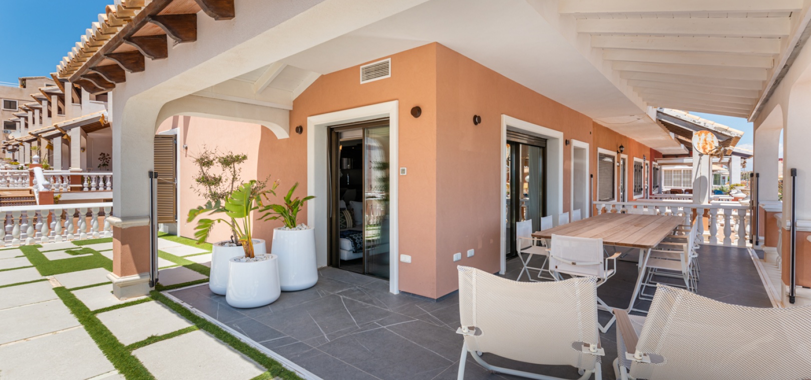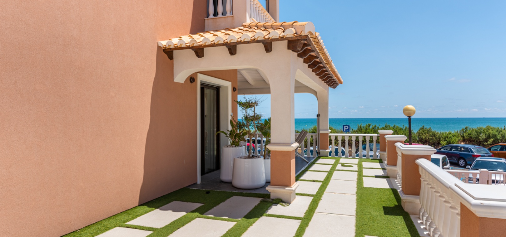Dieses im Jahr 2021 kürzlich renovierte Anwesen bietet einen Panoramablick auf einen der schönsten Strände der Costa Blanca, Playa de la Roqueta in Guardamar. Del Segura. Es handelt sich um einen offenen Strand in der Nähe des Centro-Strands und des Moncayo-Strands. Das Haus ist Teil einer Wohnanlage (Residencial Benamor) und verfügt über eine perfekte Ausrichtung, die es Ihnen ermöglicht, das mediterrane Klima optimal zu nutzen.
