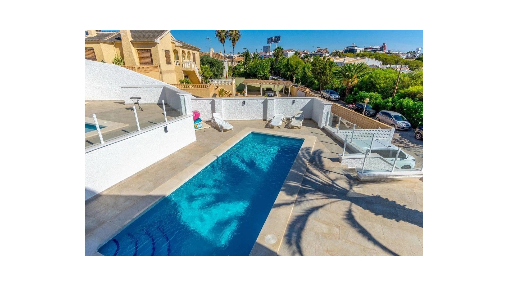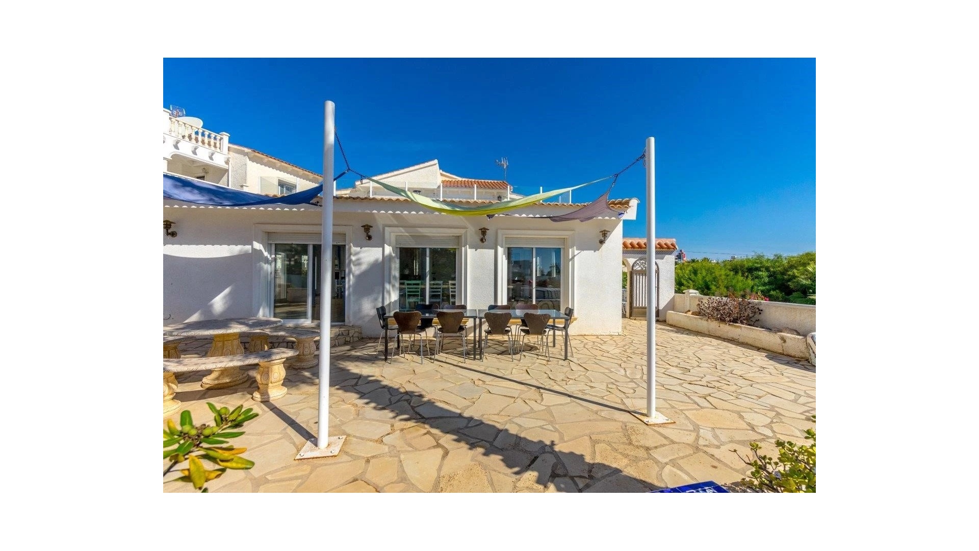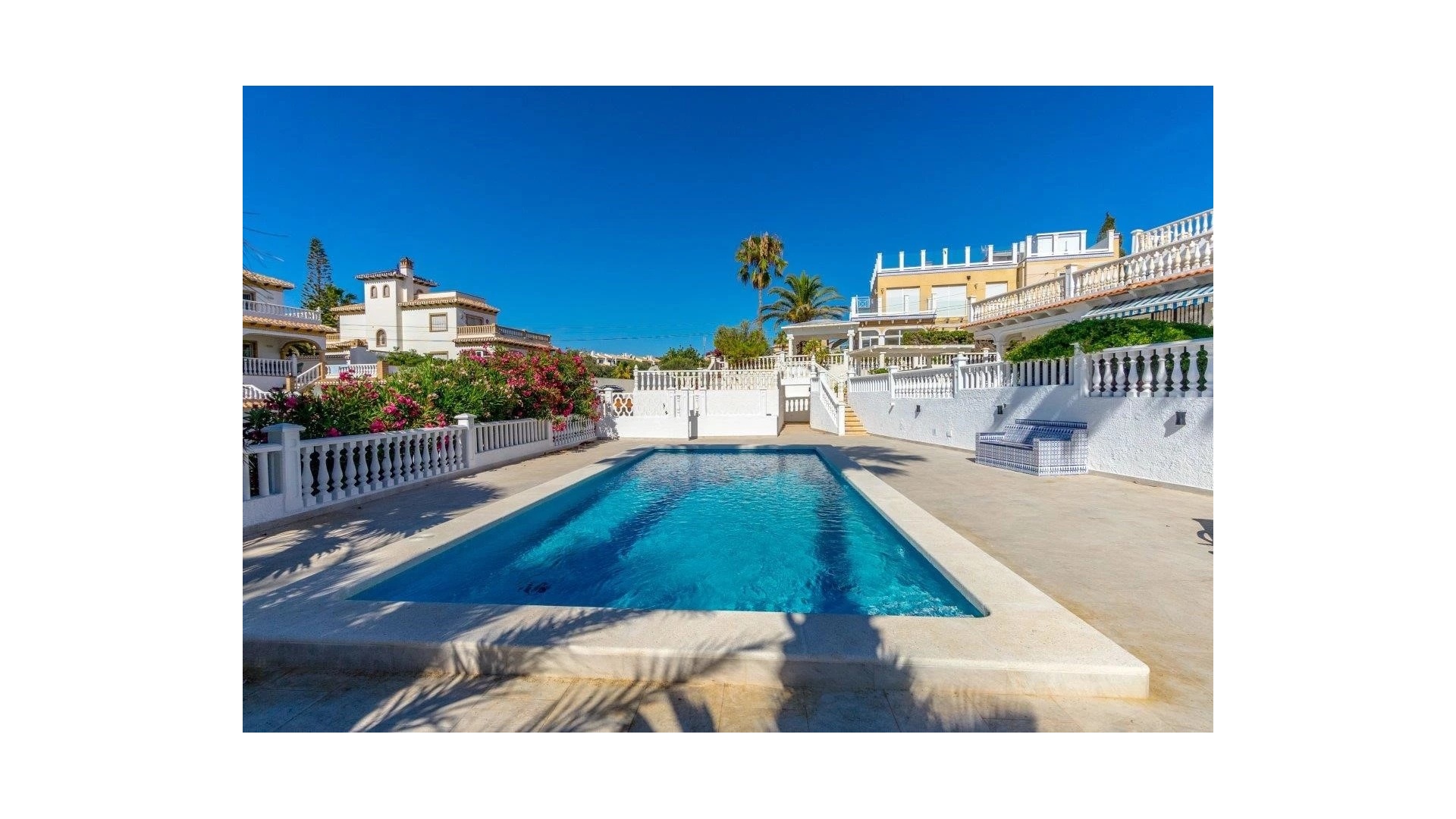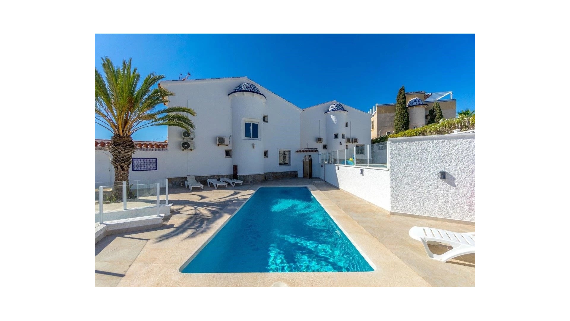 Die Villa besteht aus 3 Schlafzimmern, 3 Bädern und verfügt über eine voll ausgestattete Küche sowie weitere spektakuläre Ausstattungsmerkmale wie 2 Wohnbereiche, zahlreiche Terrassen und einen Grillbereich, was diese Villa zu einem fantastischen Zentrum für Unterhaltung macht. Der Eigentümer der Immobilie hat das Badezimmer mit einem modernen mediterranen Touch renoviert und auf dem Gelände einen brandneuen Pool installiert. Diese Immobilie verfügt auch über einen Gemeinschaftsbereich, der ebenfalls über einen Pool verfügt, den die Bewohner nutzen können (mit der Vereinbarung des Eigentümers, die Wartungskosten zu teilen).