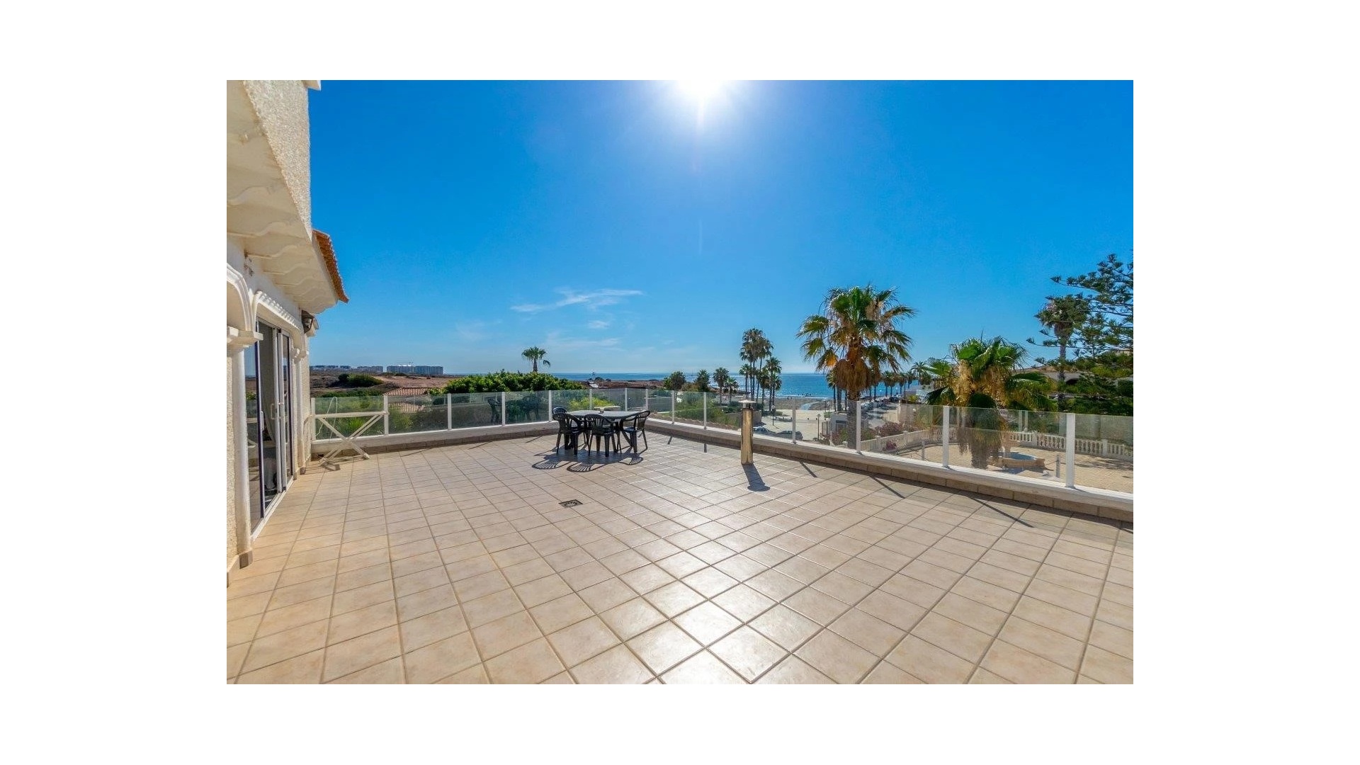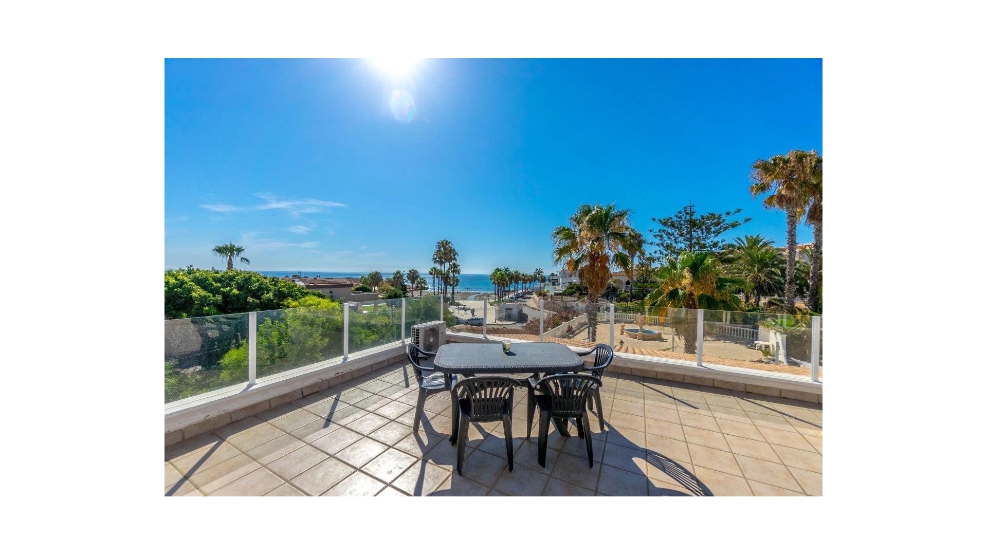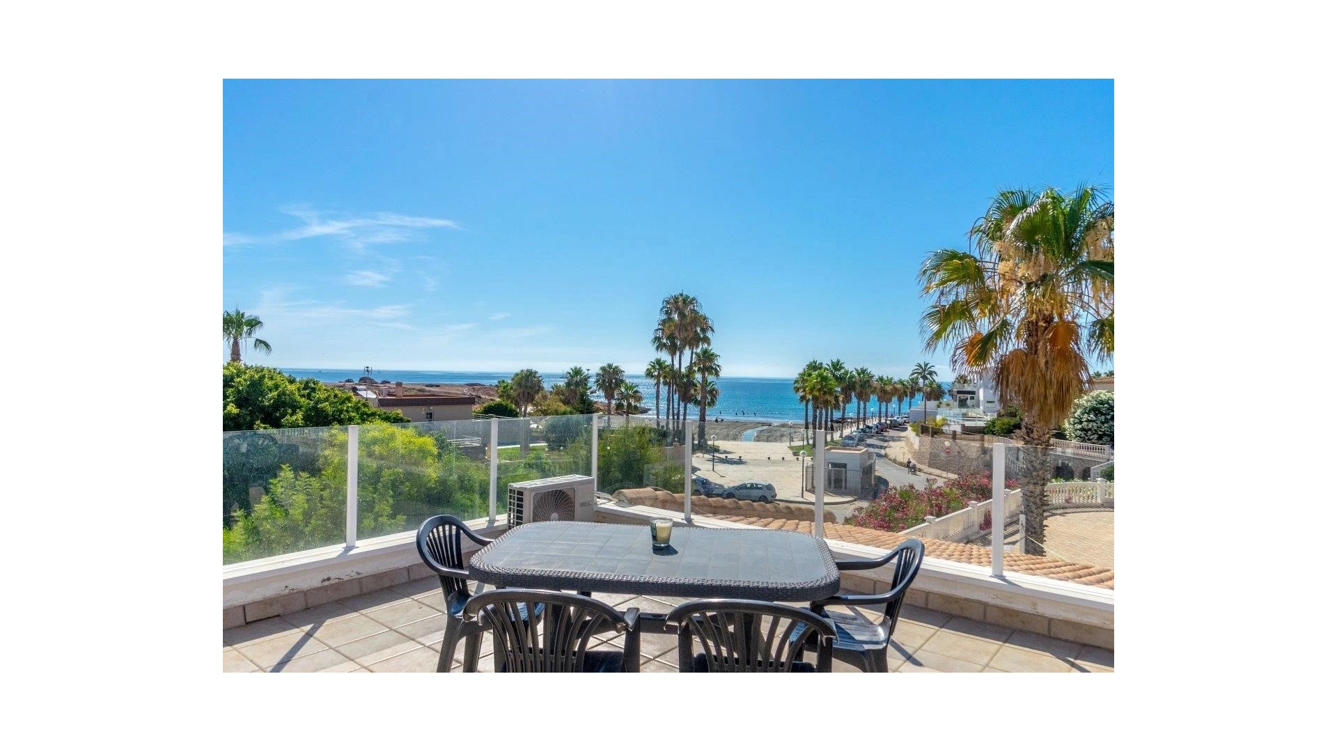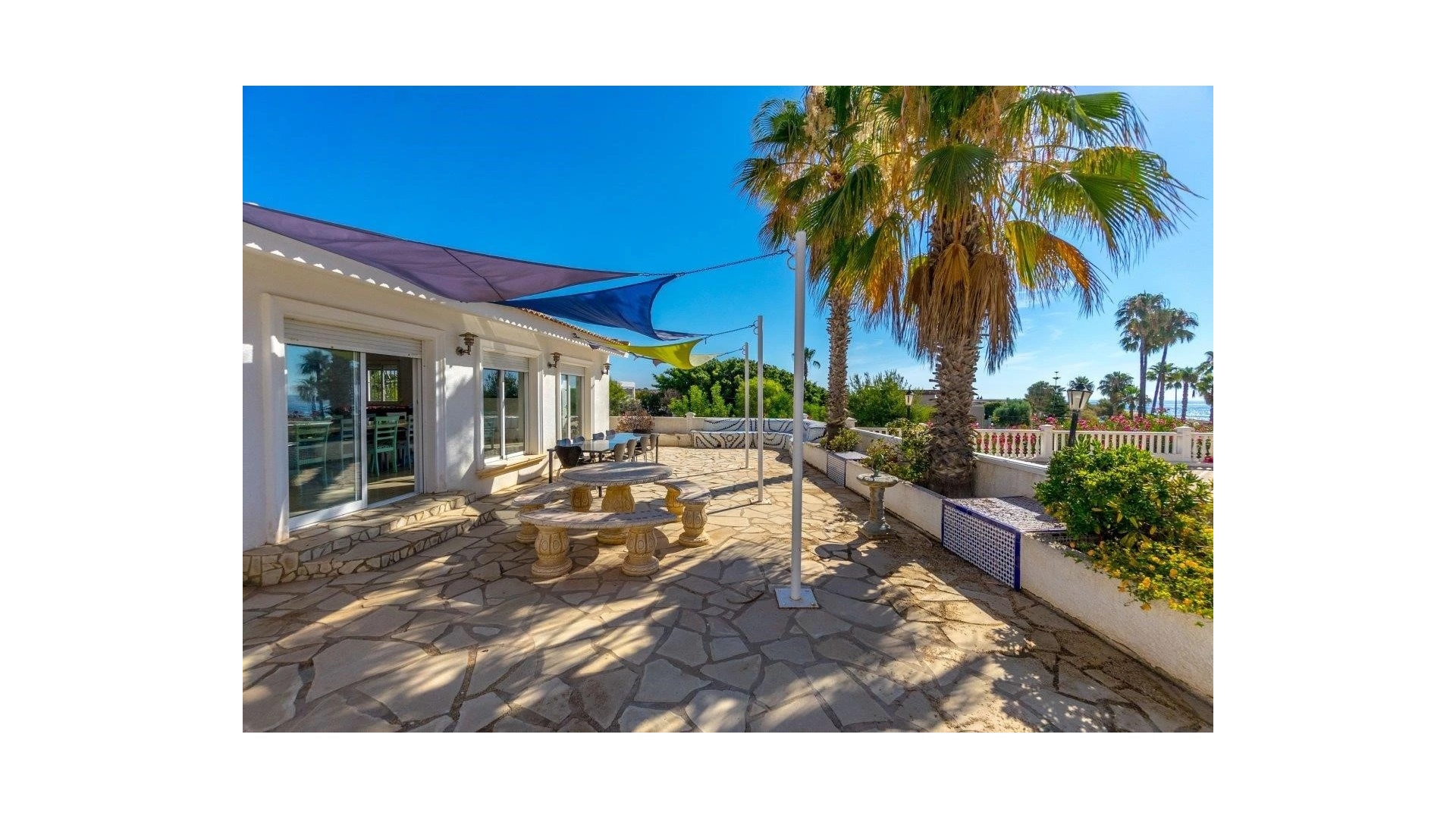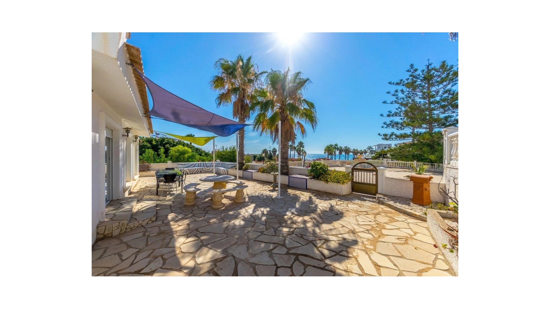 Eine nach Süden ausgerichtete, freistehende Villa mit 3 Schlafzimmern, 3 Bädern und privatem Swimmingpool, nur 5 m vom Strand in Playa Flamenca, Süd-Costa Blanca, entfernt.