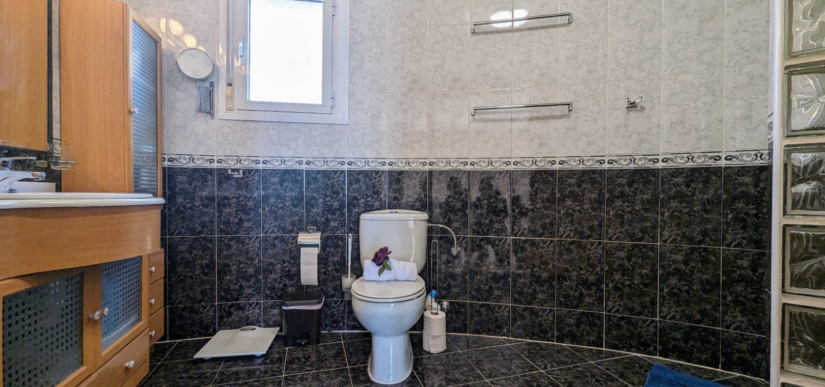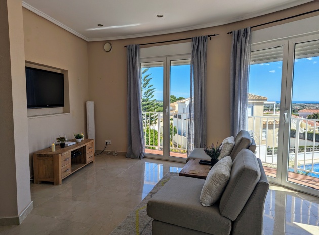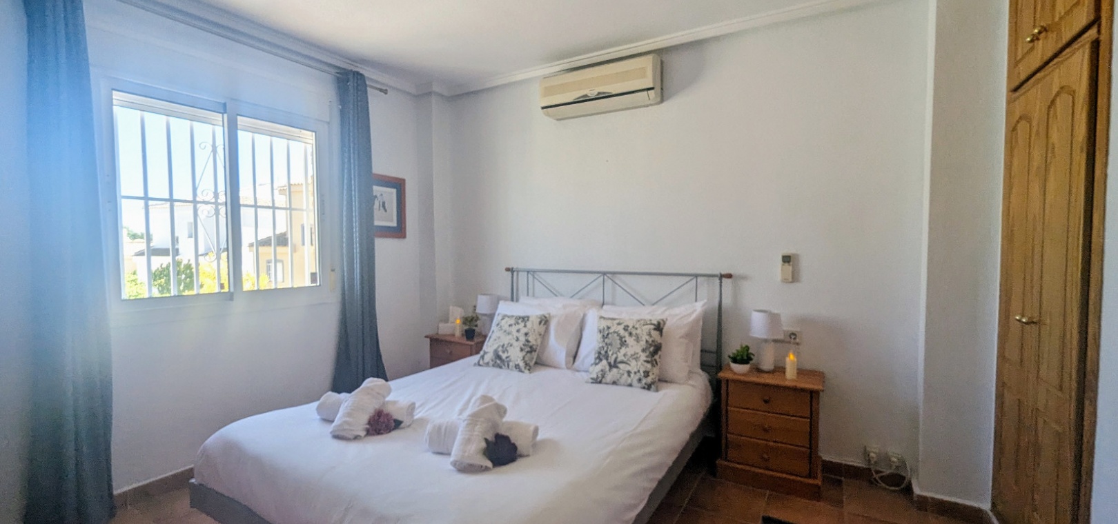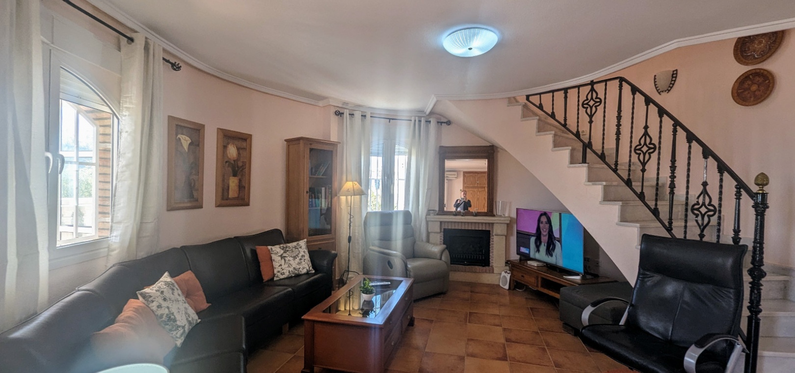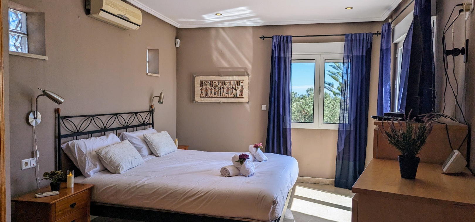 Im Obergeschoss befindet sich das Hauptschlafzimmer mit eigenem Bad, einem zweiten Wohnbereich und einem kleinen Balkon mit Blick auf den Pool.
