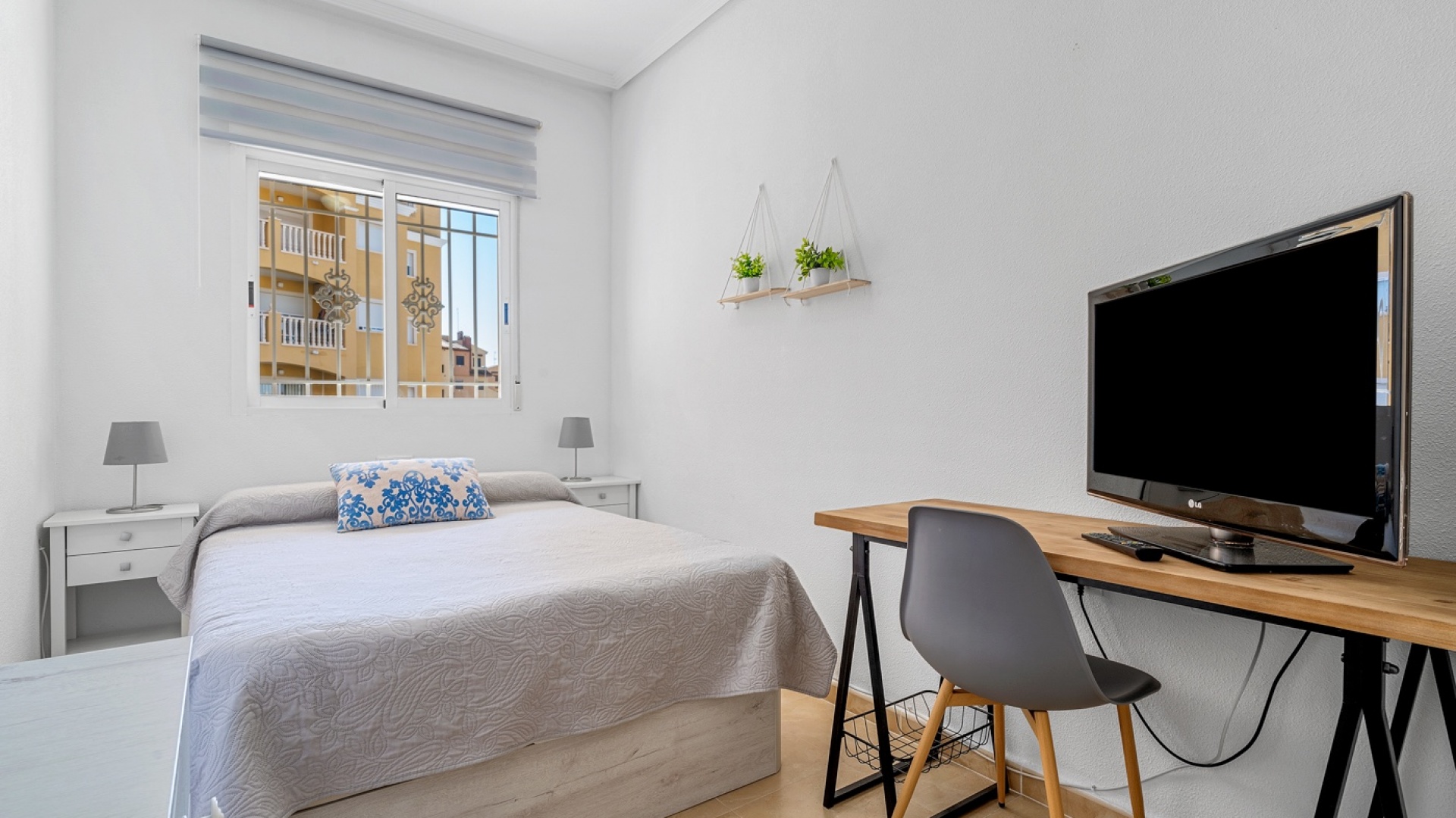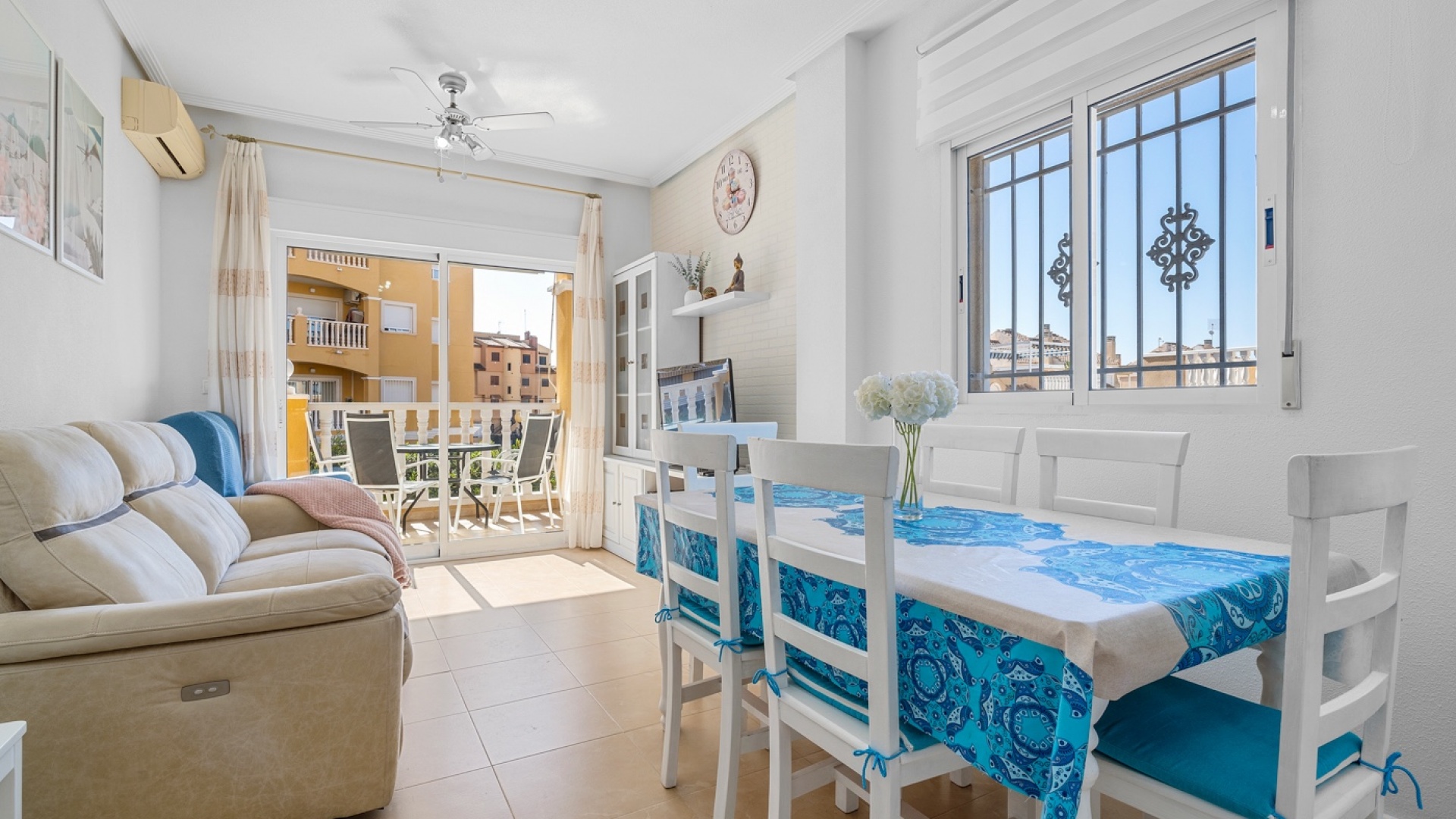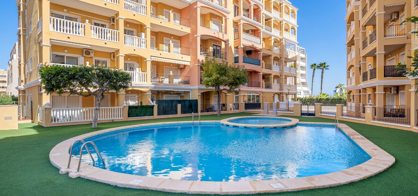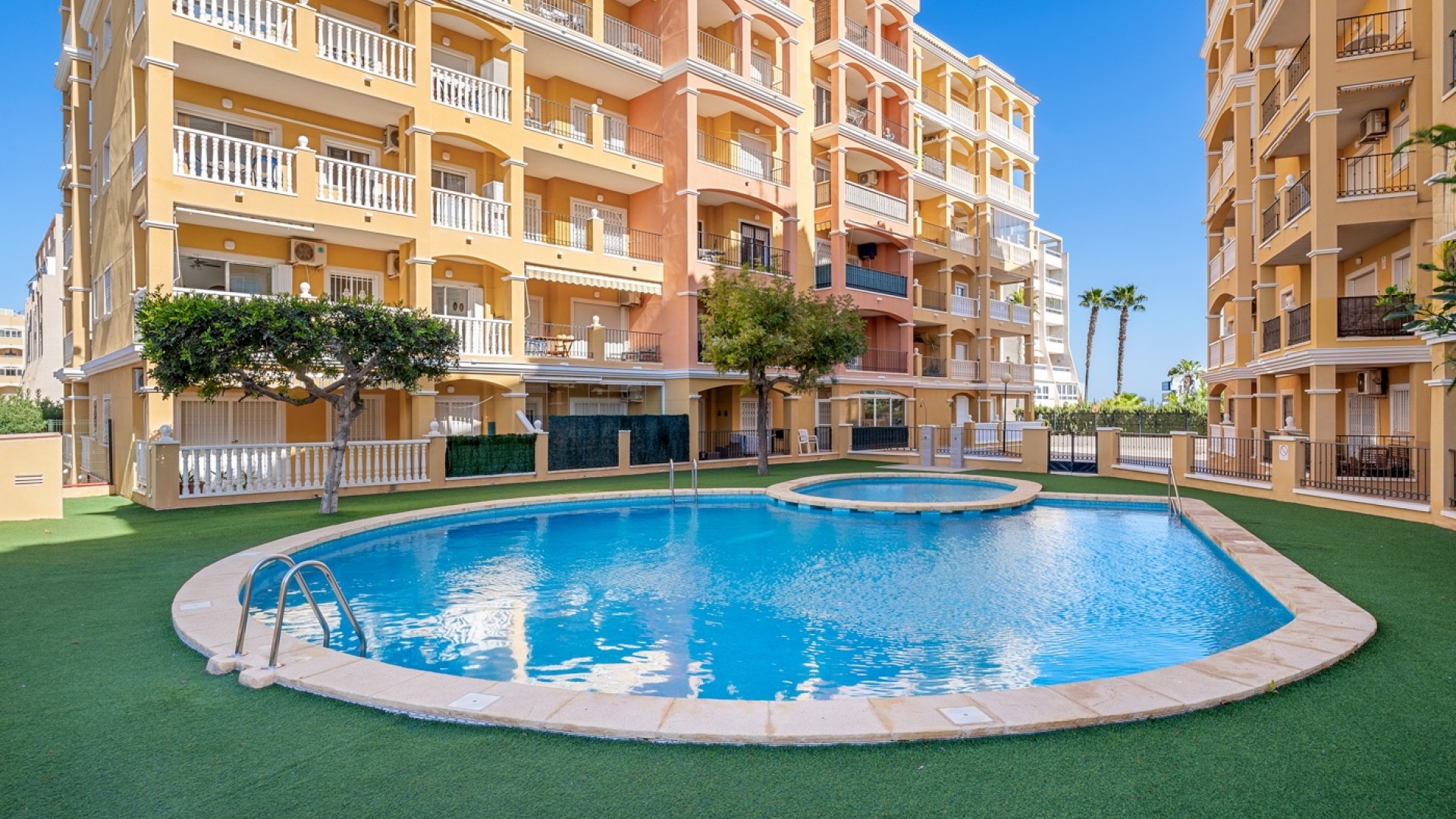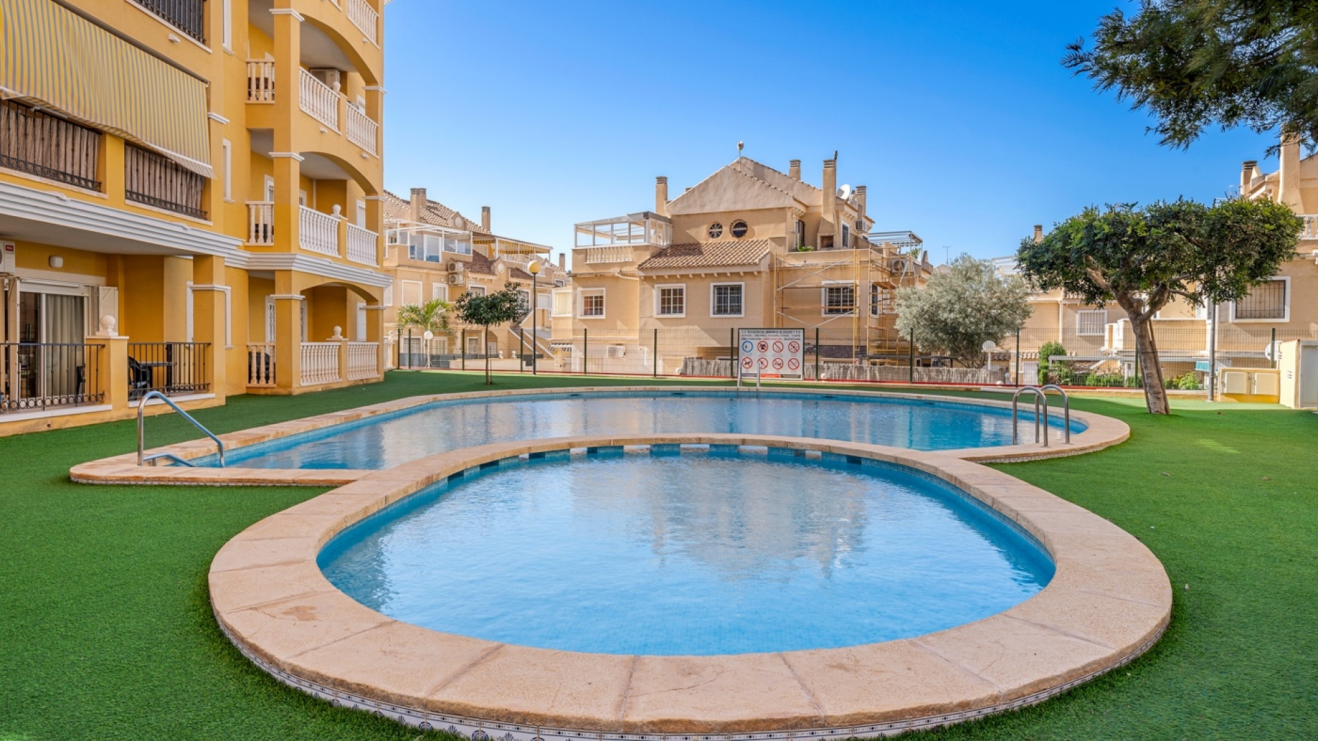 Dieses helle und einladende Apartment im ersten Stock mit 3 Schlafzimmern und 2 Bädern liegt nur 500 Meter vom goldenen Sandstrand von La Mata entfernt und ist eine fantastische Gelegenheit für alle, die ein Zuhause in erstklassiger Küstenlage suchen. Egal, ob Sie einen dauerhaften Wohnsitz, ein Feriendomizil oder eine kluge Investition suchen, diese Immobilie bietet die perfekte Balance aus Komfort, Bequemlichkeit und mediterranem Charme. Das Apartment verfügt über einen geräumigen und gut beleuchteten Wohnbereich, der sich ideal zum Entspannen oder Unterhalten eignet. Die Küche ist voll ausgestattet und funktional und bietet viel Stauraum und Arbeitsfläche. Jedes der drei Schlafzimmer ist großzügig bemessen und bietet eingebauten Stauraum und eine friedliche Atmosphäre, während die beiden Badezimmer für Familien oder Gäste praktisch sind. Dieses Haus ist Teil einer gepflegten Anlage mit einem schönen Swimmingpool, in dem Sie sich in den warmen Sommermonaten abkühlen können. Darüber hinaus ist ein privater Parkplatz inbegriffen, was den Komfort dieser fantastischen Residenz noch erhöht. Mit zahlreichen Annehmlichkeiten, die nur einen kurzen Spaziergang entfernt sind – darunter Supermärkte, Restaurants, Cafés und öffentliche Verkehrsmittel – haben Sie alles, was Sie brauchen, in Reichweite. Die pulsierende Stadt Torrevieja ist nur wenige Autominuten entfernt und bietet noch mehr Einkaufs-, Speise- und Unterhaltungsmöglichkeiten. Verpassen Sie nicht Ihre Chance, ein atemberaubendes Apartment in einer der begehrtesten Gegenden der Costa Blanca zu besitzen. Egal, ob Sie einen Zufluchtsort an der Küste oder eine clevere Investition suchen, dieses Haus ist ein Muss! IBI 162 € PRO JAHR GEMEINSCHAFTSGEBÜHR 450 € PRO JAHR