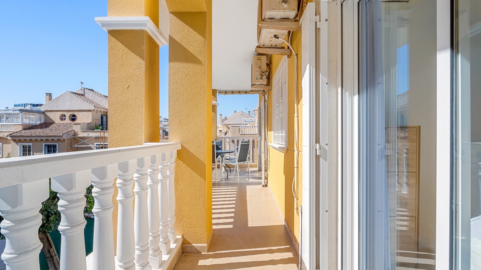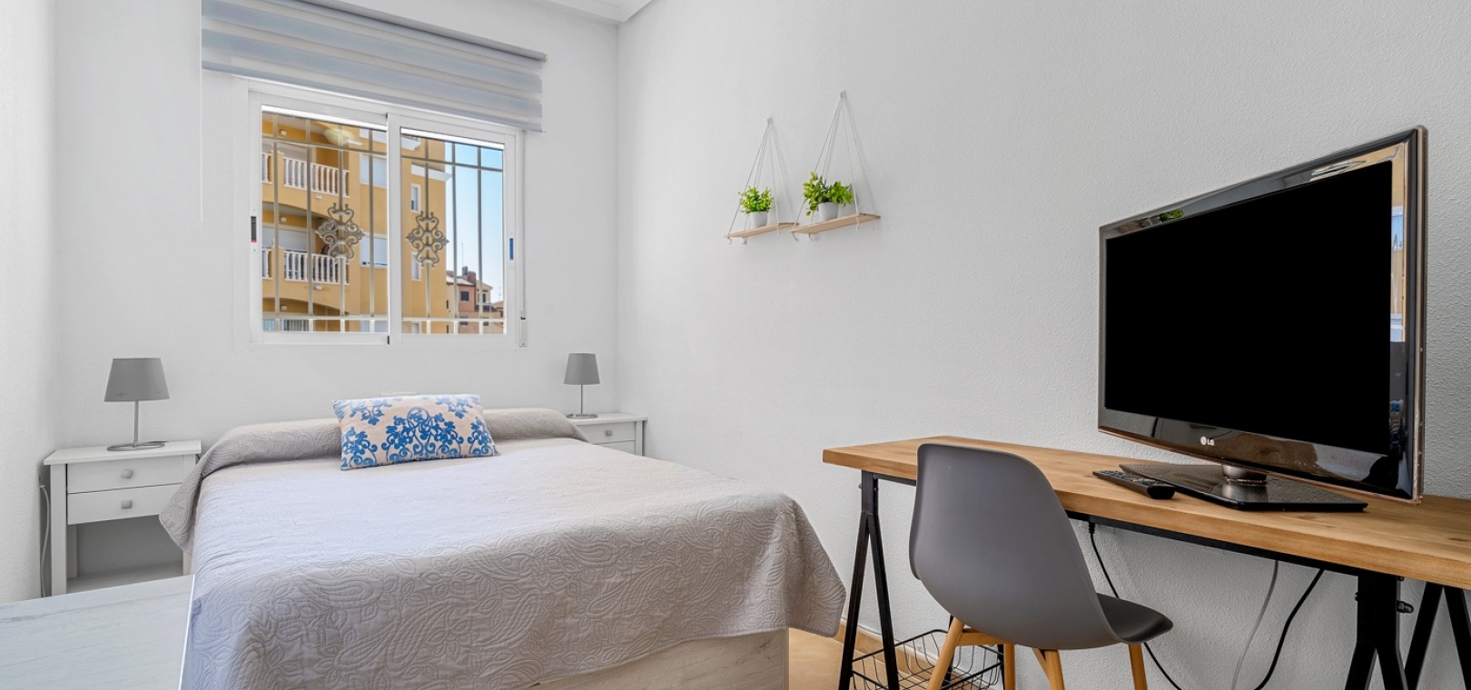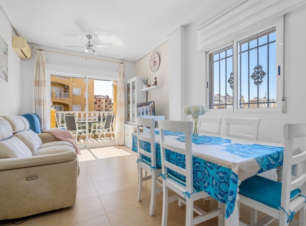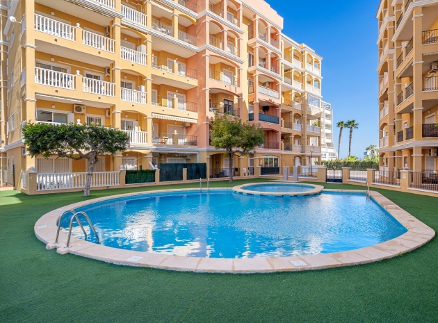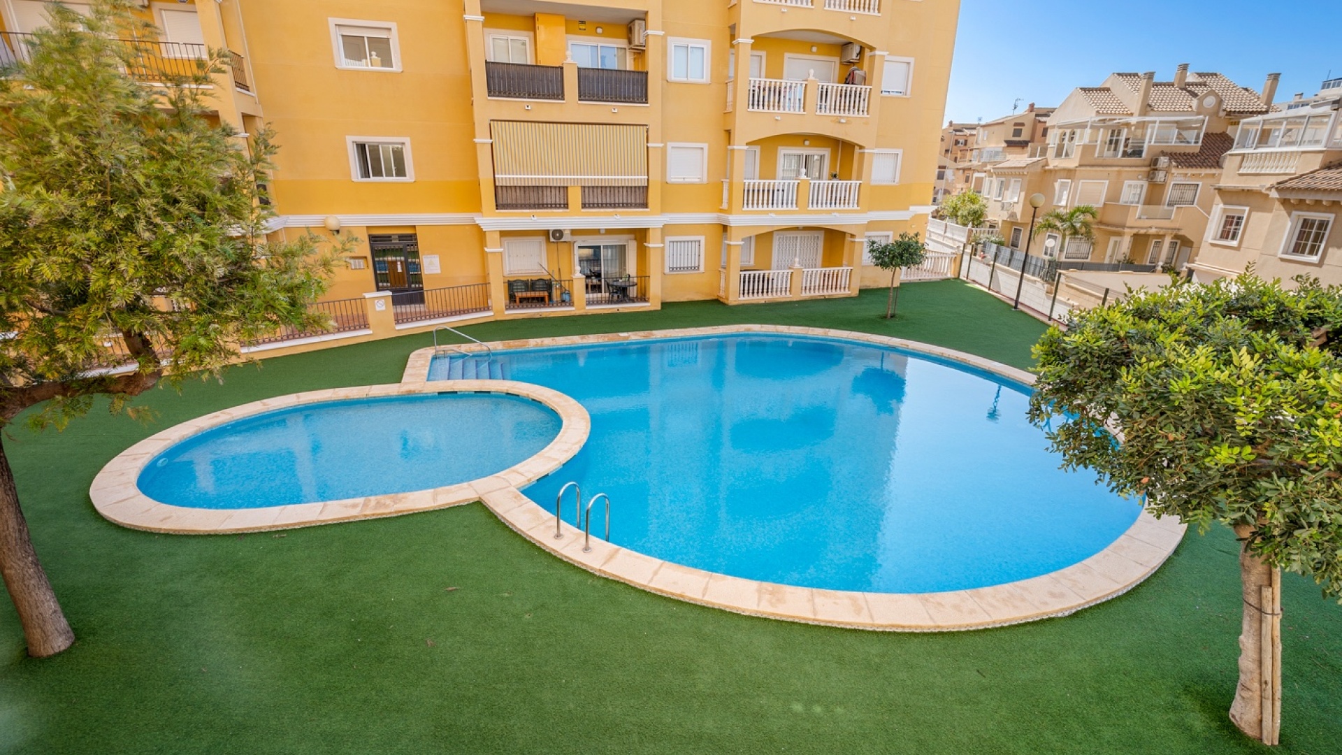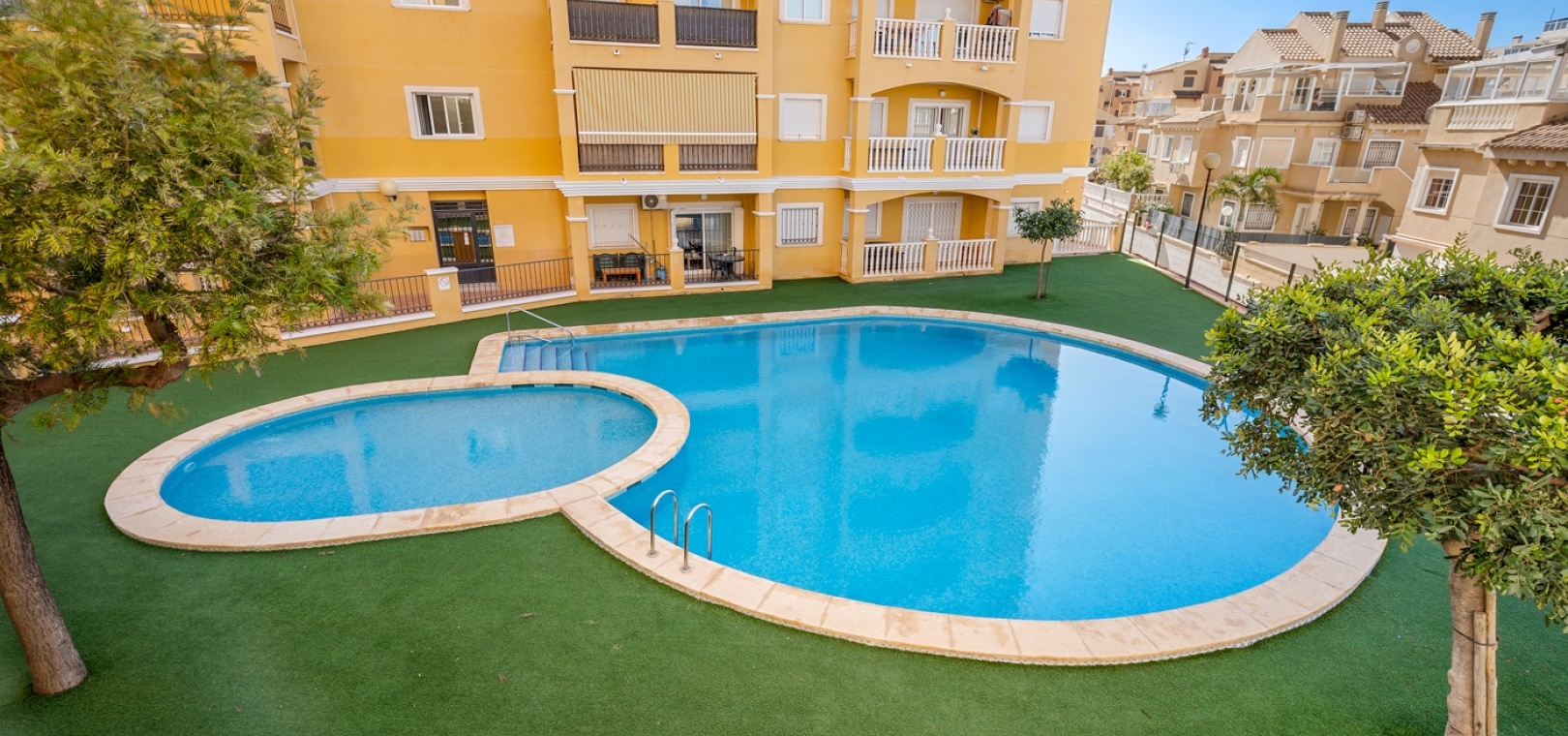 Dieses helle und einladende Apartment im ersten Stock mit 3 Schlafzimmern und 2 Bädern liegt nur 500 Meter vom goldenen Sandstrand von La Mata entfernt und ist eine fantastische Gelegenheit für alle, die ein Zuhause in erstklassiger Küstenlage suchen. Egal, ob Sie einen dauerhaften Wohnsitz, ein Feriendomizil oder eine kluge Investition suchen, diese Immobilie bietet die perfekte Balance aus Komfort, Bequemlichkeit und mediterranem Charme. Das Apartment verfügt über einen geräumigen und gut beleuchteten Wohnbereich, der sich ideal zum Entspannen oder Unterhalten eignet. Die Küche ist voll ausgestattet und funktional und bietet viel Stauraum und Arbeitsfläche. Jedes der drei Schlafzimmer ist großzügig bemessen und bietet eingebauten Stauraum und eine friedliche Atmosphäre, während die beiden Badezimmer für Familien oder Gäste praktisch sind. Dieses Haus ist Teil einer gepflegten Anlage mit einem schönen Swimmingpool, in dem Sie sich in den warmen Sommermonaten abkühlen können. Darüber hinaus ist ein privater Parkplatz inbegriffen, was den Komfort dieser fantastischen Residenz noch erhöht. Mit zahlreichen Annehmlichkeiten, die nur einen kurzen Spaziergang entfernt sind – darunter Supermärkte, Restaurants, Cafés und öffentliche Verkehrsmittel – haben Sie alles, was Sie brauchen, in Reichweite. Die pulsierende Stadt Torrevieja ist nur wenige Autominuten entfernt und bietet noch mehr Einkaufs-, Speise- und Unterhaltungsmöglichkeiten. Verpassen Sie nicht Ihre Chance, ein atemberaubendes Apartment in einer der begehrtesten Gegenden der Costa Blanca zu besitzen. Egal, ob Sie einen Zufluchtsort an der Küste oder eine clevere Investition suchen, dieses Haus ist ein Muss! IBI 162 € PRO JAHR GEMEINSCHAFTSGEBÜHR 450 € PRO JAHR