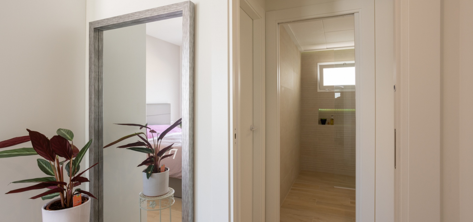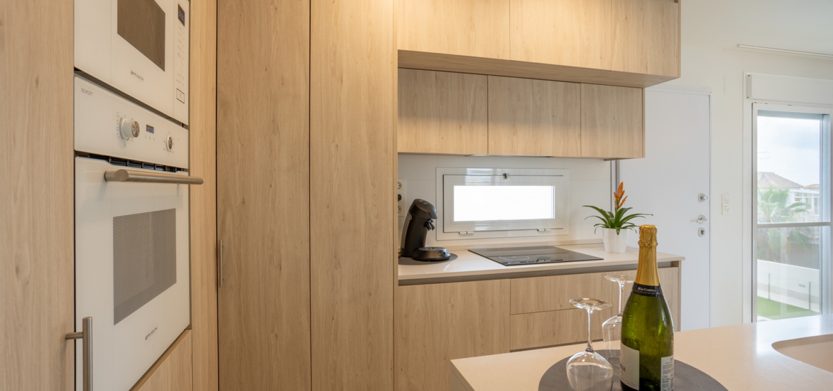 Das Anwesen besteht aus einem geräumigen Wohn-/Essbereich, einer offenen, voll ausgestatteten Küche, zwei Schlafzimmern mit Einbauschränken, zwei Bädern, Gegensprechanlage, Klimaanlage (warm/kalt), einer Terrasse und einer privaten Dachterrasse/Solarium mit fantastischem Meerblick sowie einer Sommerküche und Lounge. Außerdem sind ein zugewiesener Tiefgaragenstellplatz und ein Abstellraum im Preis inbegriffen.