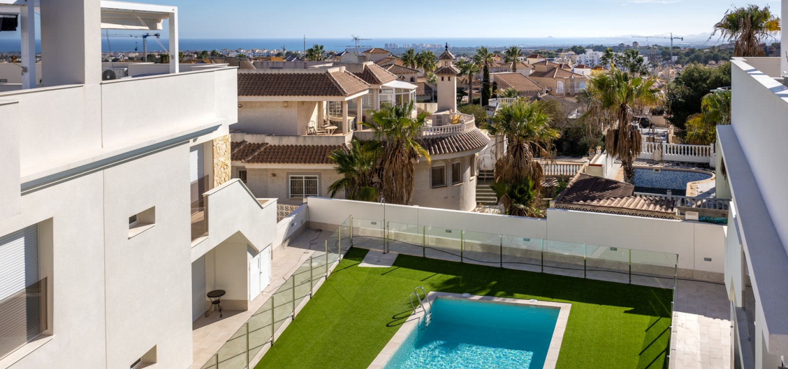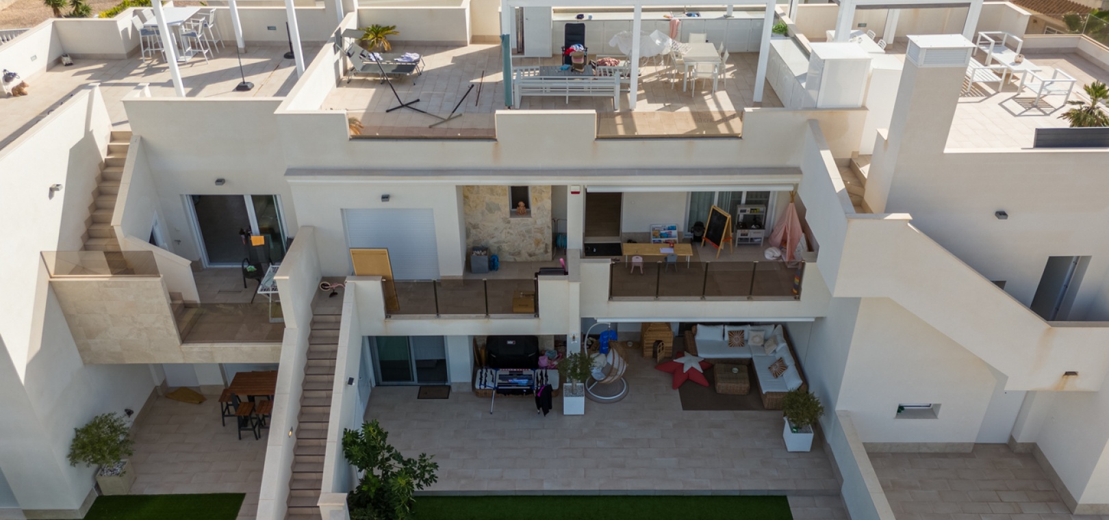 Es gibt einen schönen Gemeinschaftsgarten mit Swimmingpool, Kinderbecken und Duschen. Alle weißen Sandstrände von Orihuela Costa und das Einkaufszentrum La Zenia Boulevard sind weniger als 10 Minuten entfernt, 5 Minuten zu 4 internationalen Golfplätzen (Villamartin, Las Ramblas, Campoamor und Las Colinas), in der Nähe des Einkaufszentrums La Fuente und der Villamartin Plaza.