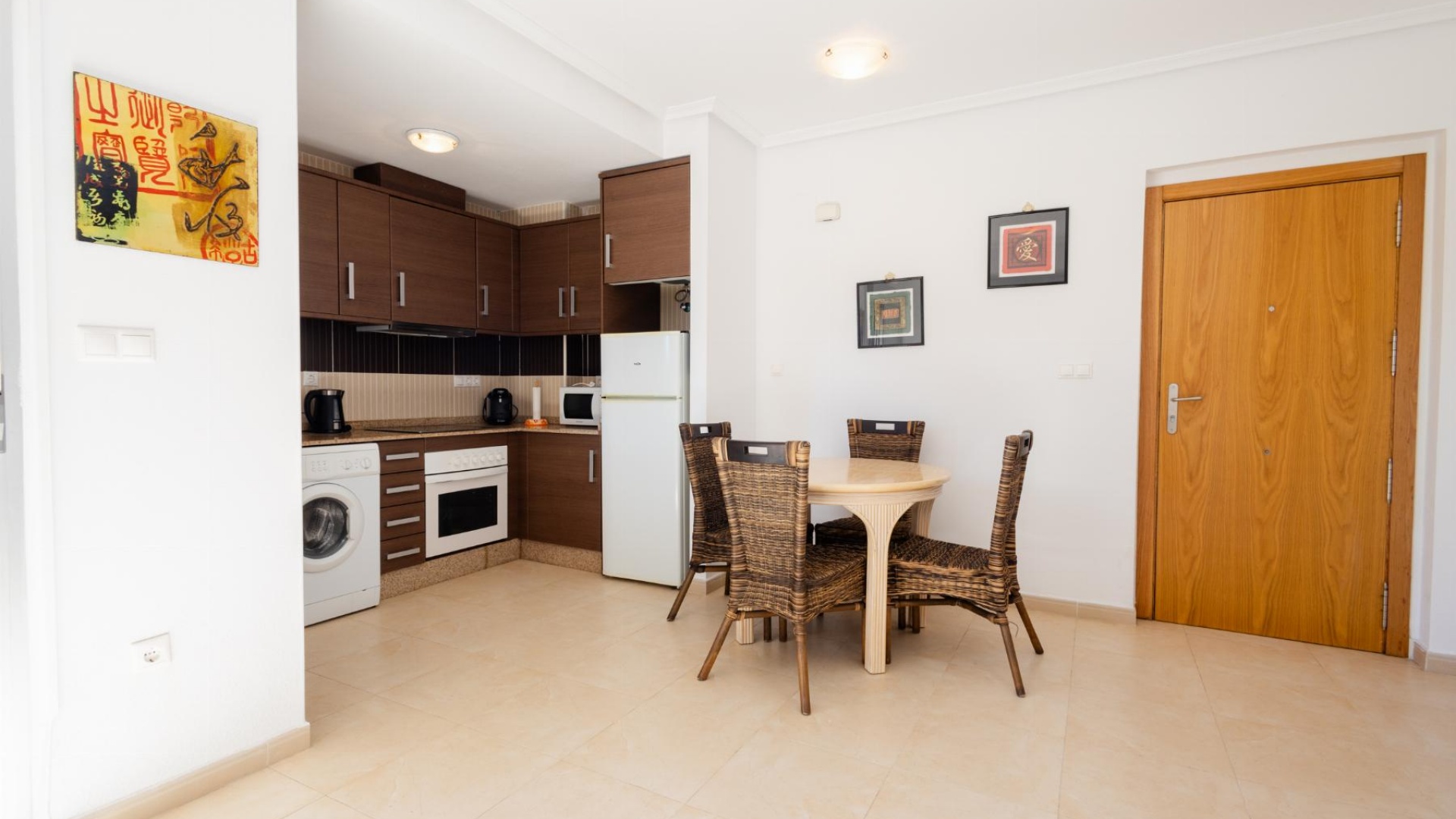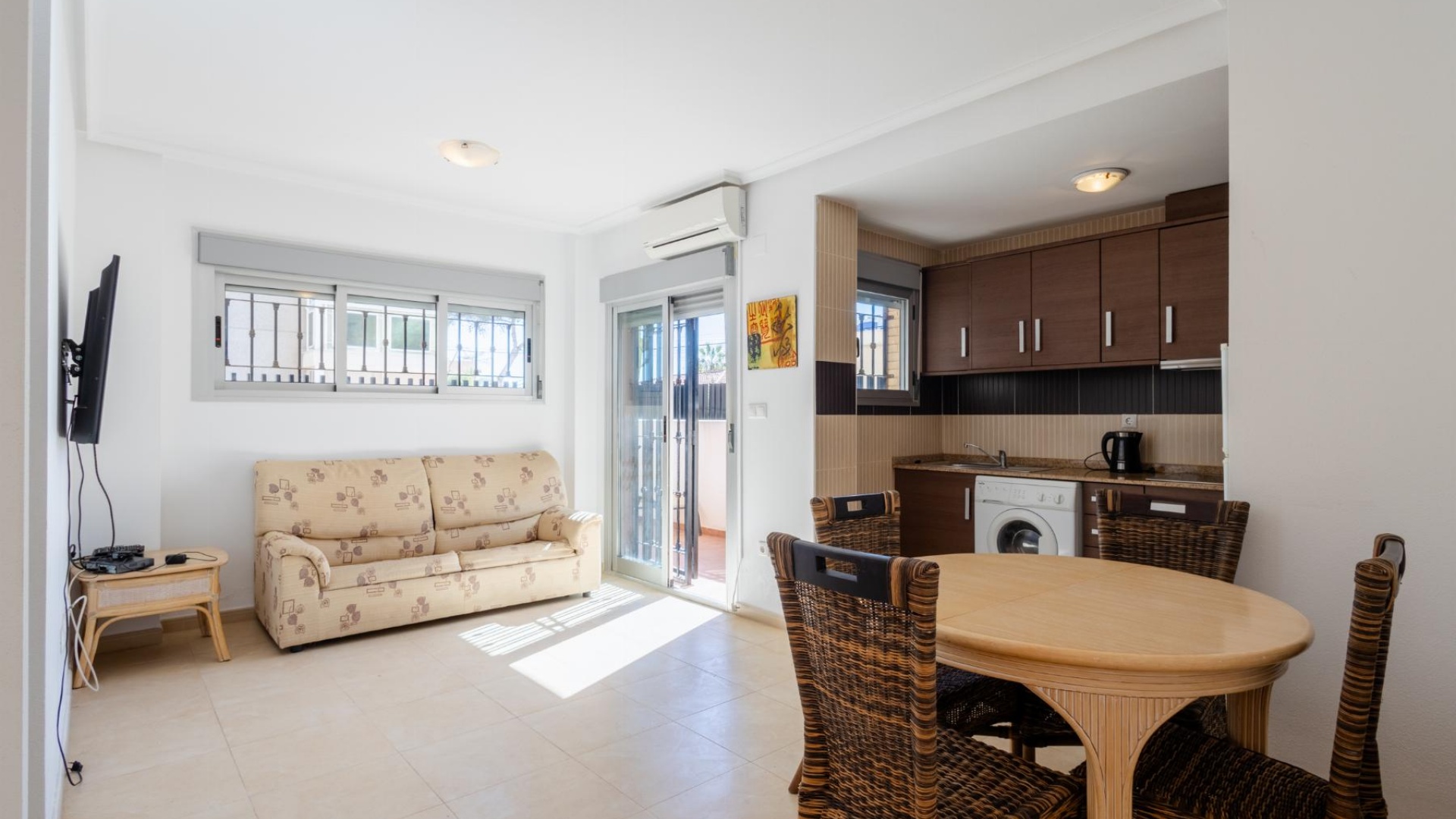 Entdecken Sie diese gemütliche Wohnung in der exklusiven Gegend von Punta Prima, Torrevieja, nur 250 Meter vom Strand entfernt. Mit einer bebauten Fläche von ca. 64 m² ist diese Immobilie die perfekte Wahl für alle, die Lebensqualität am Mittelmeer suchen. AUSSTATTUNG DER WOHNUNG 2 geräumige und helle Schlafzimmer 1 komplettes Badezimmer 20 m² große Terrasse, ideal zum Entspannen oder für Abendessen im Freien Geräumiges und komfortables Wohn-Esszimmer Offene und funktionale Küche Gartenbereiche und Gemeinschaftspool, um das ganze Jahr über die Sonne zu genießen Wird komplett möbliert und mit Geräten verkauft Gebaut 2007 und in ausgezeichnetem Zustand PRIVILEGIERTE LAGE Punta Prima ist eine der exklusivsten Gegenden von Torrevieja und Orihuela Costa, bekannt für ihre Ruhe, Sicherheit und Nähe zu allen wichtigen Dienstleistungen Geschäfte, Supermärkte, Apotheken und Restaurants nur wenige Minuten entfernt. Einkaufszentren wie Zenia Boulevard nur 10 Autominuten entfernt. Nur 40 Minuten vom Flughafen Alicante entfernt. Ausgezeichnete Straßen- und öffentliche Verkehrsanbindung. STRÄNDE UND TOURISMUSDie Strände von Punta Prima sind berühmt für ihren goldenen Sand und ihr kristallklares Wasser. Darüber hinaus befinden Sie sich in der Nähe anderer spektakulärer Strände wie Playa de La Zenia (5 Min.), Playa Flamenca (4 Min.) und Cabo Roig (10 Min.).Torrevieja bietet Ihnen endlose Touristenattraktionen: den Naturpark der Lagunas de La Mata und Torrevieja, den Paseo Marítimo, den Yachthafen, den berühmten Markt und das pulsierende Nachtleben. Darüber hinaus können Sie dank des mediterranen Klimas 320 Sonnentage im Jahr genießen. EINE EINZIGARTIGE GELEGENHEIT ZUM LEBEN ODER INVESTIERENOb als Dauerwohnsitz, Zweitwohnsitz oder Investition, diese Wohnung hat großes Potenzial. Verpassen Sie nicht die Gelegenheit, in einem Paradies am Meer zu leben. Kontaktieren Sie uns jetzt, um einen Besuch zu vereinbaren und Ihr neues Zuhause in Punta Prima zu entdecken.IBI 150 €