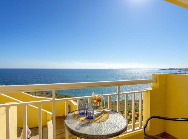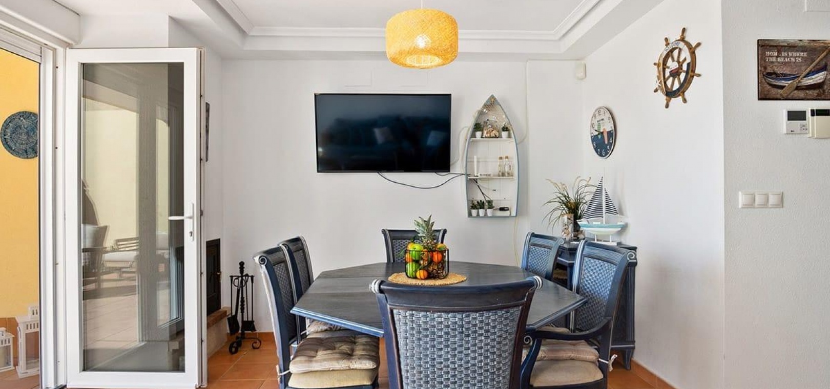 Fantastische Maisonette-Wohnung in erster Linie, gelegen in einer der besten Gegenden von Orihuela Costa, Dehesa de Campoamor. Dieses wunderbare Haus mit spektakulärem Meerblick hat 130 m² und besteht aus vier Schlafzimmern und drei Bädern. Im Erdgeschoss finden wir ein großes Wohnzimmer, eine separate Küche mit Hauswirtschaftsraum, einen Hinterhof von ca. 20 m² und ein Schlafzimmer. Weitere drei Schlafzimmer und zwei Bäder befinden sich im ersten Stock. Hauptschlafzimmer mit Zugang zum Balkon mit Blick auf das Meer und den Strand. Klimaanlage installiert. Wird voll ausgestattet und bezugsfertig verkauft. Private Garage mit Zugang zum Haus. Alle Dienstleistungen wie Supermarkt, Ärztezentrum, Apotheke, Geschäfte, Bus- und Taxistand, Bars und Restaurants sind zu Fuß erreichbar. Eine unschlagbare Lage, neben den Stränden und in der Nähe der besten Golfplätze.