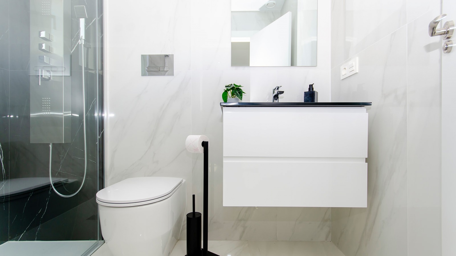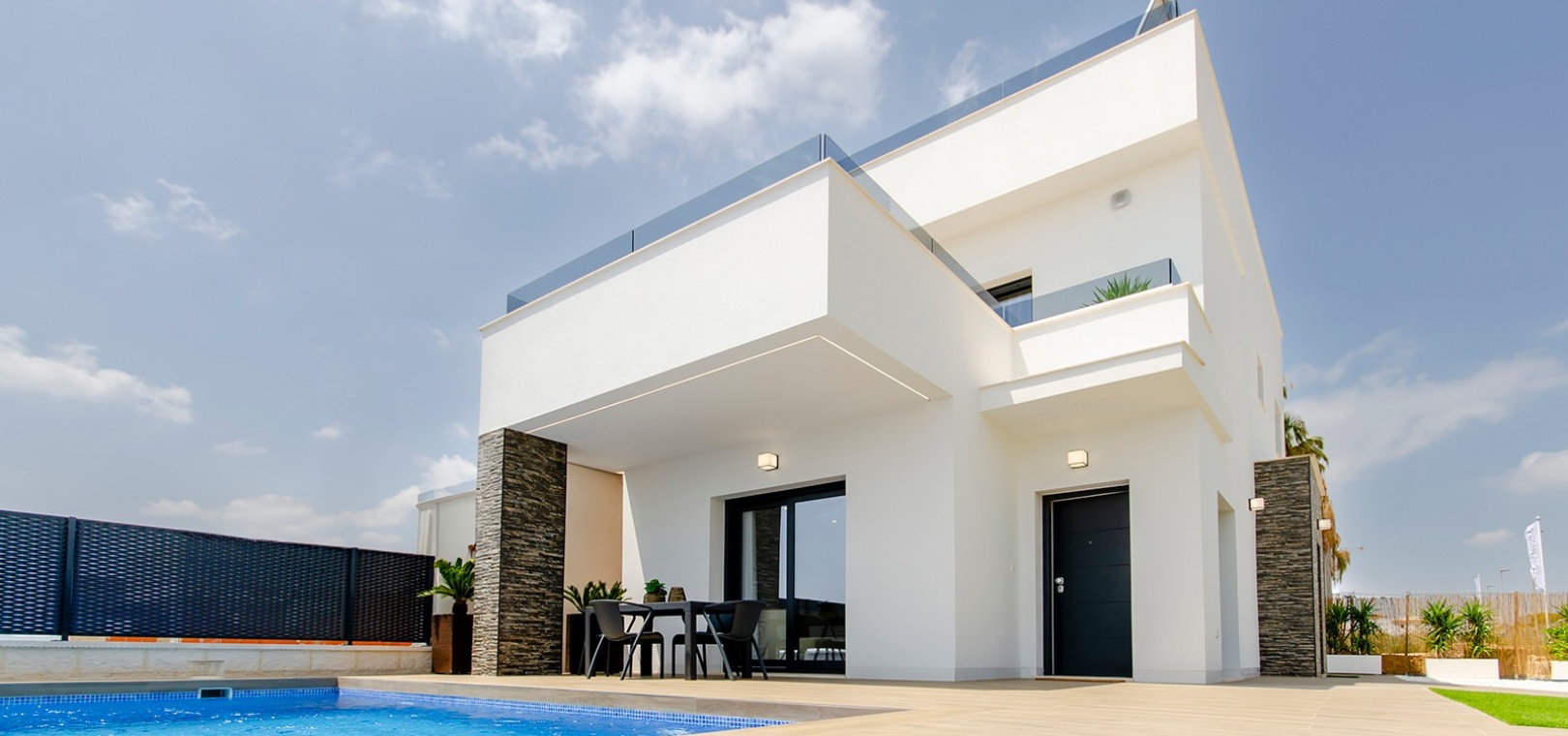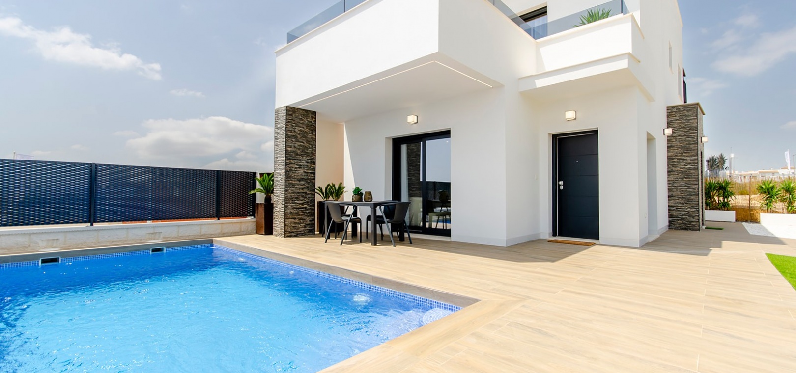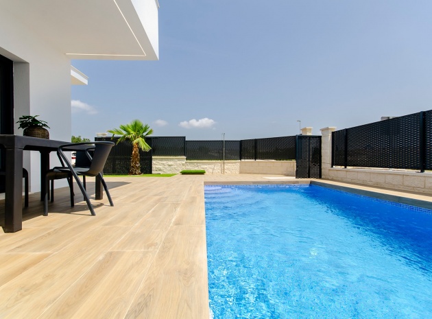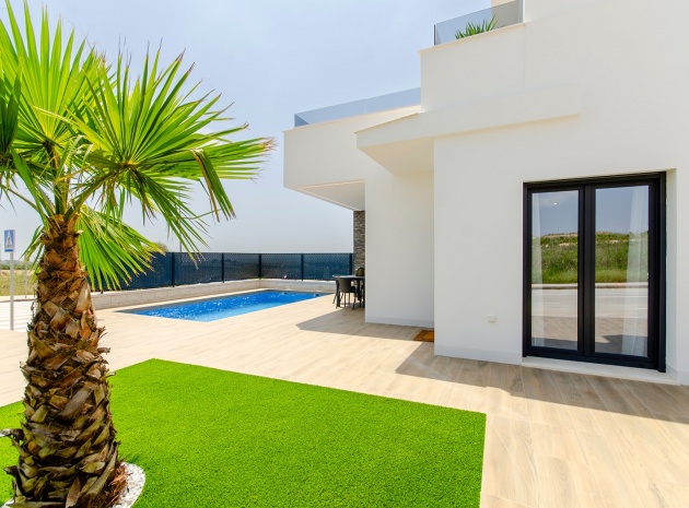 Die mit A bewertete freistehende Villa in Casas Blancas ist der Inbegriff luxuriösen Wohnens und verfügt über einen privaten Pool, eine moderne Küche mit Einbaugeräten, Fußbodenheizung in den Bädern, LED-Beleuchtung, elektrische Rollläden im gesamten Gebäude, Vorinstallation einer Klimaanlage und Sonnenkollektoren für Energieeffizienz.