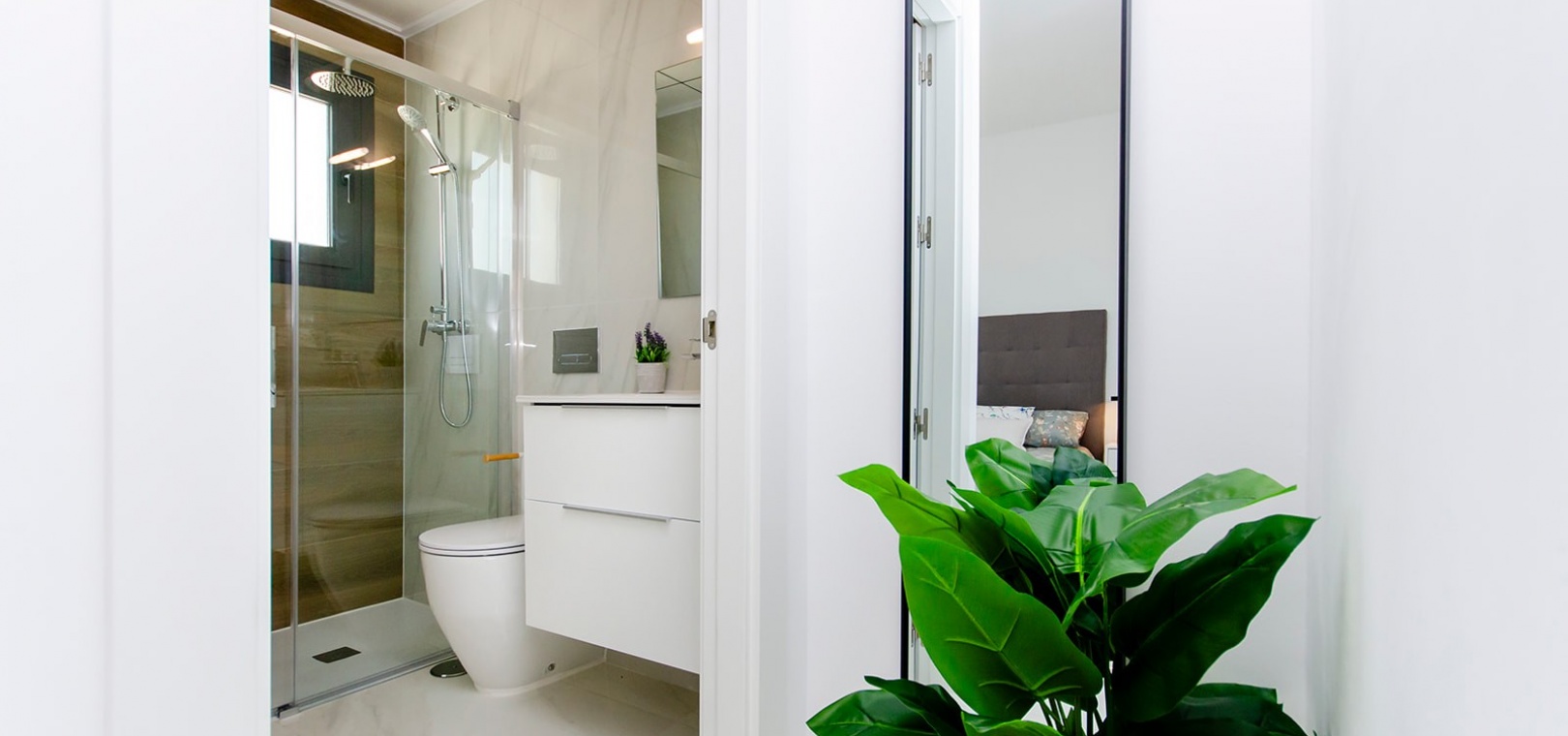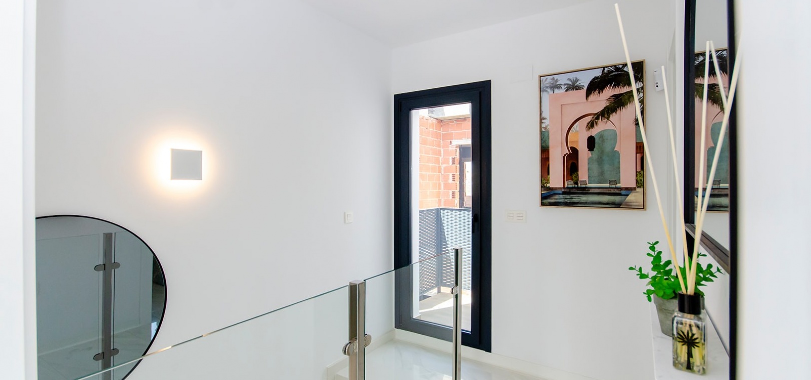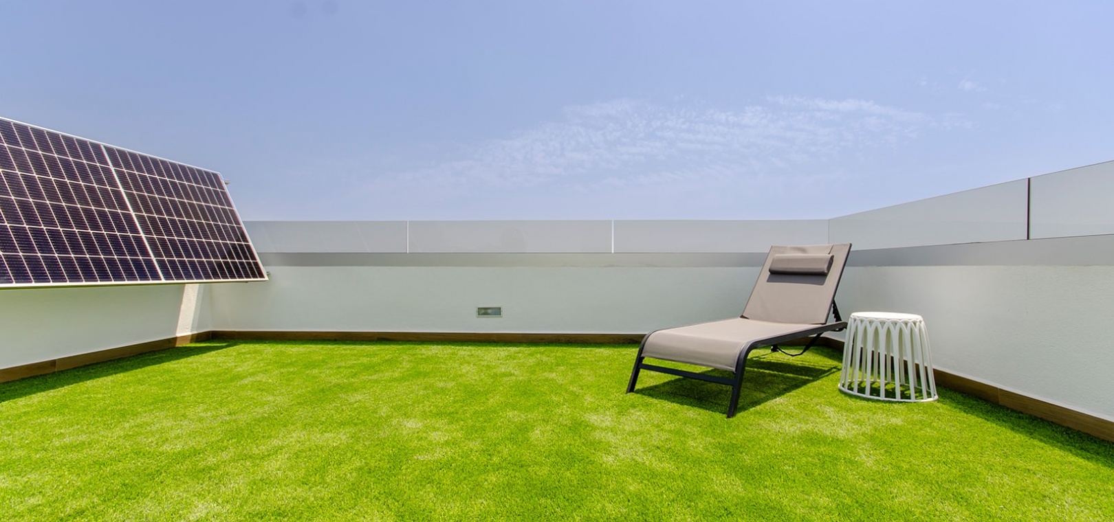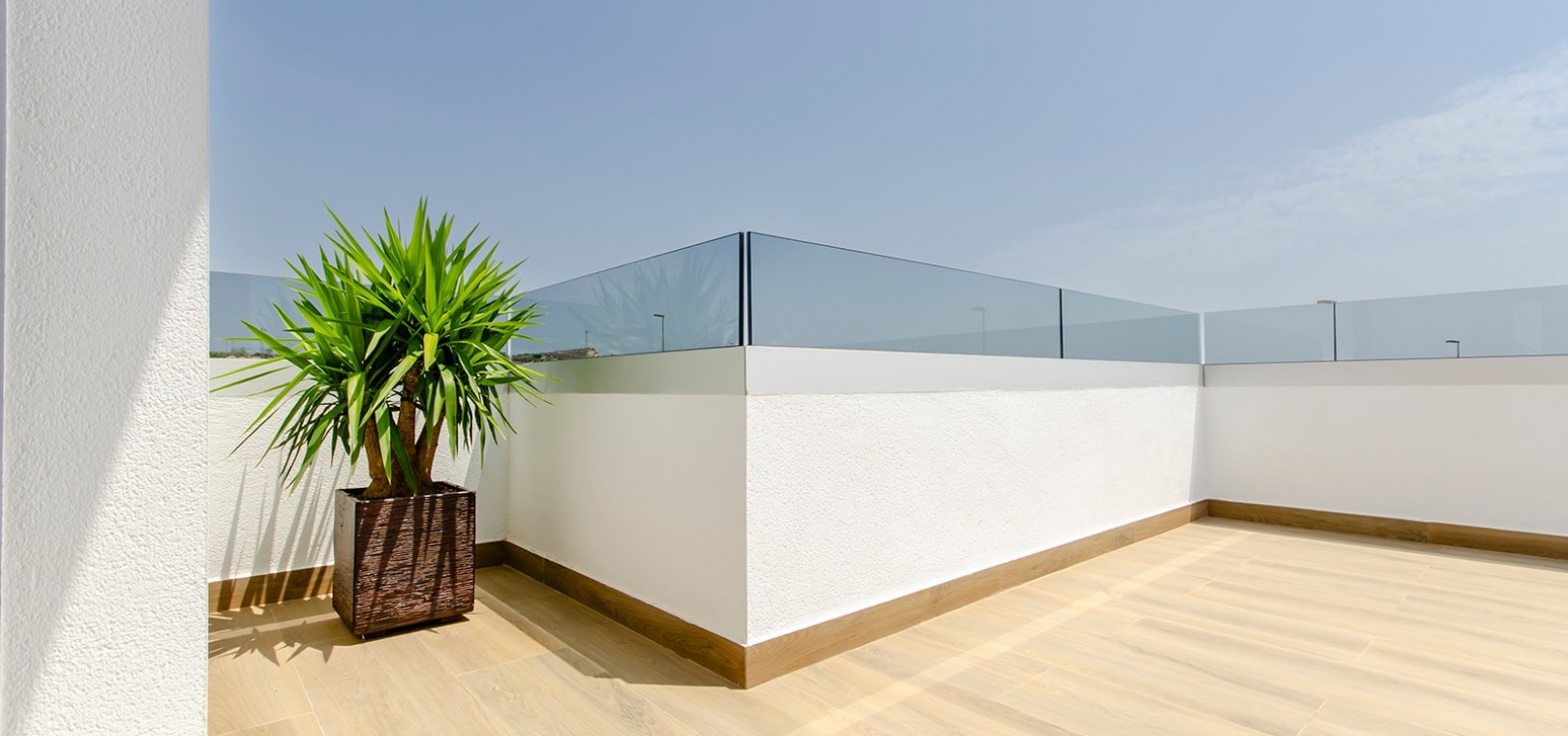 Im Obergeschoss bietet das Hauptschlafzimmer eine Oase der Entspannung mit Einbauschränken, eigenem Bad und privater Sonnenterrasse. Ein weiteres großzügiges Schlafzimmer mit Einbauschränken und eigenem Bad bietet reichlich Platz für Bewohner oder Gäste. Darüber hinaus bietet die Option, ein privates Solarium auf dem Dach zu integrieren, atemberaubende Ausblicke auf die Landschaft und ganztägigen Sonnenschein.
