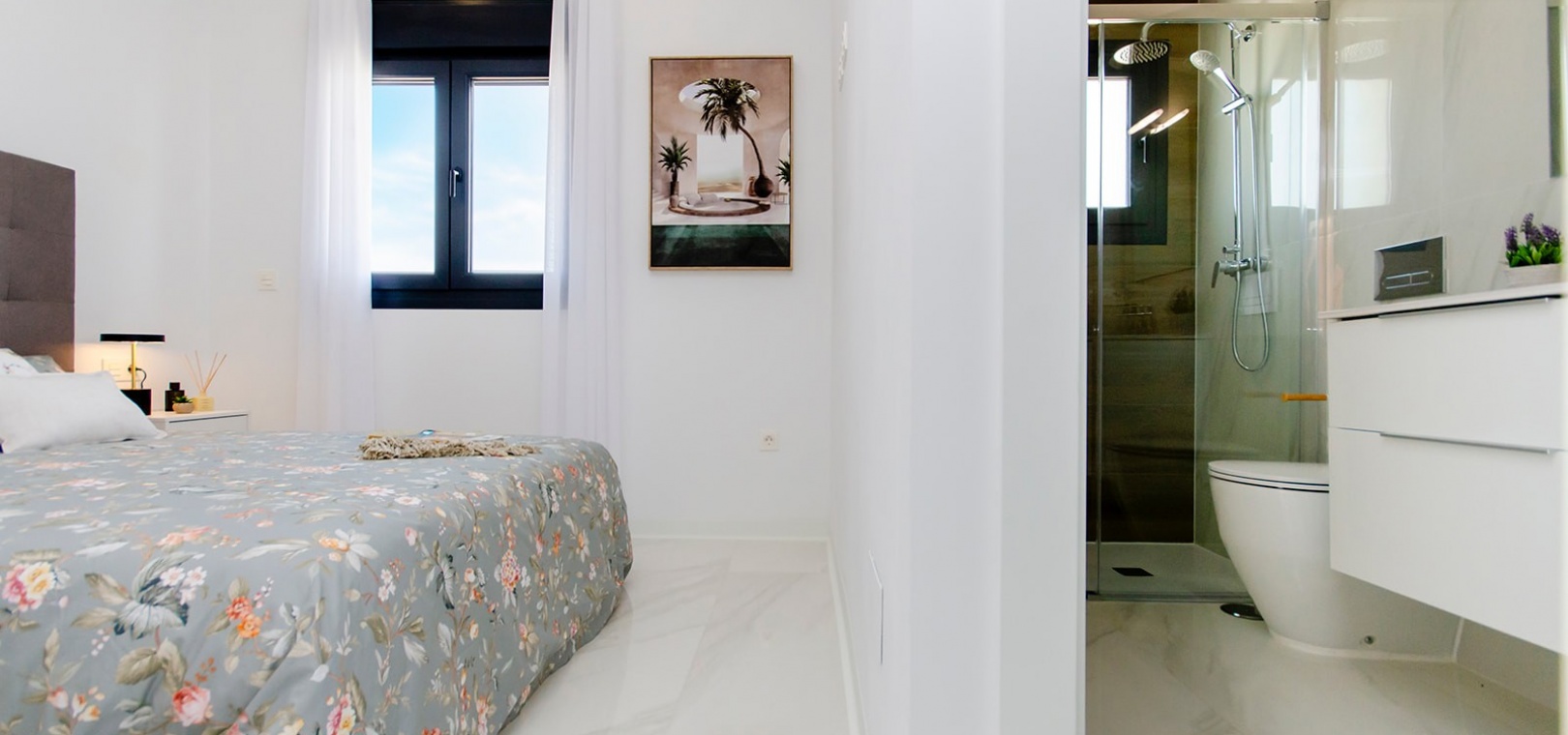 Casas Blancas im Vistabella Golf Resort bietet eine außergewöhnliche Gelegenheit für luxuriöses Wohnen inmitten der ruhigen Landschaft von Orihuela Costa. Günstig zwischen San Miguel und Los Montesinos gelegen, bietet diese Anlage eine perfekte Balance aus Ruhe und Zugang zu Annehmlichkeiten.