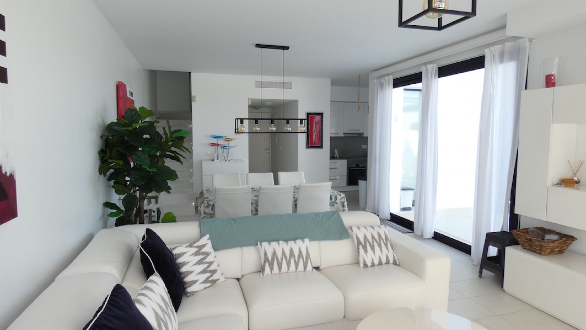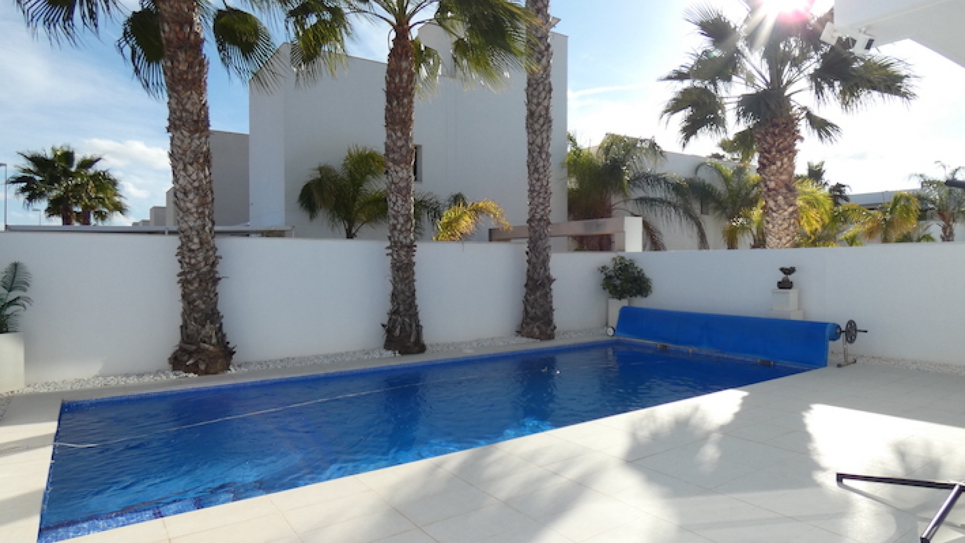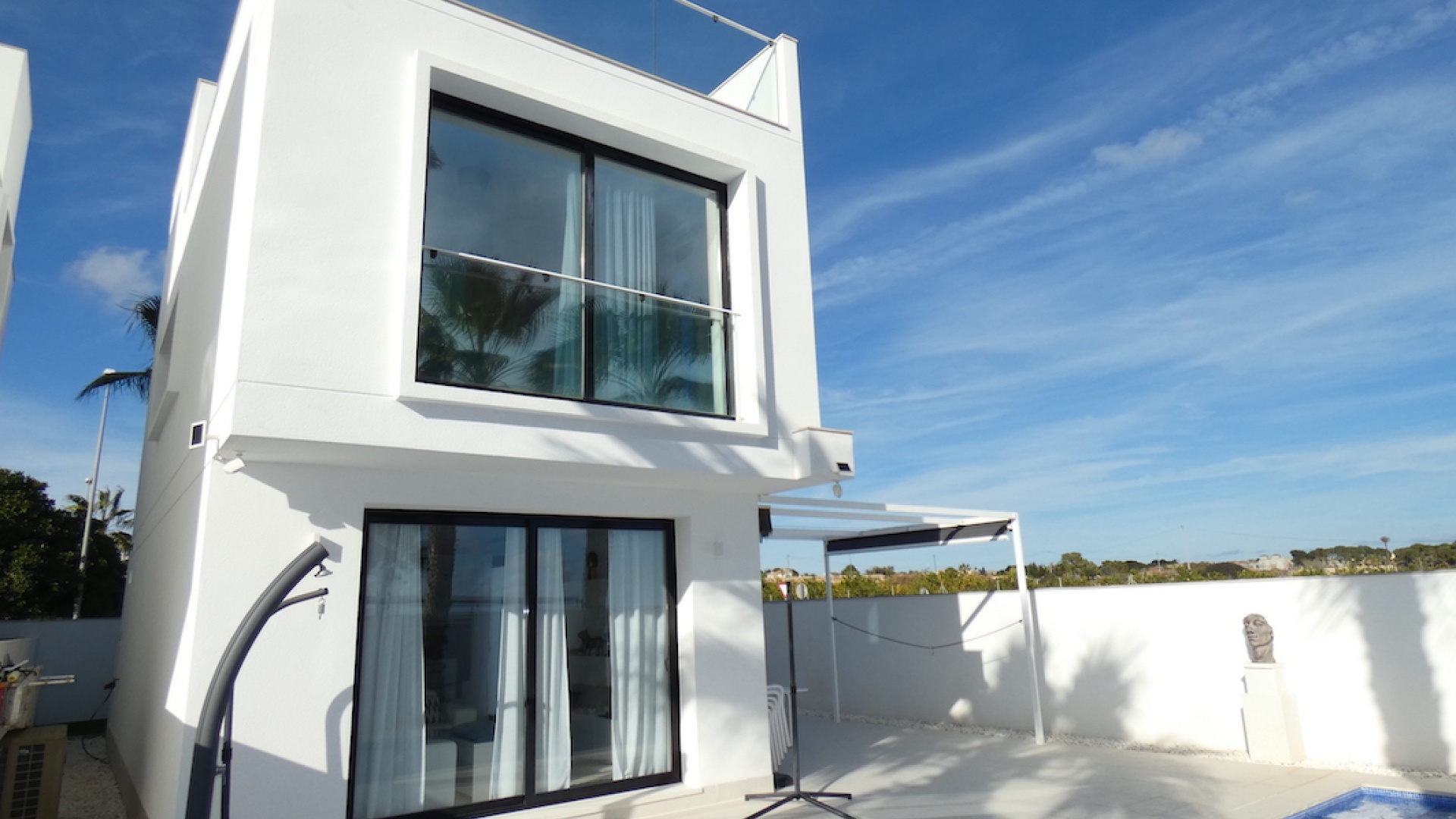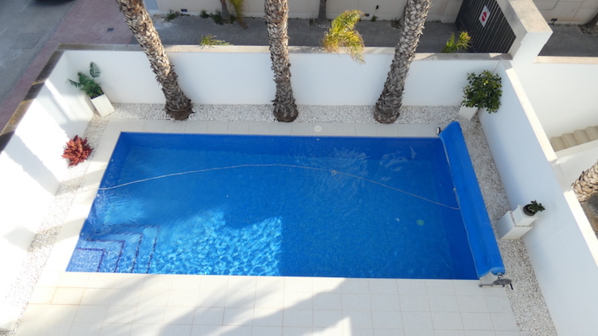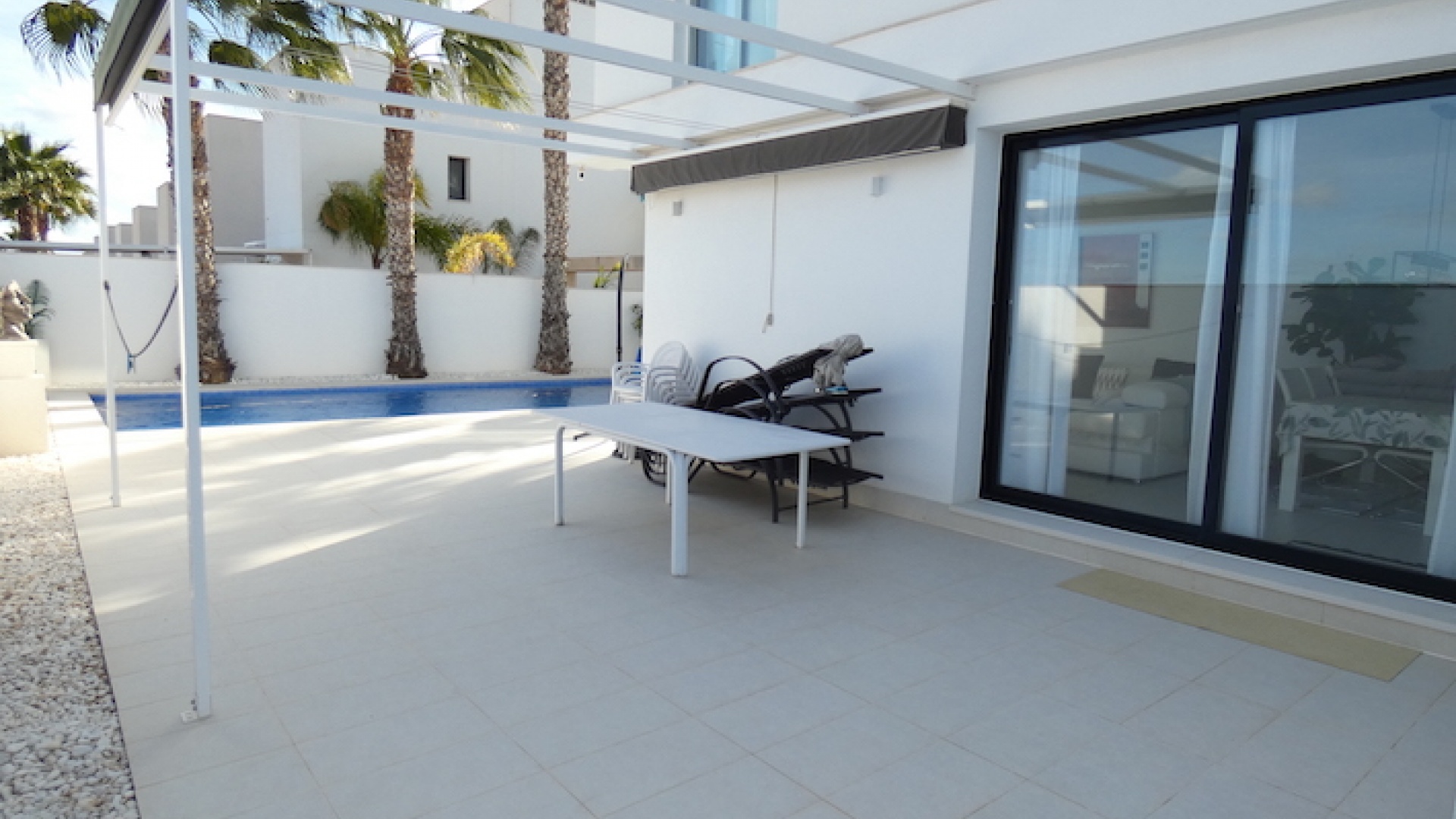 Wir freuen uns, Ihnen diese moderne freistehende Villa mit drei Schlafzimmern und privatem Swimmingpool in der beliebten Stadt Ciudad Quesada präsentieren zu können. Das Anwesen wird voll möbliert verkauft, ist in ausgezeichnetem Zustand und bietet sowohl viel Platz im Innen- als auch im Außenbereich. Der Garten ist größtenteils gefliest, einige Bereiche haben Kunstrasen und einige Pflanzen. Beim Betreten des Hauses gibt es einen Bereich für die Waschmaschine und den Wäschetrockner sowie ein Badezimmer. Das Erdgeschoss bietet außerdem einen offenen Wohn-/Essbereich und eine Küche mit kleinem Tisch und Stühlen. Der Essbereich bietet Platz für sechs Personen und das L-förmige Sofa bietet viel Platz, um auf den Swimmingpool zu blicken oder sich beim Fernsehen zu entspannen. Alle Fenster haben Netzvorhänge sowie Innenjalousien. Es ist ein Anwesen, in das viel Licht fällt. Im Obergeschoss befinden sich drei Doppelschlafzimmer und zwei weitere Badezimmer, ebenfalls wunderschön eingerichtet, und eine weitere Innentreppe führt zum Solarium auf dem Dach, von dem aus man einen wunderbaren Blick auf den See von La Mata und die umliegende Landschaft hat. Die Villa profitiert außerdem von einer Klimaanlage mit Luftkanälen im gesamten Gebäude und im Außenbereich, viel Platz rund um den Pool sowie einem weiteren Sitzbereich mit Markise an der Seite des Anwesens. Es hat den Vorteil eines beheizten Swimmingpools. Die derzeitigen Eigentümer haben auch ein Auto, das sie gerne verkaufen würden. Ein Supermarkt und eine Auswahl an Restaurants und Bars sind zu Fuß erreichbar. Ein paar Autominuten zur Haupteinkaufsstraße der Stadt und auch zum Viertel Doña Pepa von Ciudad Quesada, das zahlreiche Annehmlichkeiten wie Banken, Apotheken, Restaurants, Bars und vieles mehr bietet. Der Golfplatz ist fünf Autominuten entfernt, während die Strände von Guardamar del Segura zehn Minuten und der Flughafen Alicante 35 Autominuten entfernt sind. Dies ist ein atemberaubendes Anwesen, das von den derzeitigen Eigentümern sehr gut gepflegt wurde. Bitte kontaktieren Sie uns für weitere Informationen.