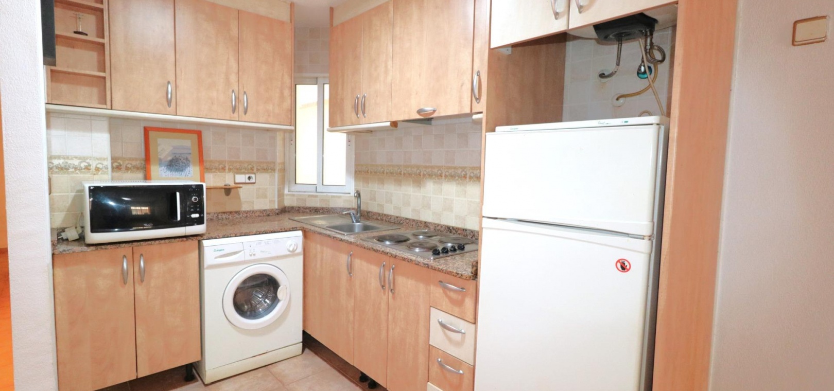 Wohnung in Torrevieja Acequion, 46 m2 Wohnfläche, 150 m vom Strand entfernt, ein Schlafzimmer mit Doppelbett, ein Badezimmer, Immobilie in gutem Zustand, ausgestattete Küche, nach Osten ausgerichtet. ~ Extras: Einbauschränke, Aufzug, Balkon, Innenhof, Terrasse, Busse, Küste, Parks, Supermärkte ~ Gemeinschaftsgebühren: 20 EUR pro Monat ~