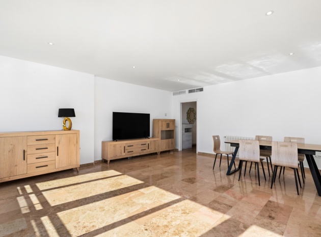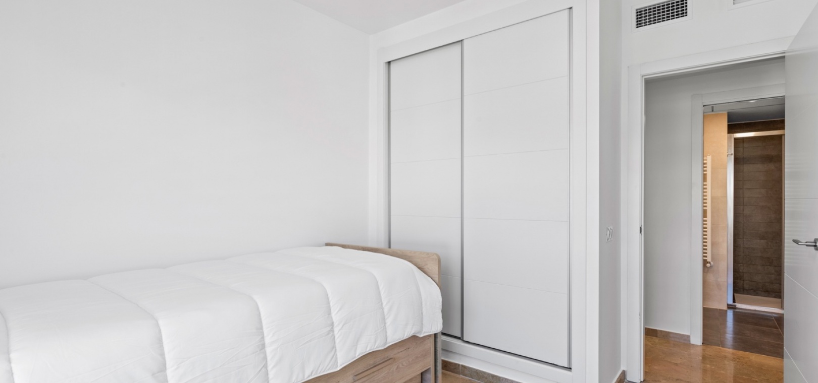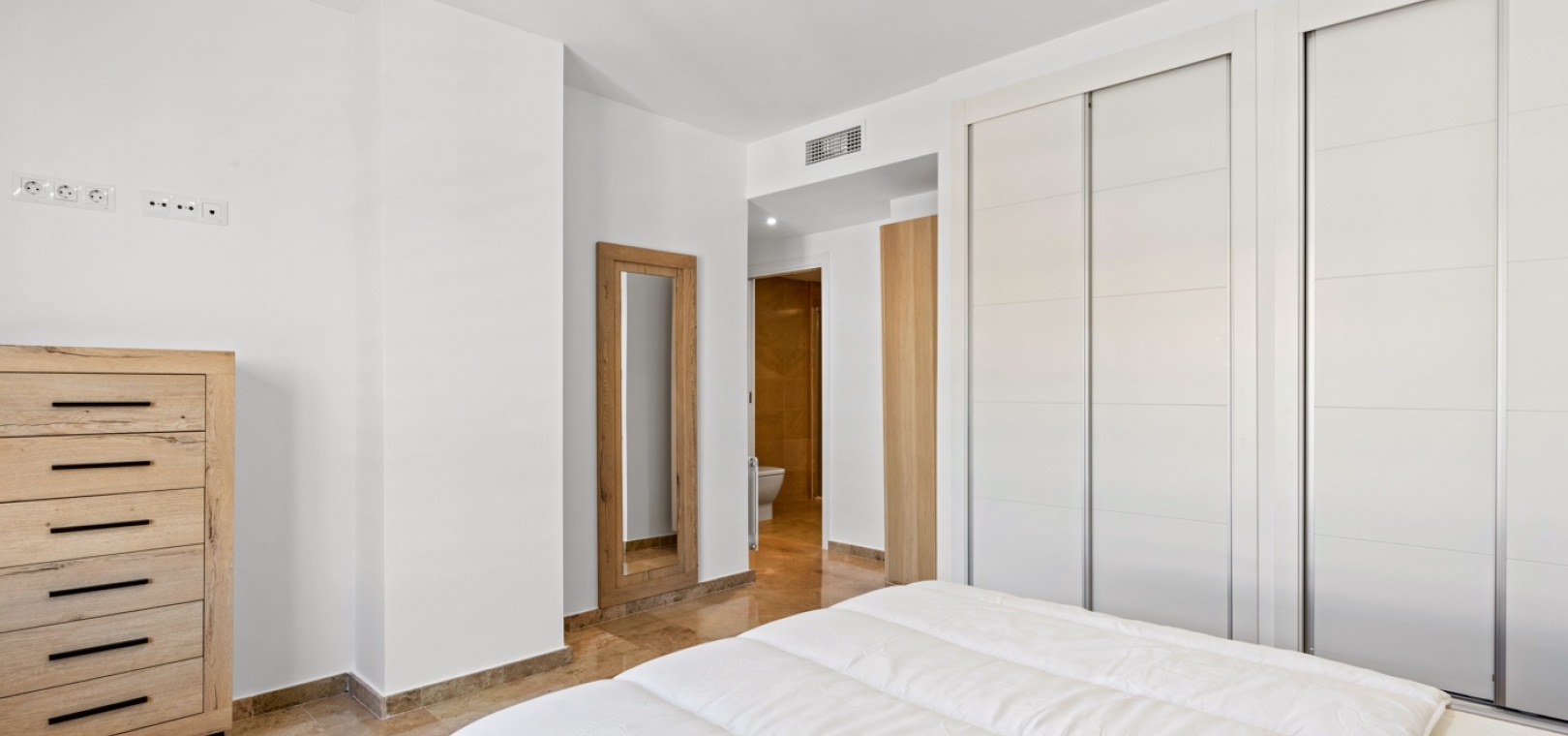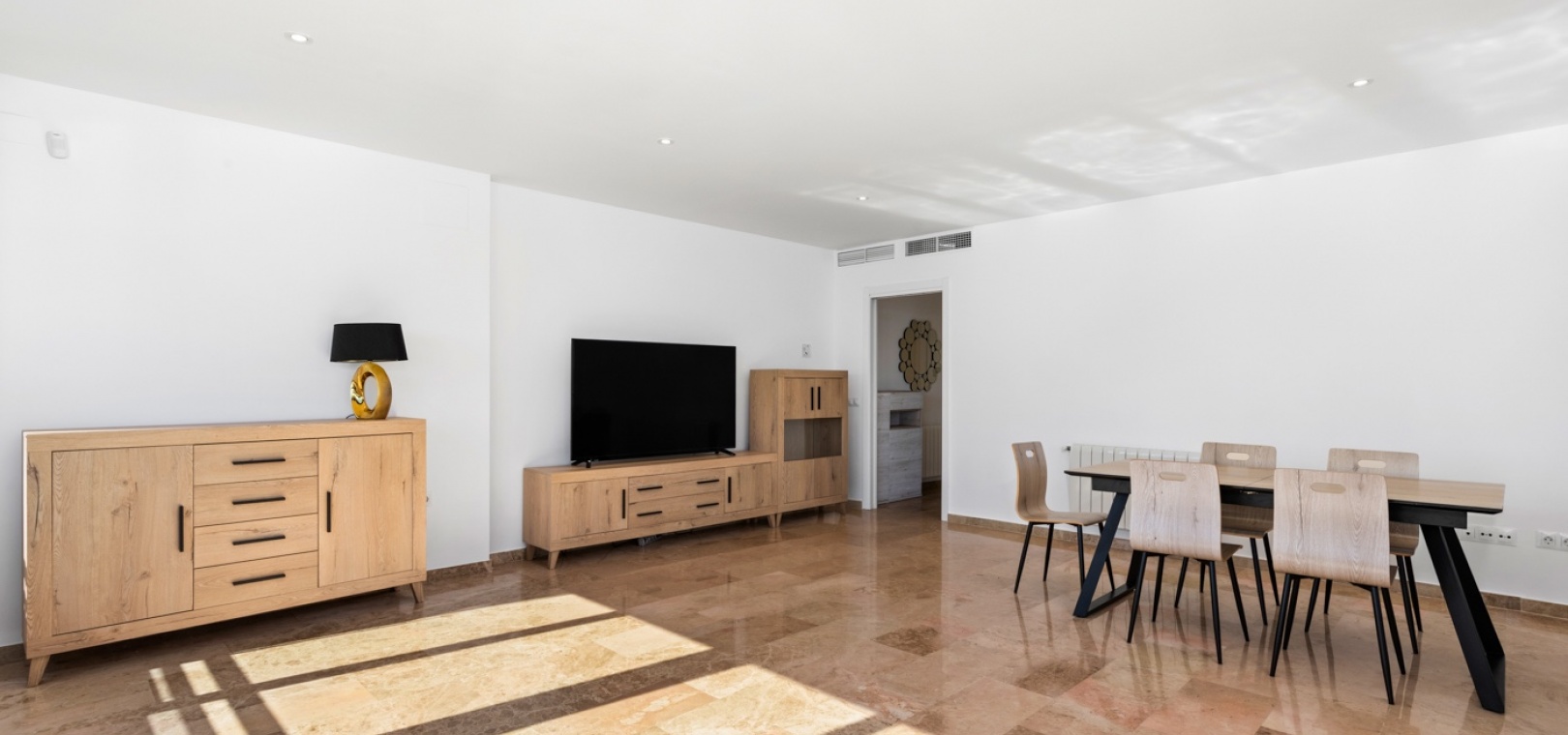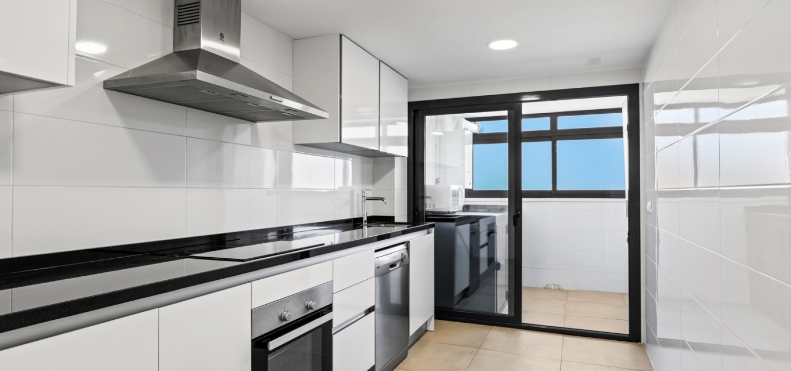Die Wohnung hat eine Gesamtwohnfläche von 133 m² und besteht aus 3 Doppelzimmern mit Einbauschränken und 2 Badezimmern, von denen eines en suite zum Hauptschlafzimmer gehört. Darüber hinaus verfügt die Wohnung über einen Eingangsbereich mit Einbauschrank, eine voll ausgestattete Küche mit Hauswirtschafts-/Abstellraum sowie ein großes Wohn- und Esszimmer mit atemberaubendem Meerblick. Vom Wohnzimmer aus haben Sie direkten Zugang zu einer Terrasse, auf der Sie die Aussicht genießen können.
