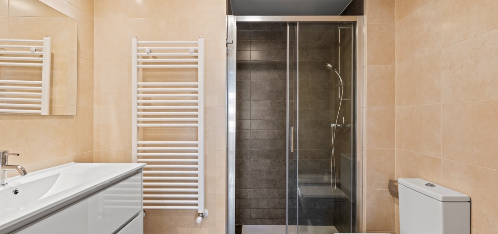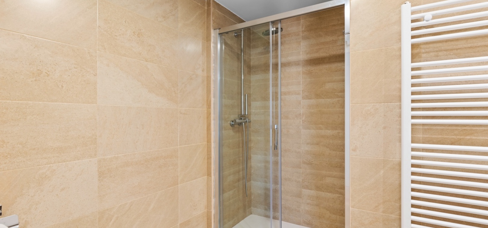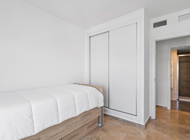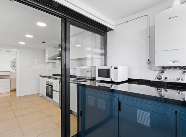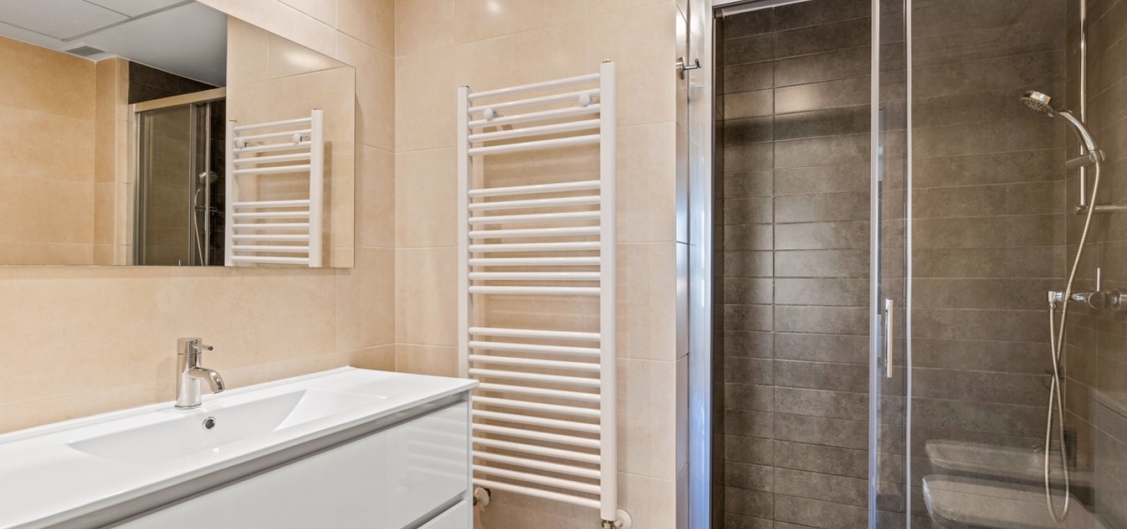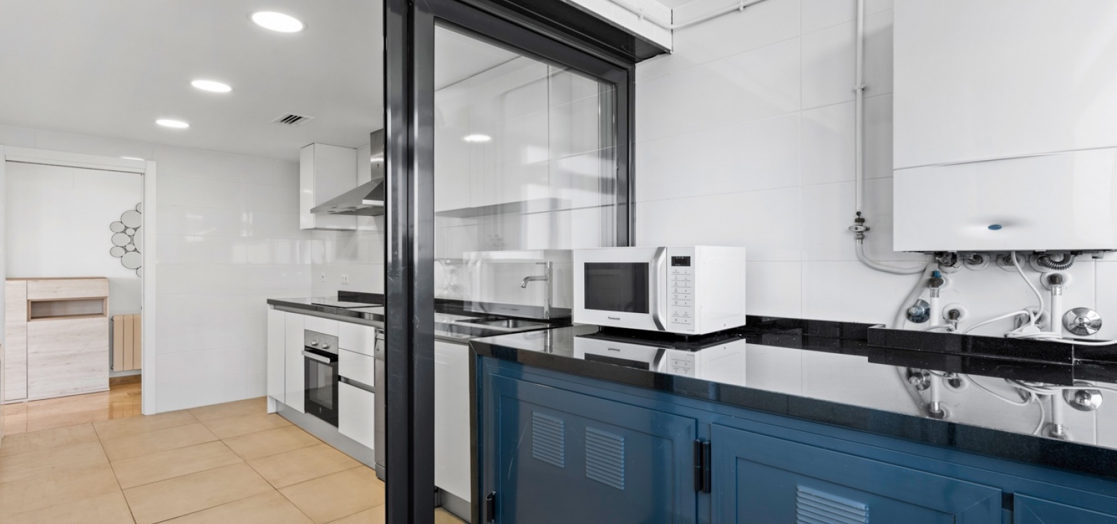 Die Wohnung hat eine Gesamtwohnfläche von 133 m² und besteht aus 3 Doppelzimmern mit Einbauschränken und 2 Badezimmern, von denen eines en suite zum Hauptschlafzimmer gehört. Darüber hinaus verfügt die Wohnung über einen Eingangsbereich mit Einbauschrank, eine voll ausgestattete Küche mit Hauswirtschafts-/Abstellraum sowie ein großes Wohn- und Esszimmer mit atemberaubendem Meerblick. Vom Wohnzimmer aus haben Sie direkten Zugang zu einer Terrasse, auf der Sie die Aussicht genießen können.