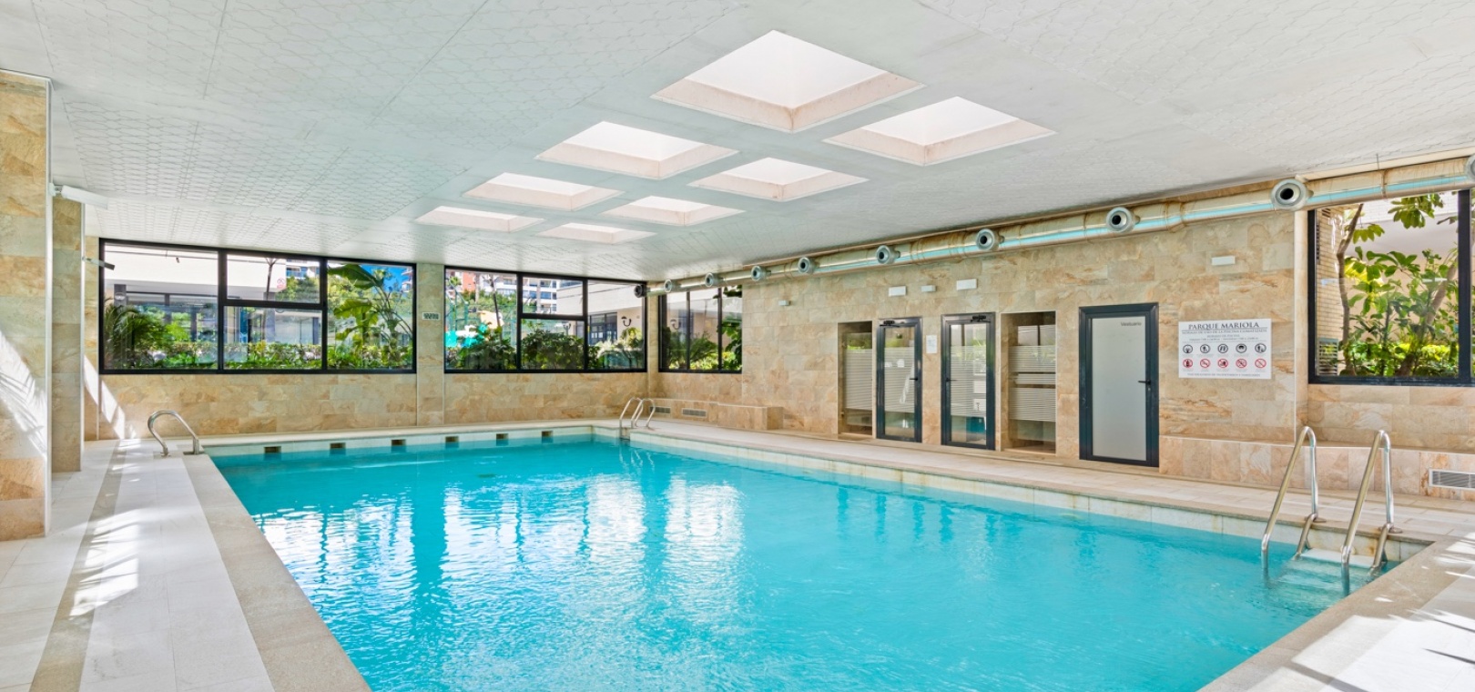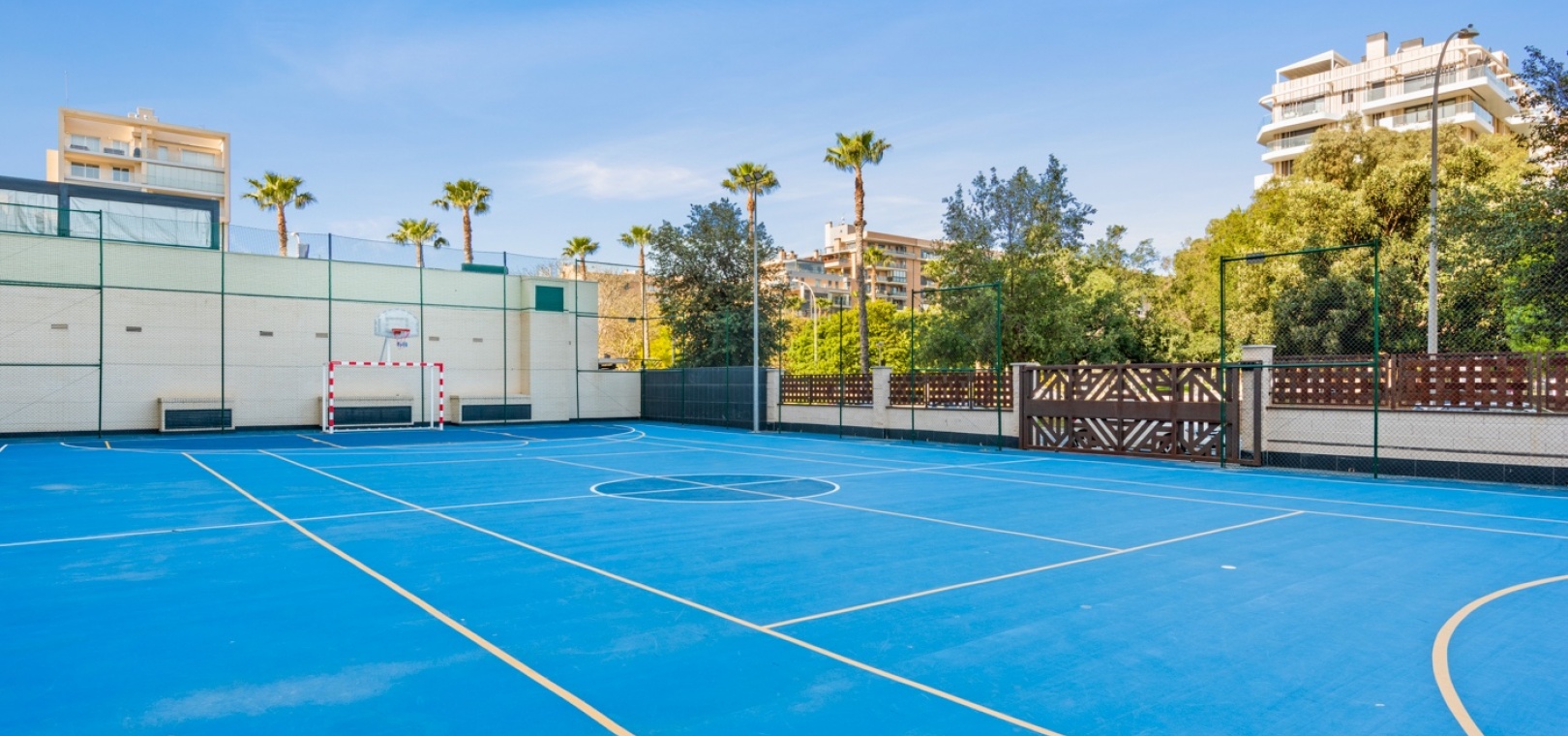 In der wunderschönen Wohnanlage Parque Mariola gibt es einen großen Außenpool, ein beheiztes Hallenbad, ein Fitnessstudio, ein Restaurant/Café, einen Kinderspielplatz, einen Gesellschaftsraum mit Küche, ein Kinderspielzimmer, einen Tennisplatz, einen Padelplatz sowie ein Fußball-/Basketballfeld.