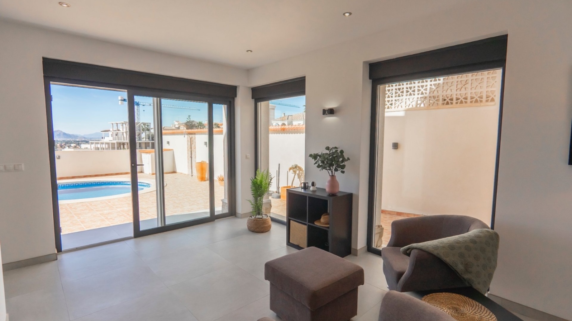 Entdecken Sie diese atemberaubende Villa mit vier Schlafzimmern und drei Badezimmern im renommierten Golfgebiet La Marquesa. Mit atemberaubender Aussicht, modernem Interieur und einem privaten Pool bietet dieses Anwesen eine perfekte Kombination aus Eleganz, Komfort und mediterranem Lebensstil. Egal, ob Sie nach einem Traumhaus, einem Feriendomizil oder einer lukrativen Investition suchen, diese Villa erfüllt alle Anforderungen. Objektübersicht: Diese wunderschön gestaltete Villa verfügt über einen offenen Wohn- und Essbereich, eine hochmoderne Küche und weitläufige Außenterrassen, auf denen Sie den atemberaubenden Blick auf den Golfplatz und die Berge genießen können. Die Villa ist auf Entspannung und Luxus ausgelegt und verfügt über hochwertige Oberflächen, modernes Dekor und geräumige Innenräume. Hauptmerkmale Privater Außenbereich – Ein geräumiger Terrassen- und Poolbereich, perfekt für Mahlzeiten im Freien, Sonnenbaden und Unterhaltung. Geräumiger Wohnbereich – Ein heller und moderner offener Lounge- und Essbereich mit großen Fenstern, die das Haus mit natürlichem Licht durchfluten. Voll ausgestattete Küche – Eine elegante, moderne Küche mit hochwertigen Geräten, reichlich Arbeitsfläche und Stauraum. Vier komfortable Schlafzimmer – Die Master-Suite verfügt über ein eigenes Badezimmer und Zugang zur Terrasse, während die anderen Schlafzimmer großzügig bemessen sind für Gäste oder die Familie. Drei moderne Badezimmer – Mit stilvollen Armaturen, begehbaren Duschen und eleganter Oberfläche gestaltet. Privater Swimmingpool und Sonnendeck – Ein wunderschön gepflegter Poolbereich, der einen ruhigen Rückzugsort mit atemberaubender Aussicht bietet. Erstklassige Lage – Gelegen im begehrten Golfgebiet La Marquesa, in der Nähe von Annehmlichkeiten, Golfplätzen und der atemberaubenden Küste der Costa Blanca. Entworfen für Luxus und Komfort. Diese Villa ist perfekt für diejenigen, die ein geräumiges, pflegeleichtes Anwesen suchen, das Innen- und Außenleben nahtlos miteinander verbindet. Die moderne Architektur, die hochwertige Ausstattung und der Panoramablick machen es zu einer wirklich einzigartigen Gelegenheit. Erstklassige Lage. Der Golfplatz La Marquesa – Nur einen kurzen Spaziergang entfernt und mit erstklassigen Golfanlagen. Lokale Annehmlichkeiten – Geschäfte, Supermärkte und Restaurants sind alle leicht zu erreichen. Strände und Flughafen Alicante – Eine kurze Fahrt zu wunderschönen Sandstränden und dem internationalen Flughafen Alicante. Eine großartige Investitionsmöglichkeit. Egal, ob Sie nach einem dauerhaften Zuhause, einem Feriendomizil oder einer hochrentierlichen Mietimmobilie suchen, diese Villa bietet einen unvergleichlichen Lebensstil in einer der begehrtesten Lagen der Costa Blanca. Lassen Sie sich dieses exklusive Anwesen nicht entgehen! Kontaktieren Sie uns noch heute, um eine Besichtigung zu vereinbaren.