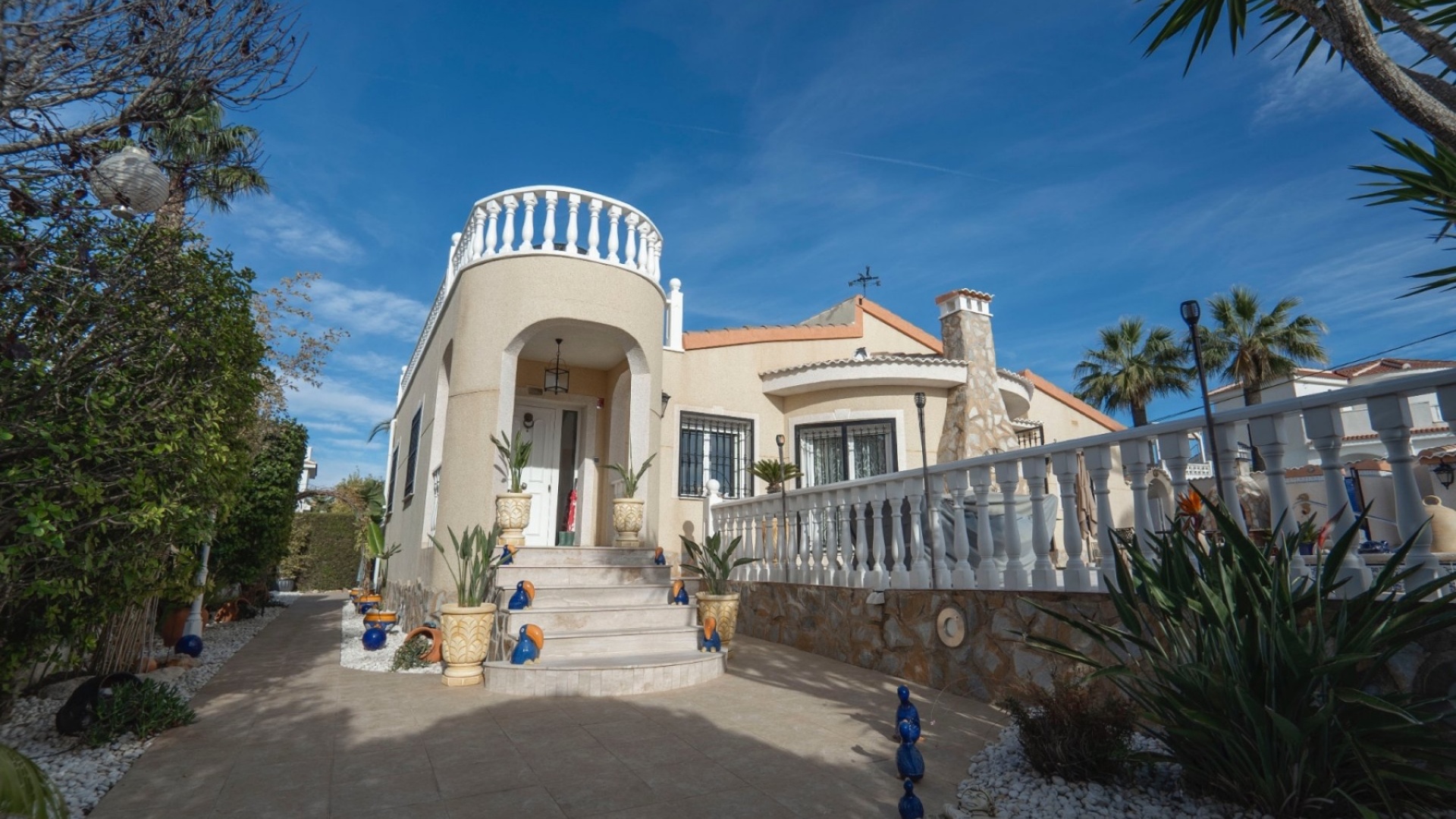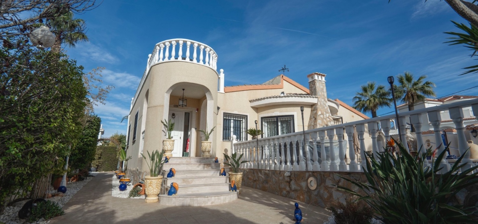 Willkommen in dieser beeindruckenden freistehenden Villa im begehrten Golfgebiet La Marquesa in Ciudad Quesada, Rojales, Alicante. Eingebettet in eine ruhige, malerische Umgebung bietet dieses wunderschön präsentierte Anwesen eine außergewöhnliche Gelegenheit für alle, die im Herzen der spanischen Landschaft leben und dabei alle Annehmlichkeiten des modernen Lebens genießen möchten. Immobilienübersicht: Diese geräumige Villa verfügt über einen großzügigen Wohnbereich mit offenem Design, das sowohl Licht als auch Platz maximiert. Der Innenraum ist durchgehend hochwertig ausgestattet und bietet eine Mischung aus Komfort und zeitgenössischem Stil. Die großen Fenster und weitläufigen Terrassen bieten einen atemberaubenden Blick auf den berühmten Golfplatz La Marquesa und die umliegende Landschaft. Hauptmerkmale: 3 Schlafzimmer, 2 Badezimmer: Die Villa verfügt über drei geräumige Schlafzimmer, darunter eine Master-Suite mit eigenem Bad, die viel Platz für Familie und Gäste bietet. Jedes Schlafzimmer bietet Einbauschränke für maximalen Stauraum. Offenes Wohnen: Das Wohnzimmer ist hell und luftig und geht nahtlos in den Essbereich und die Küche über. Die moderne Küche ist komplett mit hochwertigen Geräten und reichlich Arbeitsfläche ausgestattet und eignet sich daher perfekt für Hobbyköche. Privater Pool und Garten: Die Villa befindet sich auf einem gepflegten Grundstück mit privatem Pool, ideal zum Entspannen und für Unterhaltungen im Freien. Der Garten bietet viel Platz zum Entspannen, Essen und Genießen der Sonne. Große Terrassen und Aussichten: Mehrere Terrassen bieten atemberaubende Ausblicke auf den Golfplatz und die Umgebung. Egal, ob Sie Ihren Morgenkaffee oder den Sonnenuntergang am Abend genießen, die Außenbereiche bieten eine idyllische Umgebung. Garage und Auffahrt: Das Anwesen umfasst eine Garage und reichlich Platz für zusätzliche Parkplätze, was den Komfort für Hausbesitzer und Gäste gewährleistet. Lage: La Marquesa Golf ist eine der beliebtesten Gegenden in Ciudad Quesada und bietet nicht nur einen fantastischen Golfplatz, sondern auch eine Vielzahl von Annehmlichkeiten wie Geschäfte, Restaurants, Bars und mehr. Die Gegend ist nur eine kurze Autofahrt von den wunderschönen Stränden von Guardamar del Segura und der geschäftigen Stadt Torrevieja entfernt und bietet die perfekte Balance zwischen Ruhe und Erreichbarkeit. Egal, ob Sie ein dauerhaftes Zuhause oder ein luxuriöses Urlaubsdomizil suchen, diese Villa bietet ein unvergleichliches Wohnerlebnis in einer der begehrtesten Regionen Spaniens.