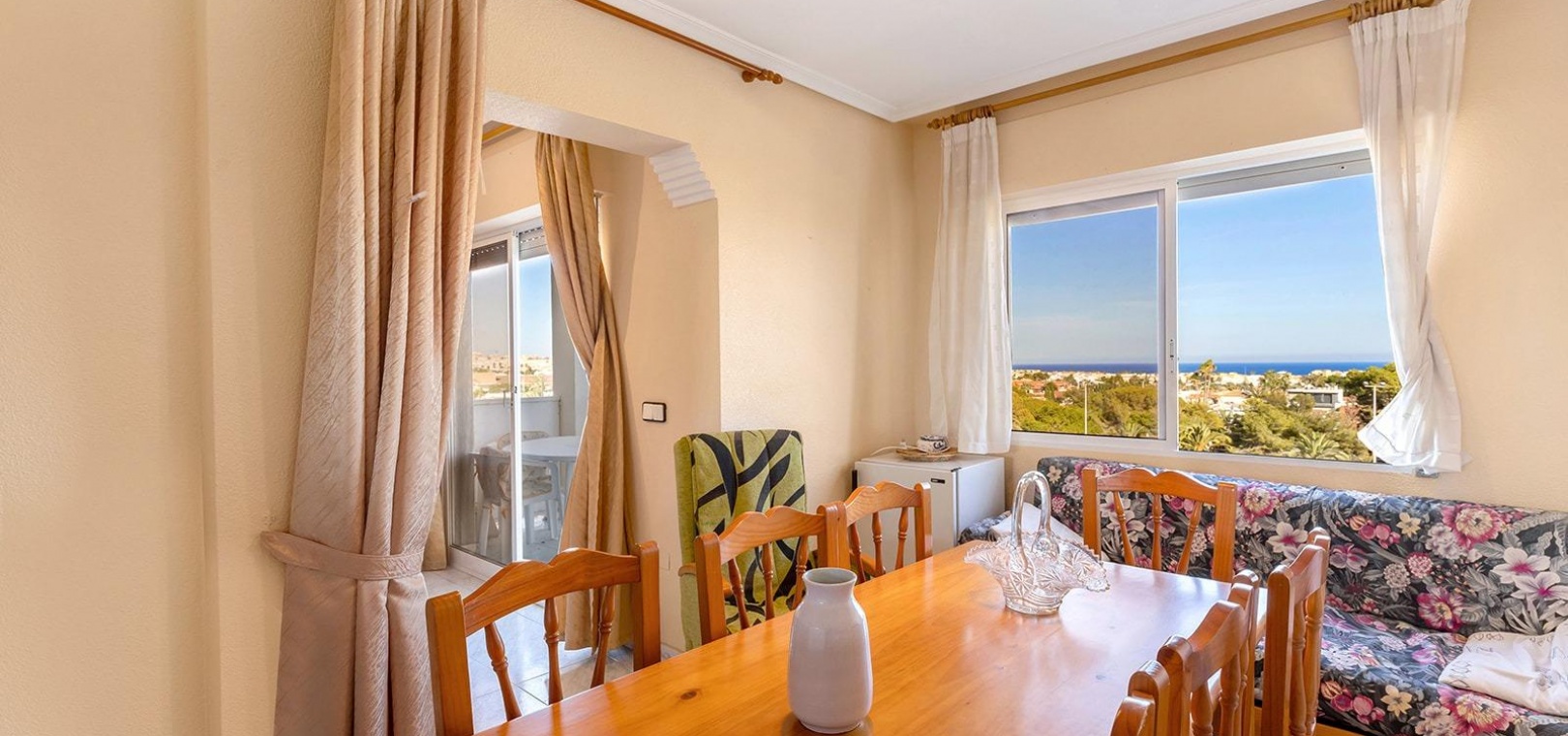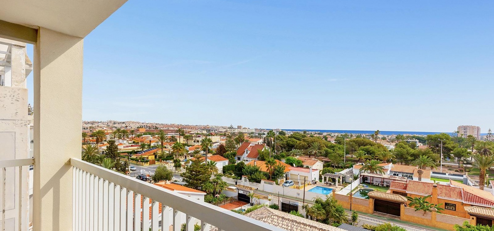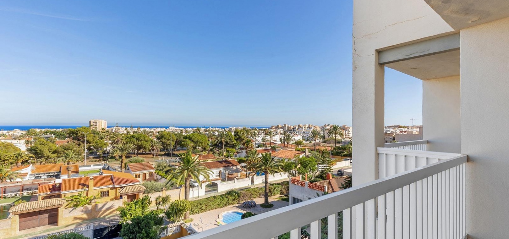 Spektakuläre 100 m² große Wohnung mit Meerblick in einer exklusiven Wohnanlage mit Pool~~Dieses herrliche Anwesen in einer privaten Wohnanlage mit Pool im sonnigen Torrevieja ist ein Juwel für alle, die Komfort und Exklusivität suchen. Es befindet sich im vierten Stock eines fünfstöckigen Gebäudes und bietet die gleiche Privatsphäre wie ein Penthouse, ohne Nachbarn im Obergeschoss.~~Die Wohnung ist ein Semi-Penthouse, das Ergebnis der Kombination zweier Einheiten durch den ursprünglichen Bauherrn. Es liegt vollständig nach außen und bietet geräumige Bereiche und eine sehr funktionale Aufteilung. Es verfügt derzeit über 3 Schlafzimmer, 2 Badezimmer, eine Küche und zwei gemütliche Wohnzimmer (eines könnte als großes viertes Schlafzimmer dienen), die alle über viel natürliches Licht verfügen. Die Südostausrichtung sorgt den ganzen Tag über für hervorragende Helligkeit.~~Das Anwesen verfügt über zwei private Terrassen, eine im Hauptschlafzimmer und eine im Wohnzimmer, beide mit atemberaubendem, unverbautem Meerblick, der nur 1.000 Meter entfernt ist.~~Im Preis ist ein Parkplatz inbegriffen, was für mehr Komfort und Sicherheit sorgt.~~Dieses Haus liegt in einer Gegend, die von allen wichtigen Dienstleistungen umgeben ist, und ist perfekt, um ein ruhiges und entspanntes Leben in Küstennähe zu genießen.~~~~