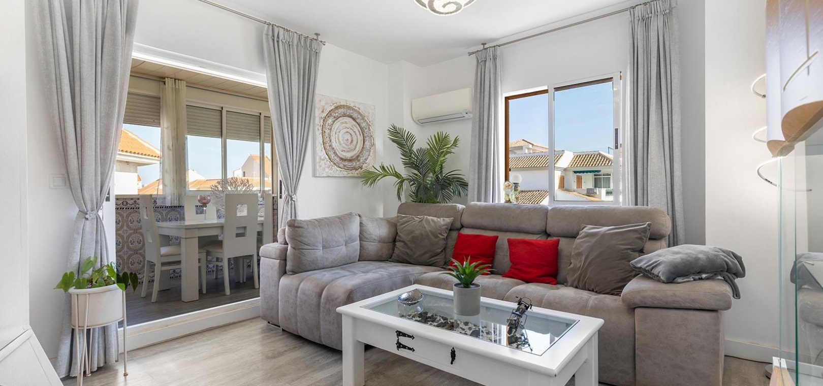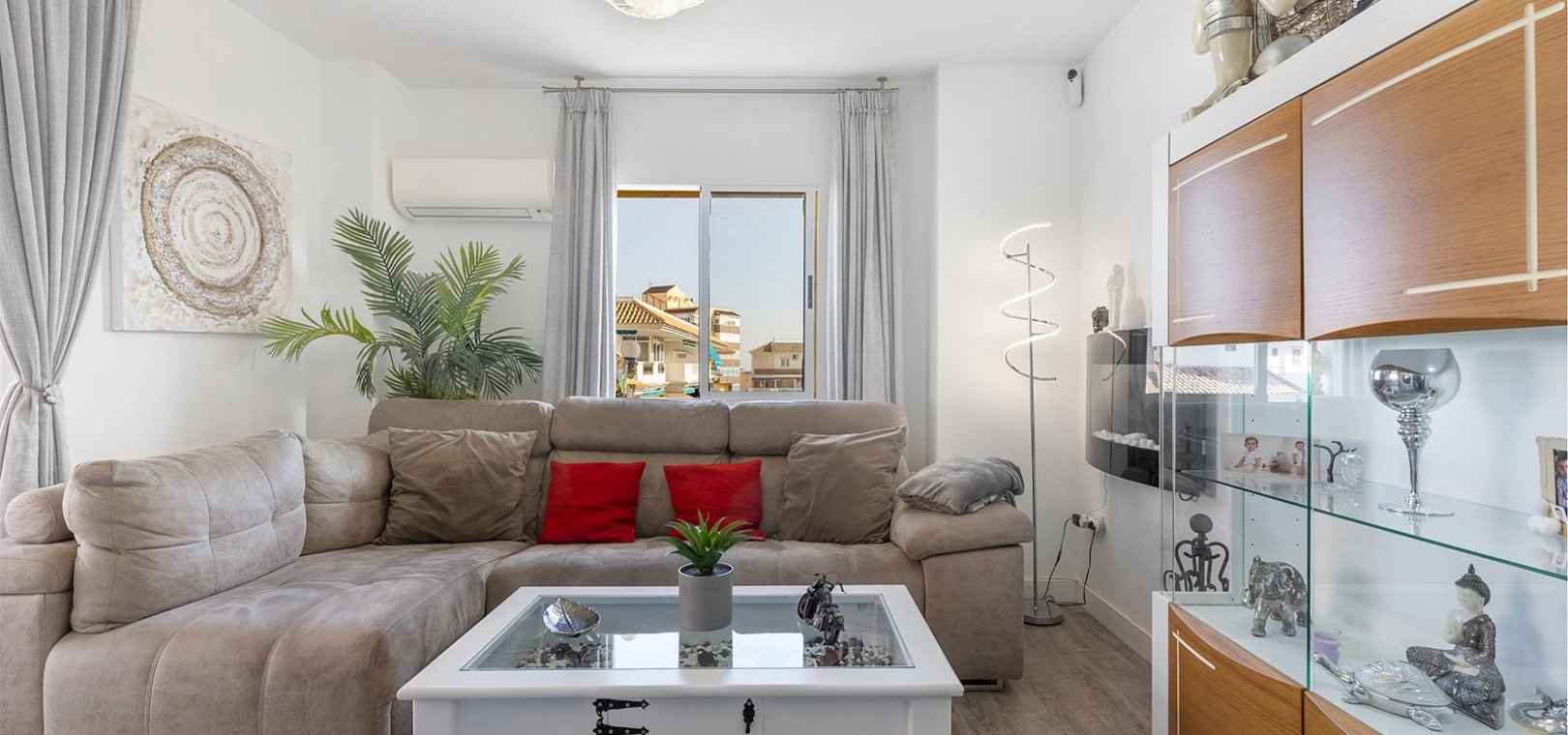 Renovierte Wohnung in Viñamar IV~Wir präsentieren Ihnen ein prächtiges, komplett renoviertes Penthouse, das Komfort, Design und eine privilegierte Lage vereint.~~Dieses Haus verfügt über drei große Schlafzimmer, ideal für den Komfort der ganzen Familie, und zwei geräumige Badezimmer, die Funktionalität und Stil bieten. Seine Aufteilung optimiert das natürliche Licht und unterstreicht seine Ostausrichtung, die jeden Morgen für Helligkeit und eine angenehme Aussicht sorgt.~~Das Penthouse wird teilweise möbliert verkauft und kann an Ihren persönlichen Stil angepasst werden. Es befindet sich in einer Anlage mit Gemeinschaftspool, perfekt für Momente der Entspannung und des Spaßes in einer ruhigen und sicheren Umgebung.~~Darüber hinaus besteht die Möglichkeit, einen Parkplatz (14.000 €) oder, wenn Sie mehr Platz benötigen, einen Parkplatz mit Abstellraum (19.000 €) zu erwerben~~Nur 350 Meter vom Strand entfernt gelegen, können Sie die Meeresbrise und lange Spaziergänge am Meer genießen. Seine strategische Lage bietet außerdem Zugang zu allen grundlegenden Dienstleistungen wie einem Gesundheitszentrum, einem Einkaufszentrum, Supermärkten und Restaurants und sorgt so für Komfort in Ihrem täglichen Leben.~~Ein ideales Zuhause, um sowohl das ganze Jahr über darin zu wohnen als auch Ihren Urlaub zu genießen!~~Sind Sie interessiert? Kontaktieren Sie uns für weitere Informationen oder um einen Besichtigungstermin zu vereinbaren.