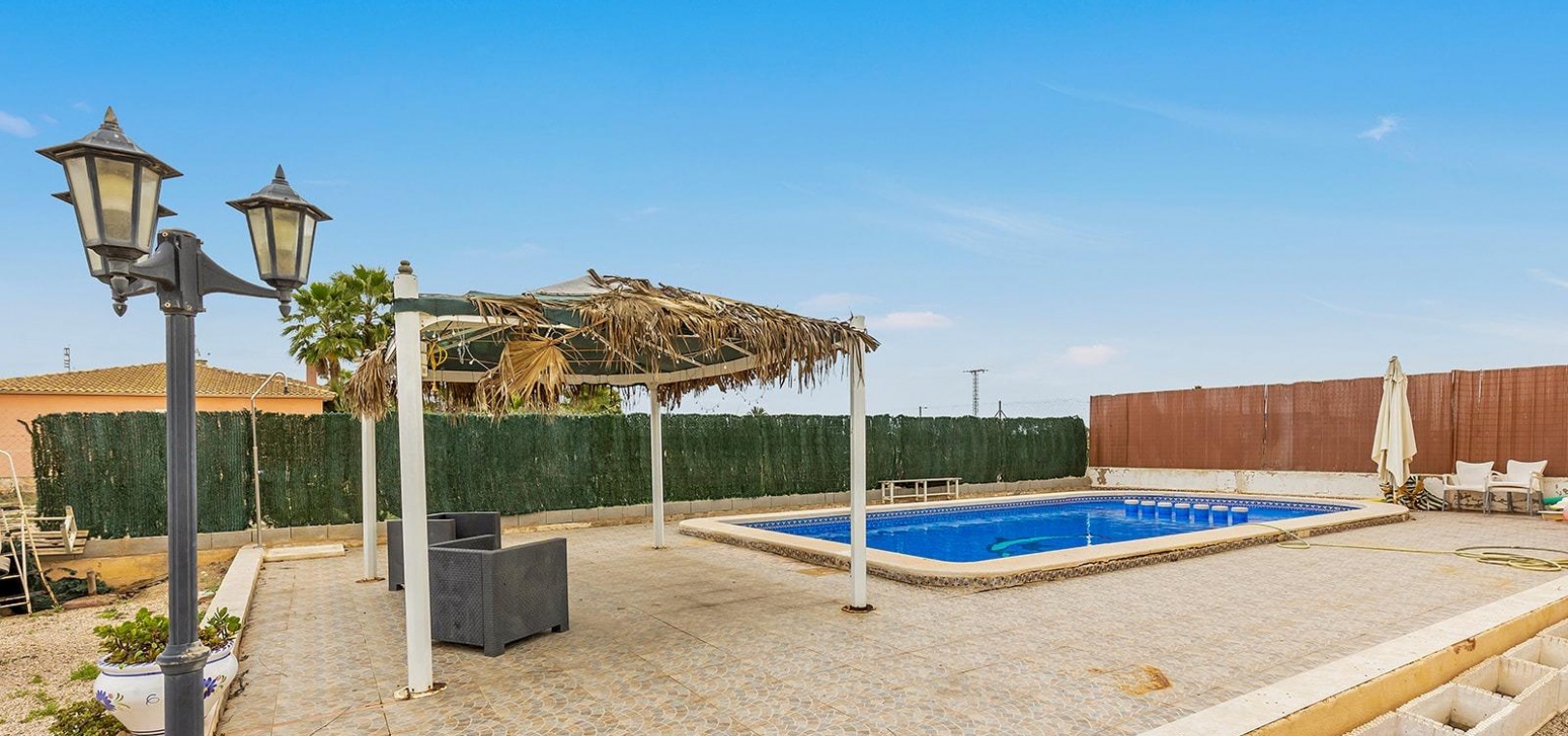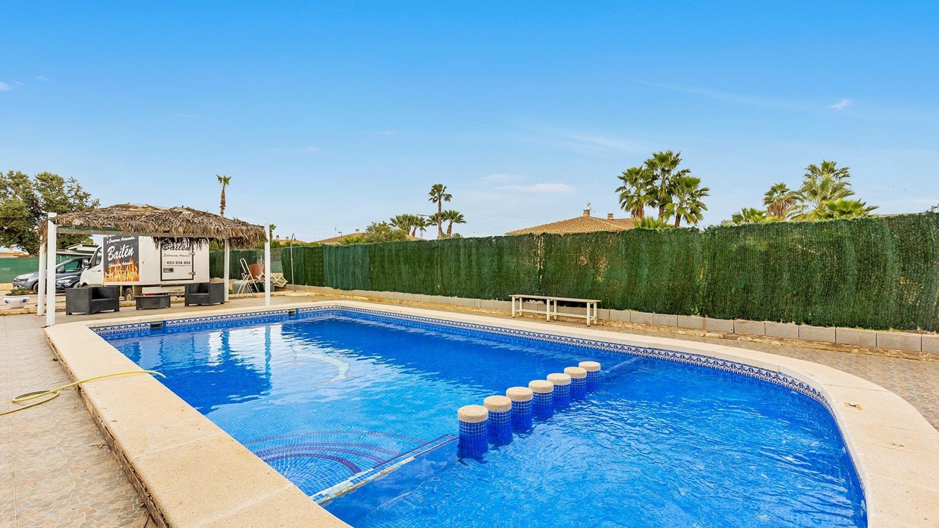 Diese beeindruckende Villa mit 162 m², gelegen auf einem 2.250 m² großen Grundstück, vereint Eleganz, Komfort und großzügige Außenbereiche, um das Leben im Freien in vollen Zügen zu genießen. Gelegen in der charmanten Ortschaft Dolores bietet sie eine ruhige Umgebung, während alle Annehmlichkeiten in der Nähe sind.~~Das Haus verfügt über ein helles und geräumiges Wohn- und Esszimmer, ideal für Familienzusammenkünfte oder gesellige Abende mit Freunden. Die separate Küche ist mit hochwertigen Möbeln ausgestattet und bietet viel Platz zum komfortablen Kochen.~~Es bietet 3 große Schlafzimmer, gut belüftet und perfekt zur Erholung, sowie 2 voll ausgestattete Badezimmer, eines davon en suite, mit modernen und funktionalen Details.~~Draußen finden Sie einen beeindruckenden großen Pool, umgeben von großzügigen Sonnenbereichen. Der Grillplatz mit Essbereich im Freien ist ideal für Mahlzeiten unter freiem Himmel, und das weitläufige Grundstück bietet viel Platz für mehrere Fahrzeuge.~~Diese Immobilie ist eine perfekte Wahl für einen dauerhaften Wohnsitz oder einen Feriensitz in einer natürlichen Umgebung, mit allen Dienstleistungen in Reichweite. Eine wahre Oase der Ruhe an der Costa Blanca!