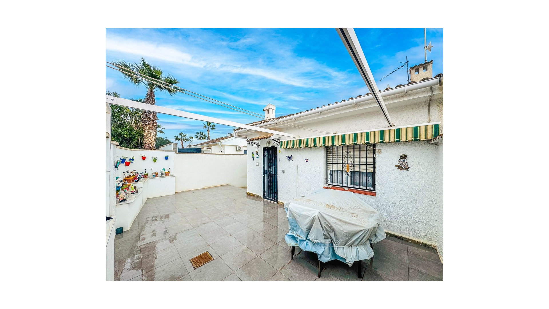 Entdecken Sie diesen entzückenden Reihenendbungalow mit 2 Schlafzimmern im begehrten Viertel Pueblo Bravo in Ciudad Quesada. In idealer Lage, nur 0,5 Meter von den örtlichen Annehmlichkeiten und nur 3 km vom Golfplatz La Marquesa entfernt, bietet dieses Anwesen eine perfekte Mischung aus Komfort, Bequemlichkeit und mediterranem Charme. Betreten Sie eine geräumige geflieste Terrasse, die sich ideal zum Essen und Entspannen im Freien eignet. Das Haus verfügt über einen hellen Wohnbereich, eine voll ausgestattete Küche und zwei großzügig bemessene Schlafzimmer, die ein komfortables Wohnerlebnis gewährleisten. Mit einem sicheren Eingang mit Tor und charmanten dekorativen Elementen eignet sich dieses Anwesen perfekt als Feriendomizil, Mietinvestition oder Vollzeitwohnsitz. Hauptmerkmale: 2 Schlafzimmer und 1 Badezimmer – Komfortable Raumaufteilung mit viel Tageslicht Reihenendbungalow – Mehr Privatsphäre und zusätzlicher Platz im Freien Geräumige geflieste Terrasse – Geringer Wartungsaufwand, perfekt für das Leben im Freien Annehmlichkeiten zu Fuß erreichbar – Nur 0,5 Meter zu Geschäften, Bars und Restaurants Traum für Golfliebhaber – Nur 3 km vom Golfplatz La Marquesa entfernt Sicherer Eingang – Seelenfrieden durch private Umgebung Nah an Stränden – 10 Autominuten zur atemberaubenden Küste von Guardamar Großartige Investitionsmöglichkeit – Ideal für Vermietung oder als Ferienhaus Lassen Sie sich diese fantastische Gelegenheit nicht entgehen! Kontaktieren Sie uns noch heute, um einen Besichtigungstermin zu vereinbaren.