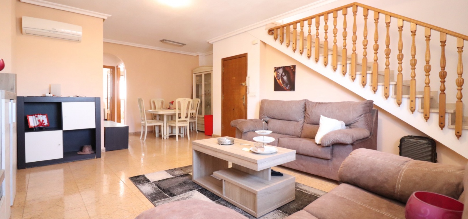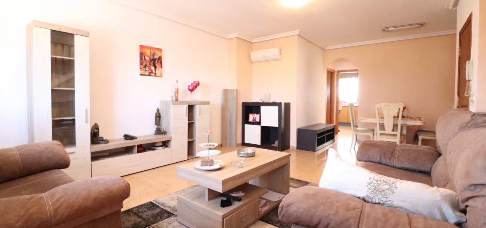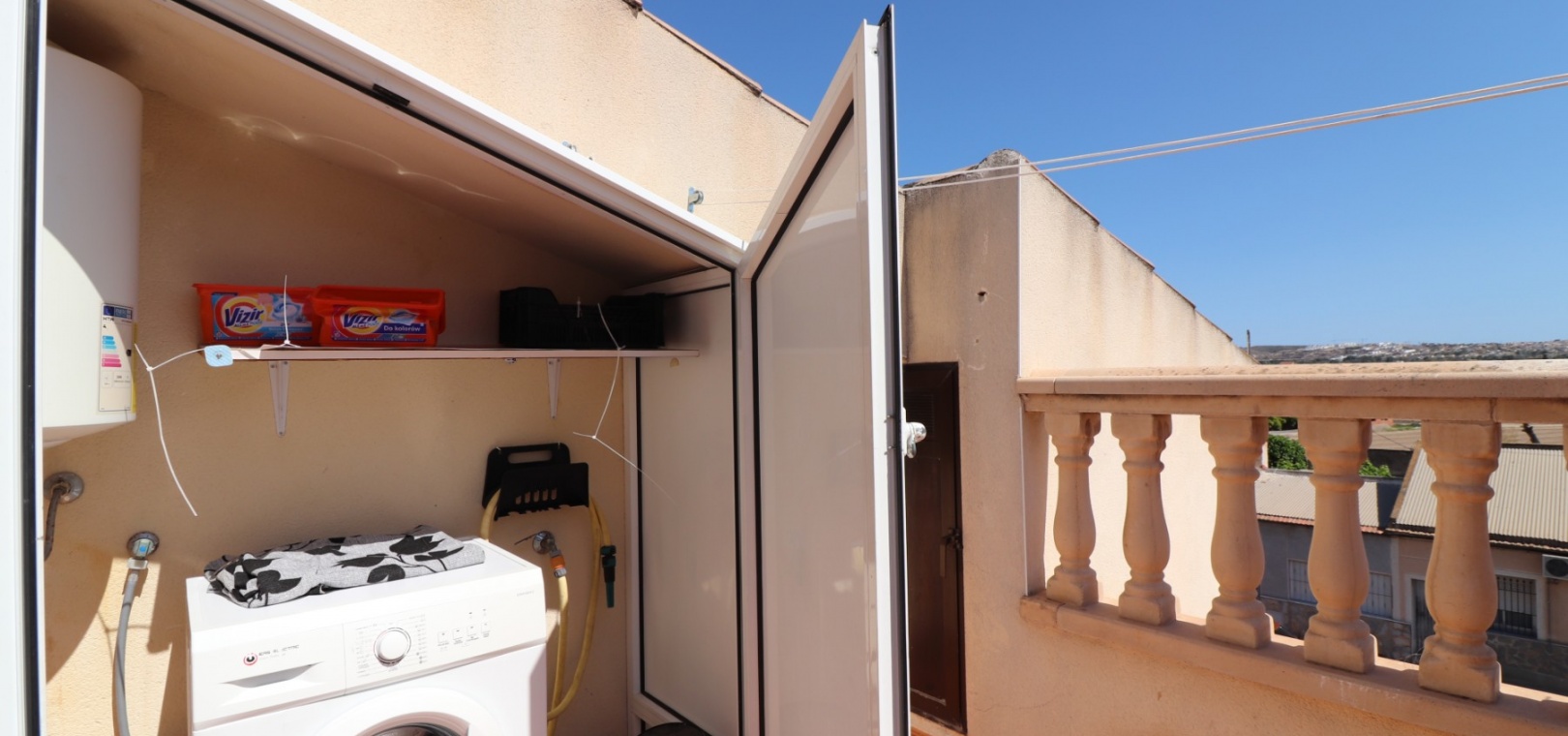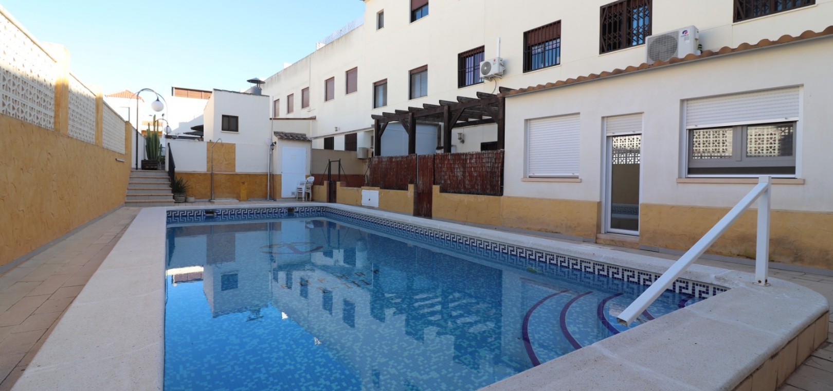 Dieses makellose, nach Süden ausgerichtete Maisonette-Apartment mit drei Schlafzimmern in San Fulgencio befindet sich im Herzen dieser traditionellen spanischen Stadt neben Daya Vieja, Rojales und La Marina. Die nächsten Annehmlichkeiten und Einrichtungen dieser schönen Gegend wie Bars, Restaurants, Geschäfte, der örtliche Stadtplatz, ein Spielplatz an der Ecke und vieles mehr sind nur 5 Gehminuten entfernt. Die Strände in Guardamar del Segura sind ebenfalls 10 Autominuten entfernt. Dieses schöne Anwesen im Obergeschoss besteht auf der Hauptebene aus einer separaten, voll ausgestatteten Küche, einem geräumigen Wohn-/Esszimmer, einem Schlafzimmer mit Doppelbett und einem Familienbadezimmer. Über die Innentreppe in die oberste Etage gelangen Sie zu zwei weiteren Schlafzimmern mit Doppelbett und eigenem Bad. Der Zugang erfolgt daher von beiden Schlafzimmern aus. Das Hauptschlafzimmer ist jedoch äußerst geräumig und verfügt über eine große private Sonnenterrasse, die sich ideal zum Grillen, Sonnenbaden und Unterhalten eignet, während Sie gleichzeitig den offenen Panoramablick auf die Landschaft direkt davor und einen Hauswirtschaftsschrank genießen! Auf der Rückseite des Anwesens befinden sich außerdem ein Gemeinschaftspool sowie Gemeinschaftsgärten. Zu den Extras dieser Immobilie gehören Einbauschränke in zwei Schlafzimmern sowie eine Klimaanlage im Wohnzimmer!!! Ein toller Preis für eine tolle Immobilie... Lassen Sie sich das nicht entgehen!