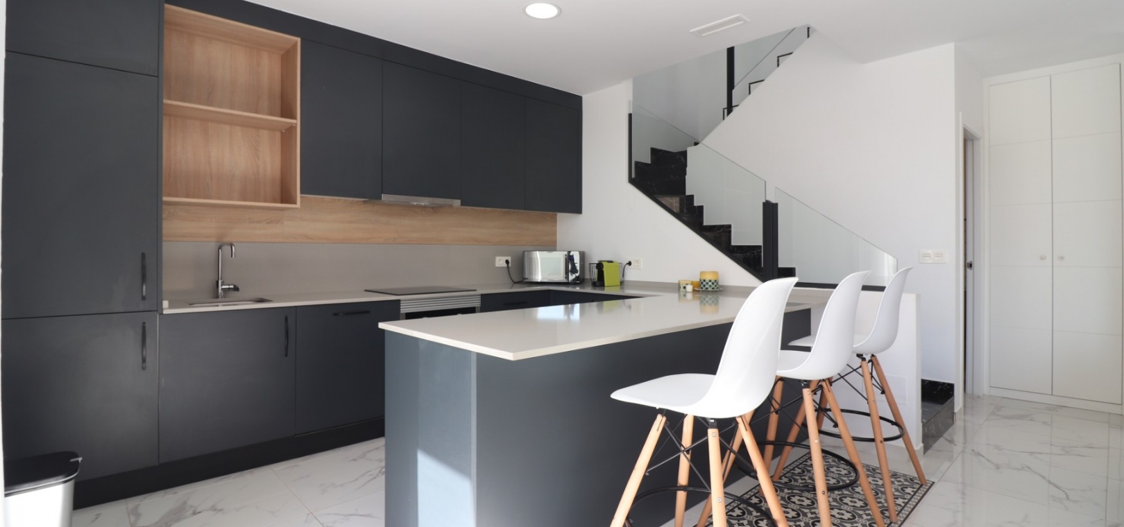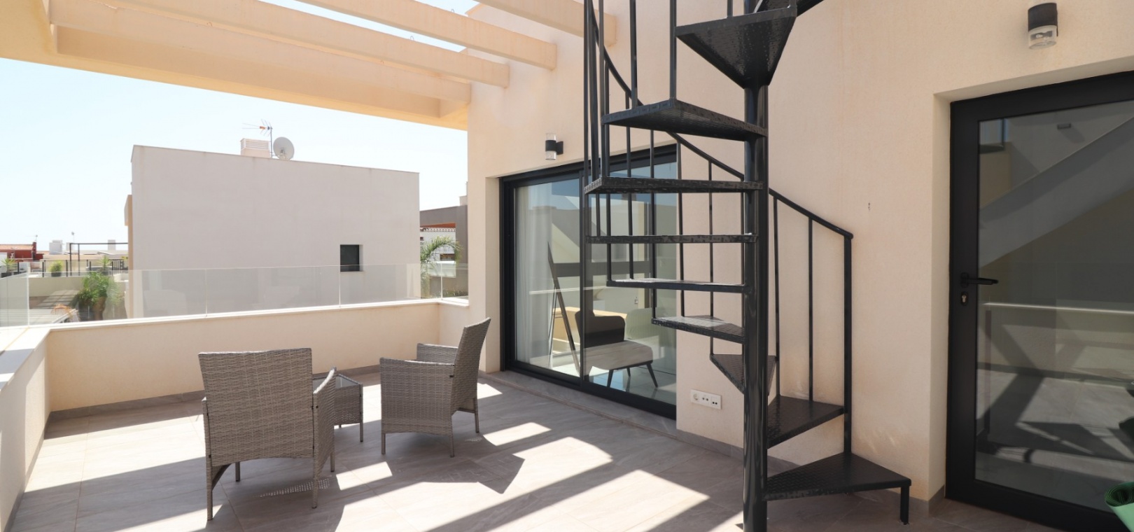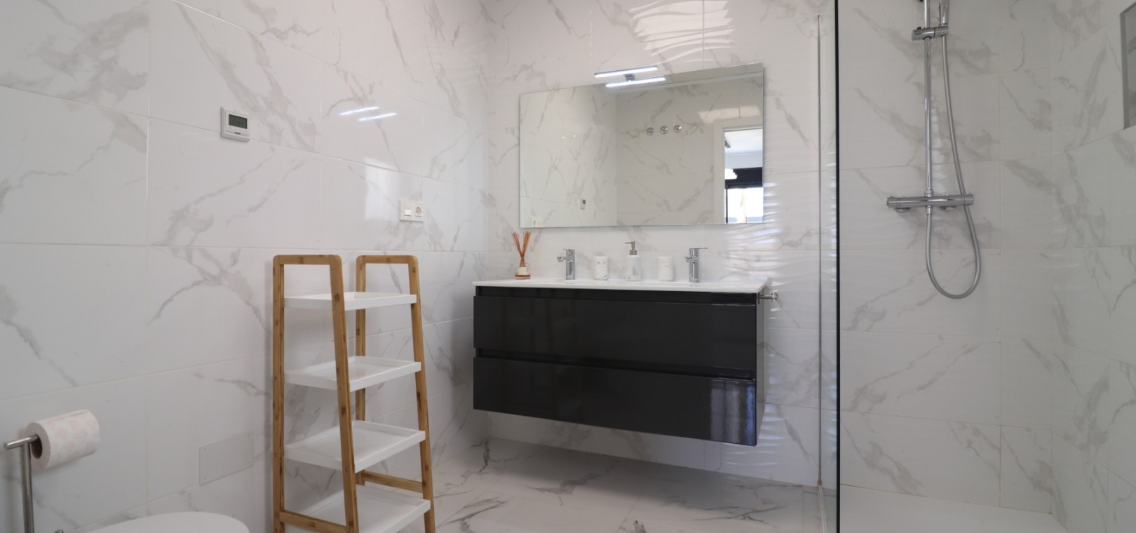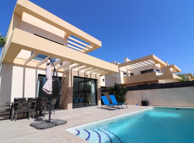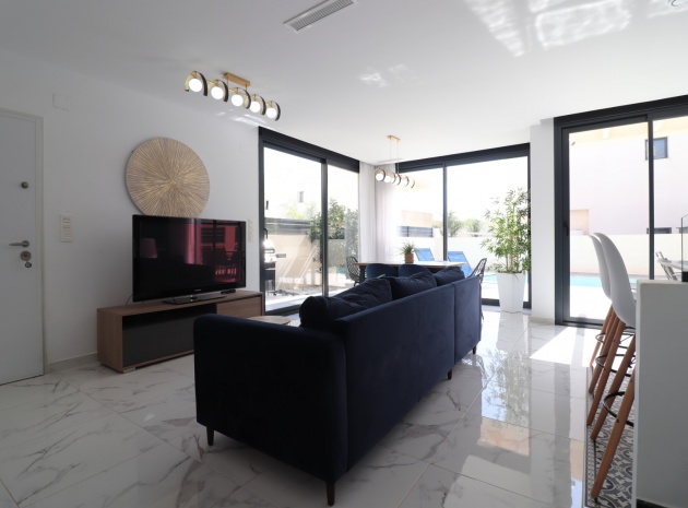 Diese neuwertige, nach Süden ausgerichtete, freistehende Villa mit drei Schlafzimmern in La Herrada, Los Montesinos, liegt nur 5 Gehminuten von den Annehmlichkeiten und Einrichtungen der Urbanisation selbst und nur 15 Autominuten vom Strand entfernt. Die Villa verfügt über zwei Duschräume, eine Garderobe und eine offene Küche. Das riesige Solarium auf dem Dach bietet einen atemberaubenden Blick auf den See. Zu den weiteren Ausstattungsmerkmalen gehören elektrische Rollläden, Klimaanlage im gesamten Gebäude und Einbauschränke in allen drei Schlafzimmern, wobei zwei Schlafzimmer über ein eigenes Bad verfügen. Im Außenbereich verfügt das Anwesen über einen privaten gefliesten und mit Kunstrasen bepflanzten Garten, einen privaten 6,5 x 3 m großen Pool und einen schattigen Terrassenbereich neben dem Pool, der sich perfekt zum Entspannen eignet. Parkplätze abseits der Straße sind vorhanden und zwei der Schlafzimmer führen auf eine schön große, schattige Terrasse mit leichtem Blick auf den See im ersten Stock. Diese moderne Villa, Baujahr 2021, befindet sich an der Costa Blanca Süd, bietet hochwertige Oberflächen, eine Baufläche von 135 m² auf einem 213 m² großen Grundstück und hat keine Gemeinschaftsgebühren. DIESES ANWESEN VERFÜGT AUCH ÜBER EINE TOURISTISCHE LIZENZ!