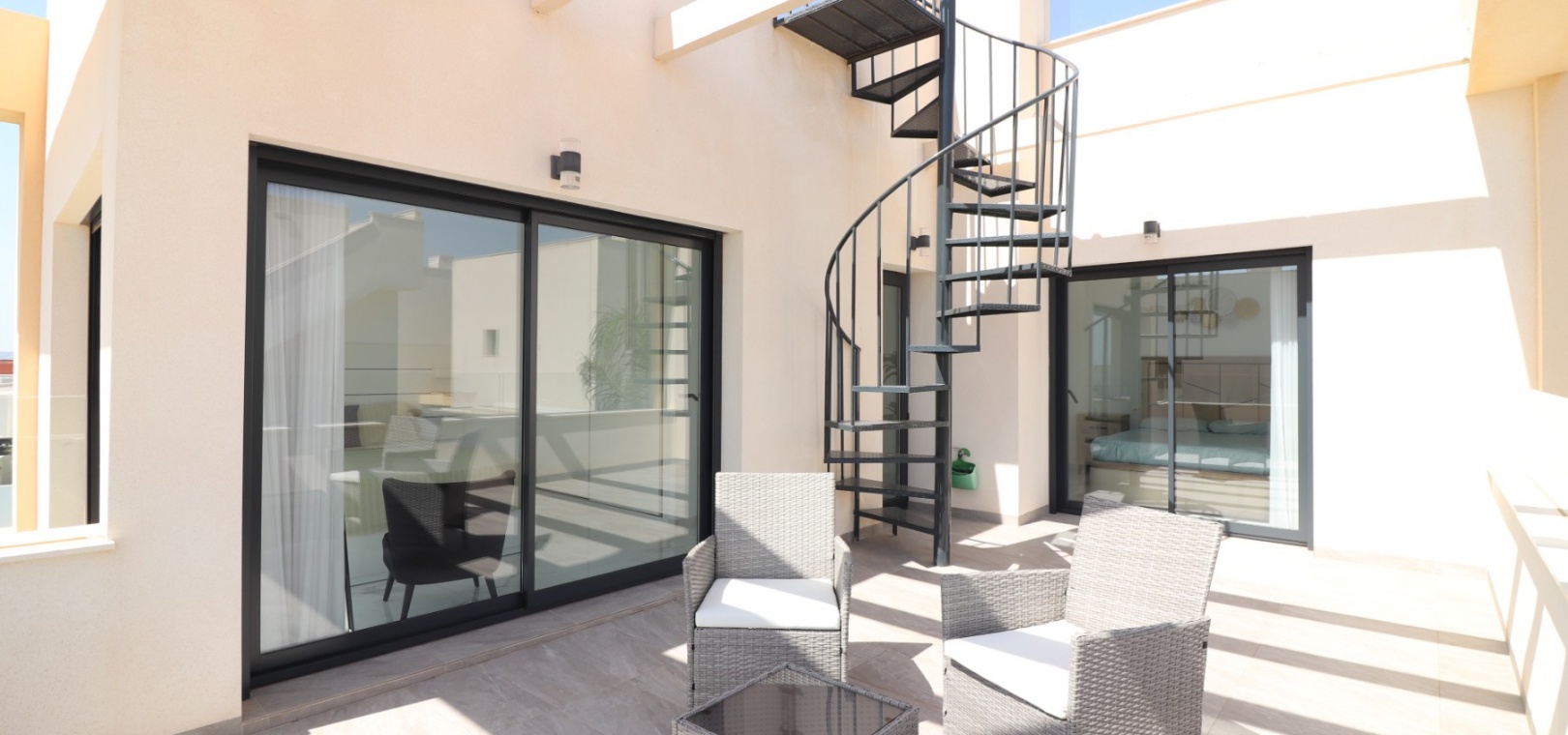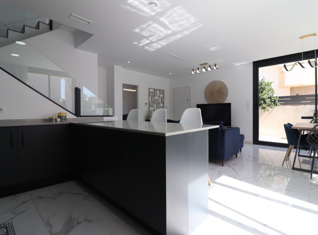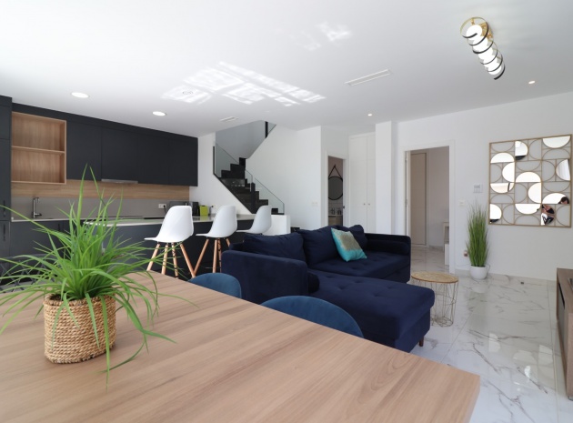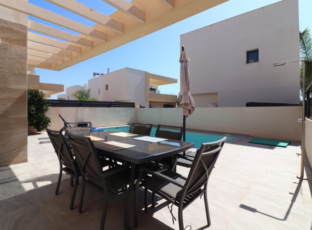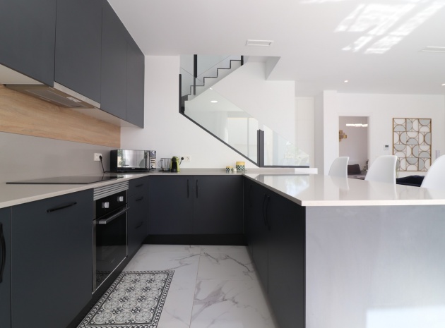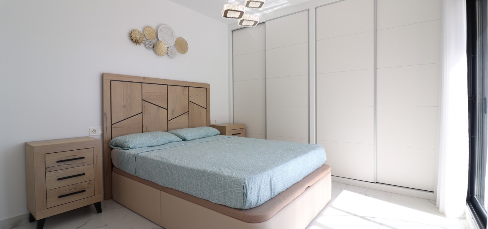 Diese neuwertige, nach Süden ausgerichtete, freistehende Villa mit drei Schlafzimmern in La Herrada, Los Montesinos, liegt nur 5 Gehminuten von den Annehmlichkeiten und Einrichtungen der Urbanisation selbst und nur 15 Autominuten vom Strand entfernt. Die Villa verfügt über zwei Duschräume, eine Garderobe und eine offene Küche. Das riesige Solarium auf dem Dach bietet einen atemberaubenden Blick auf den See. Zu den weiteren Ausstattungsmerkmalen gehören elektrische Rollläden, Klimaanlage im gesamten Gebäude und Einbauschränke in allen drei Schlafzimmern, wobei zwei Schlafzimmer über ein eigenes Bad verfügen. Im Außenbereich verfügt das Anwesen über einen privaten gefliesten und mit Kunstrasen bepflanzten Garten, einen privaten 6,5 x 3 m großen Pool und einen schattigen Terrassenbereich neben dem Pool, der sich perfekt zum Entspannen eignet. Parkplätze abseits der Straße sind vorhanden und zwei der Schlafzimmer führen auf eine schön große, schattige Terrasse mit leichtem Blick auf den See im ersten Stock. Diese moderne Villa, Baujahr 2021, befindet sich an der Costa Blanca Süd, bietet hochwertige Oberflächen, eine Baufläche von 135 m² auf einem 213 m² großen Grundstück und hat keine Gemeinschaftsgebühren. DIESES ANWESEN VERFÜGT AUCH ÜBER EINE TOURISTISCHE LIZENZ!