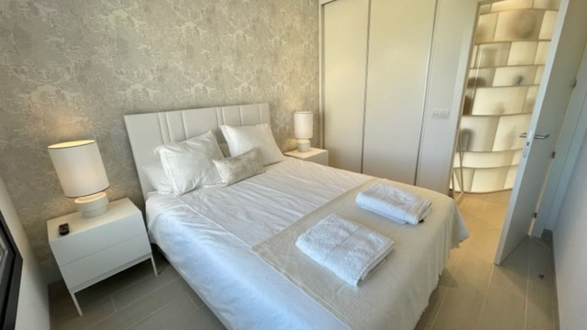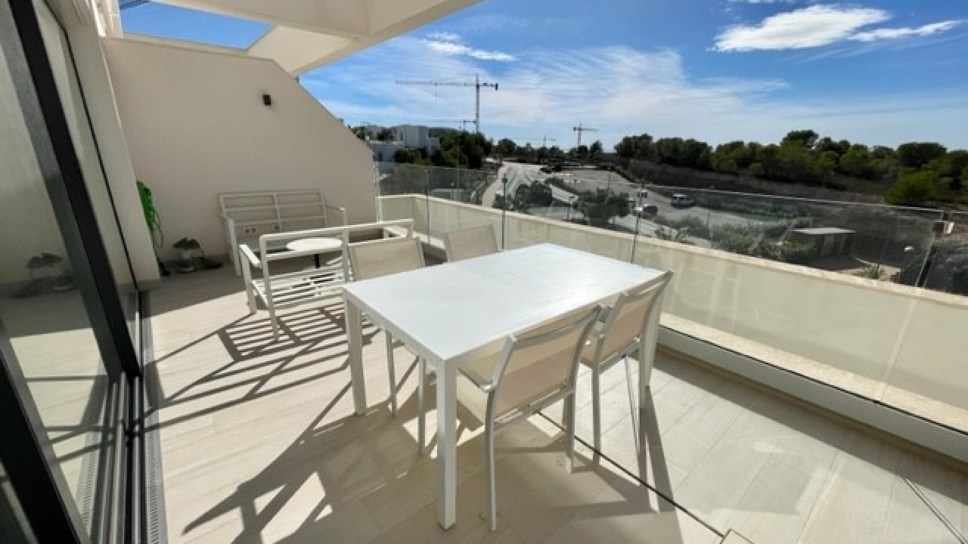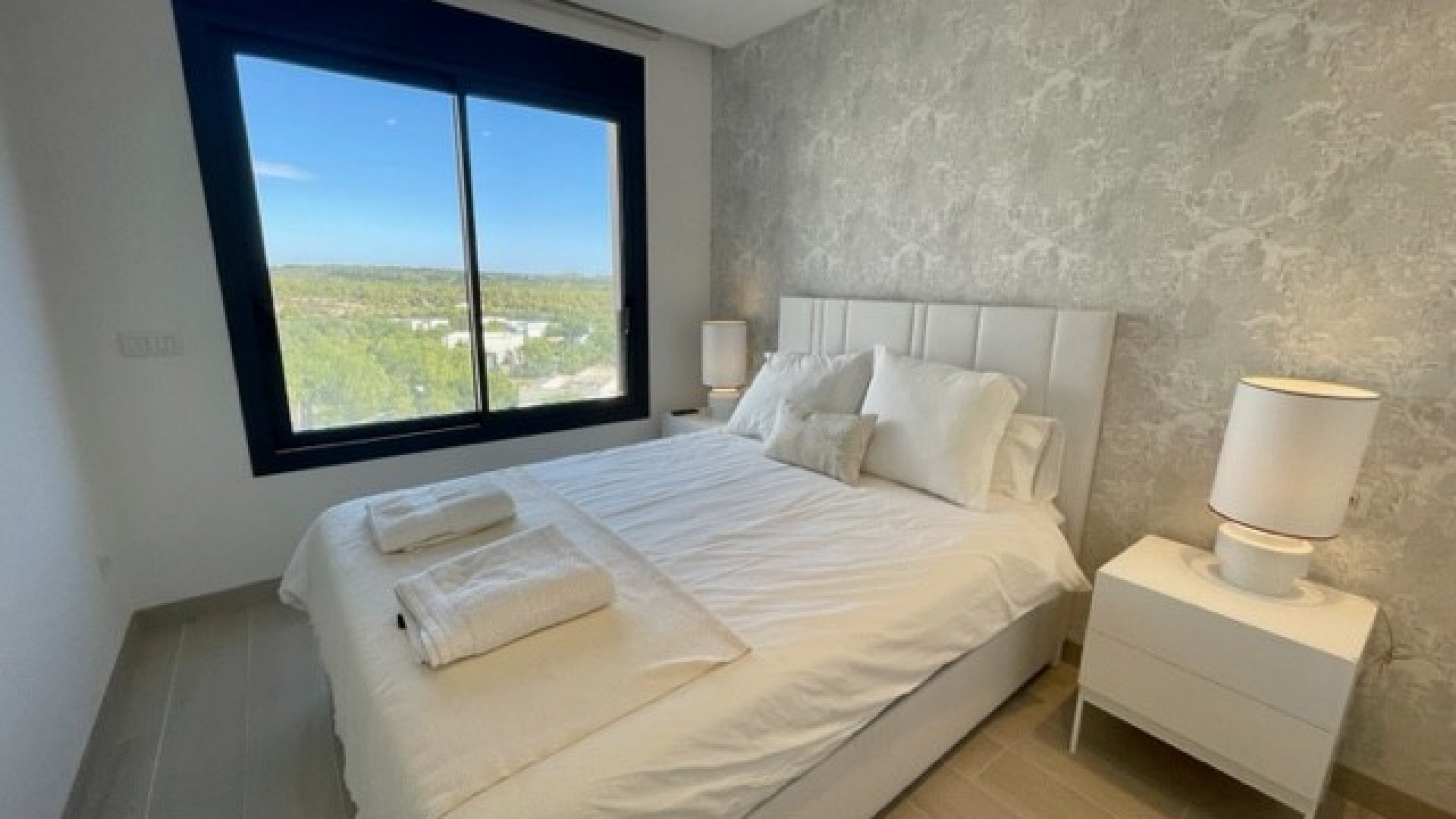 Dieses nach Südwesten ausgerichtete Apartment mit zwei Schlafzimmern im zweiten Stock des Las Colinas Golf & Country Club befindet sich in einer exquisiten Lage an der Grenze zu San Miguel de Salinas, nur 15 Autominuten von den atemberaubenden Stränden der Costa Blanca Süd entfernt. Dieses moderne, erst vor 2 Jahren erbaute Apartment liegt in einem der renommiertesten Golfresorts der Gegend und bietet einen ruhigen Lebensstil inmitten natürlicher Schönheit. Das helle Wohn-/Esszimmer verfügt über wandhohe Glasschiebetüren, die nahtlos auf eine unglaubliche Terrasse mit ruhigem Waldblick führen. Die offene Einbauküche ist stilvoll gestaltet und es gibt einen Hauswirtschaftsraum für zusätzlichen Komfort. Beide Doppelschlafzimmer sind mit Einbauschränken und elektrischen Jalousien ausgestattet und das Hauptschlafzimmer verfügt über ein eigenes Bad. Das Familienduschbad und das Bad sind beide mit luxuriöser Fußbodenheizung ausgestattet. Der Block ist über einen Aufzug erreichbar und Teil einer Anlage mit Videoüberwachung, wunderschön angelegten Gemeinschaftsgärten und einem eleganten Pool im asiatischen Stil. Zu den weiteren Ausstattungsmerkmalen gehören eine Tiefgarage, ein privater Abstellraum, ein hochmodernes Hausautomationssystem und ein Alarm für Ihre Sicherheit. Dies ist eine außergewöhnliche Gelegenheit, ein luxuriöses Haus in einer der begehrtesten Lagen an der Costa Blanca Süd zu besitzen.