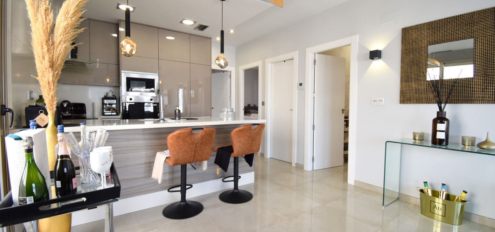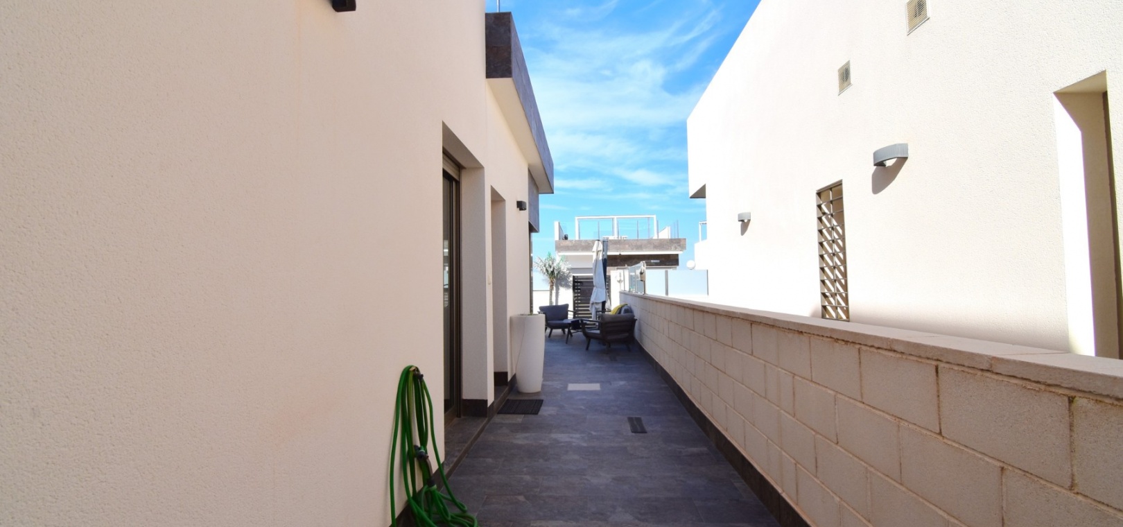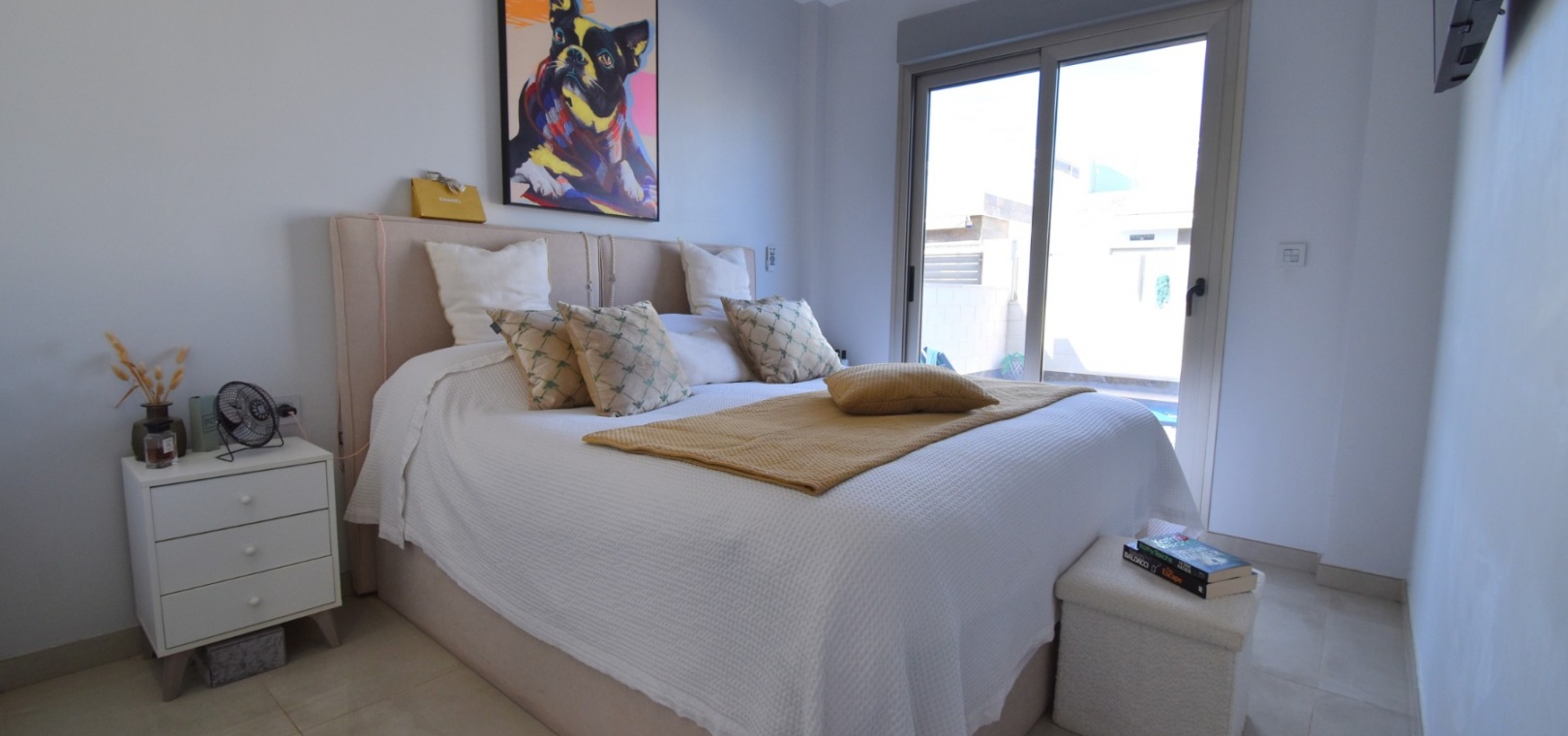 Diese atemberaubende, nach Südosten ausgerichtete, freistehende Villa mit drei Schlafzimmern in Villamartin befindet sich in der begehrten Gegend Orihuela Costa an der Costa Blanca Süd. Diese Villa liegt nur 10 Gehminuten von den nächsten Geschäften und eine kurze Fahrt vom beliebten Einkaufszentrum La Zenia Boulevard entfernt und bietet sowohl Bequemlichkeit als auch Komfort. Die atemberaubenden Strände der Gegend sind nur 10 Autominuten entfernt und bieten die ideale Umgebung für einen entspannten mediterranen Lebensstil. Die Villa verfügt über drei geräumige Schlafzimmer, jedes mit Klimaanlage und Einbauschränken, die das ganze Jahr über Komfort gewährleisten. Das Hauptschlafzimmer verfügt außerdem über einen Deckenventilator für zusätzlichen Komfort. Die offene, voll ausgestattete Küche ist modern und praktisch und geht nahtlos in das Wohnzimmer über, das mit einer Klimaanlage ausgestattet ist. Darüber hinaus trägt ein separater Hauswirtschaftsraum zur Funktionalität des Raums bei. Der Außenbereich ist ebenso beeindruckend und verfügt über einen pflegeleichten gefliesten Garten, der einen privaten Swimmingpool umgibt. Der Sitzbereich im Freien überblickt den Pool und bietet den perfekten Platz, um das warme mediterrane Wetter zu genießen. Mit einem 200 m² großen Grundstück bietet diese Villa reichlich Platz zum Entspannen und Unterhalten. In erstklassiger Lage gelegen, bietet diese Villa eine außergewöhnliche Gelegenheit zum ganzjährigen Wohnen oder einen perfekten Urlaubsort in Orihuela Costa.