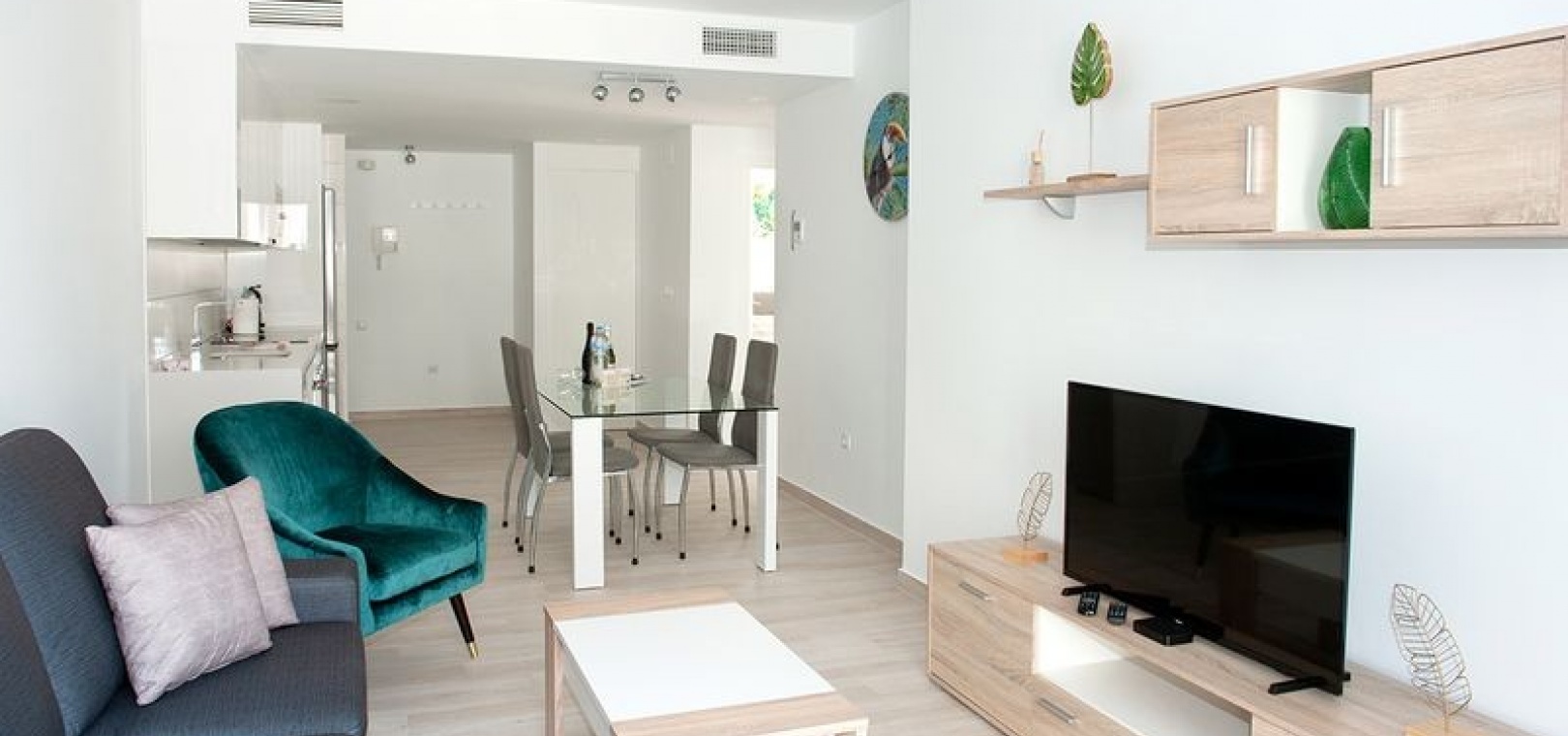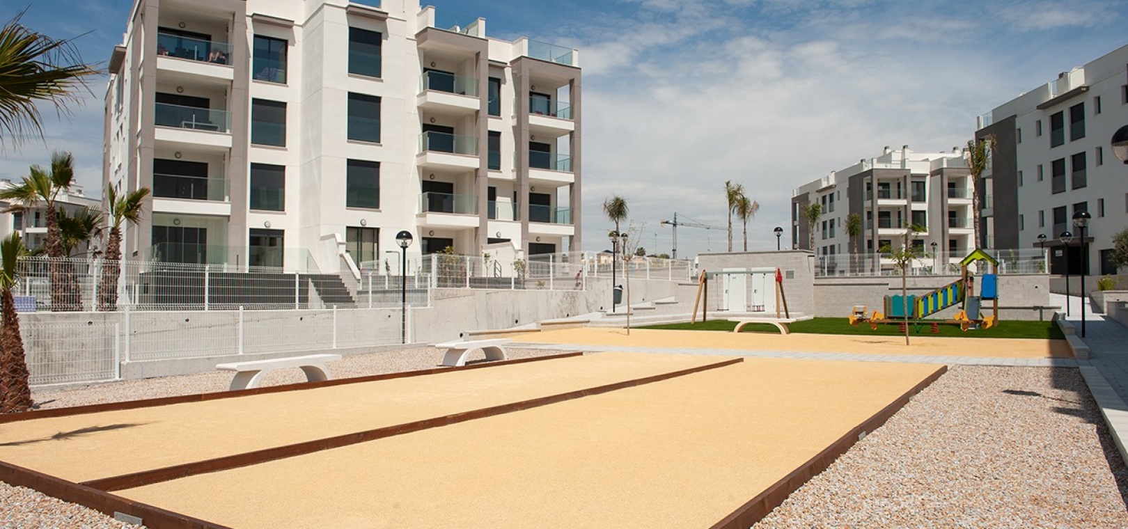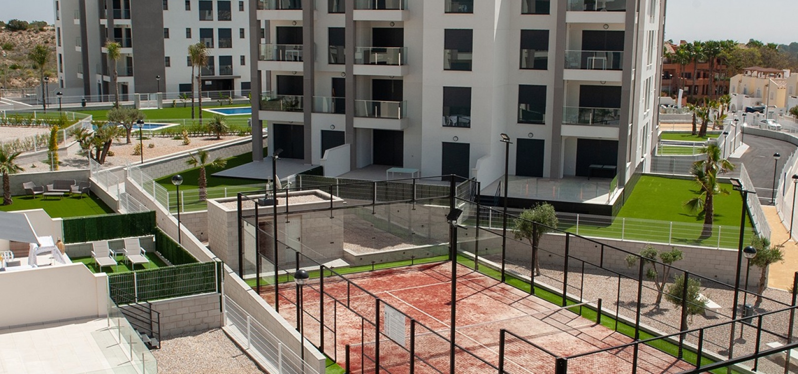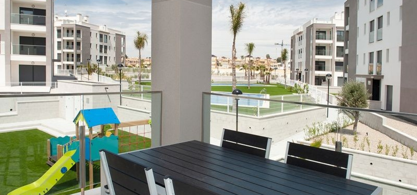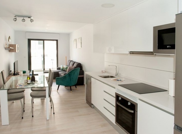 Dieses wunderschöne Apartment mit zwei Schlafzimmern im 1. Stock in Villamartin befindet sich in der begehrten Gegend Orihuela Costa an der Costa Blanca Süd. Dieses moderne Apartment wurde 2018 erbaut und bietet einen stilvollen und komfortablen Wohnraum, der sich sowohl für den Urlaub als auch für das ganze Jahr eignet. Das Anwesen verfügt über zwei geräumige Schlafzimmer, beide mit Einbauschränken und Klimaanlage. Das Hauptschlafzimmer verfügt über ein eigenes Duschbad, während das zweite Duschbad Gästen oder der Familie zur Verfügung steht. Die offene, voll ausgestattete Küche geht nahtlos in den hellen Wohn- und Essbereich über, der für zusätzlichen Komfort auch über eine Klimaanlage verfügt. Ein separater Hauswirtschaftsraum bietet zusätzlichen Komfort. Von der privaten Terrasse genießen Sie einen atemberaubenden Blick auf zwei der wunderschön gepflegten Gemeinschaftspools und die umliegenden Gärten. Der Komplex verfügt über fantastische Einrichtungen, darunter drei große Gemeinschaftspools, einen Kinderspielplatz, Petanque-Plätze und einen Padel-Platz. Zu diesem Apartment gehört auch eine private Tiefgarage, und das Gebäude ist für einen einfachen Zugang mit einem Aufzug erreichbar. Dank der idealen Lage sind es nur zehn Gehminuten zu den nächsten Supermärkten, Bars und Restaurants, während die wunderschönen Strände von Orihuela Costa nur fünf Autominuten entfernt sind.