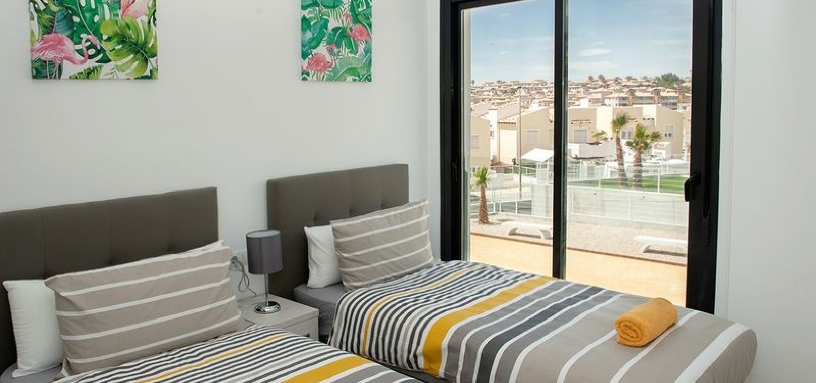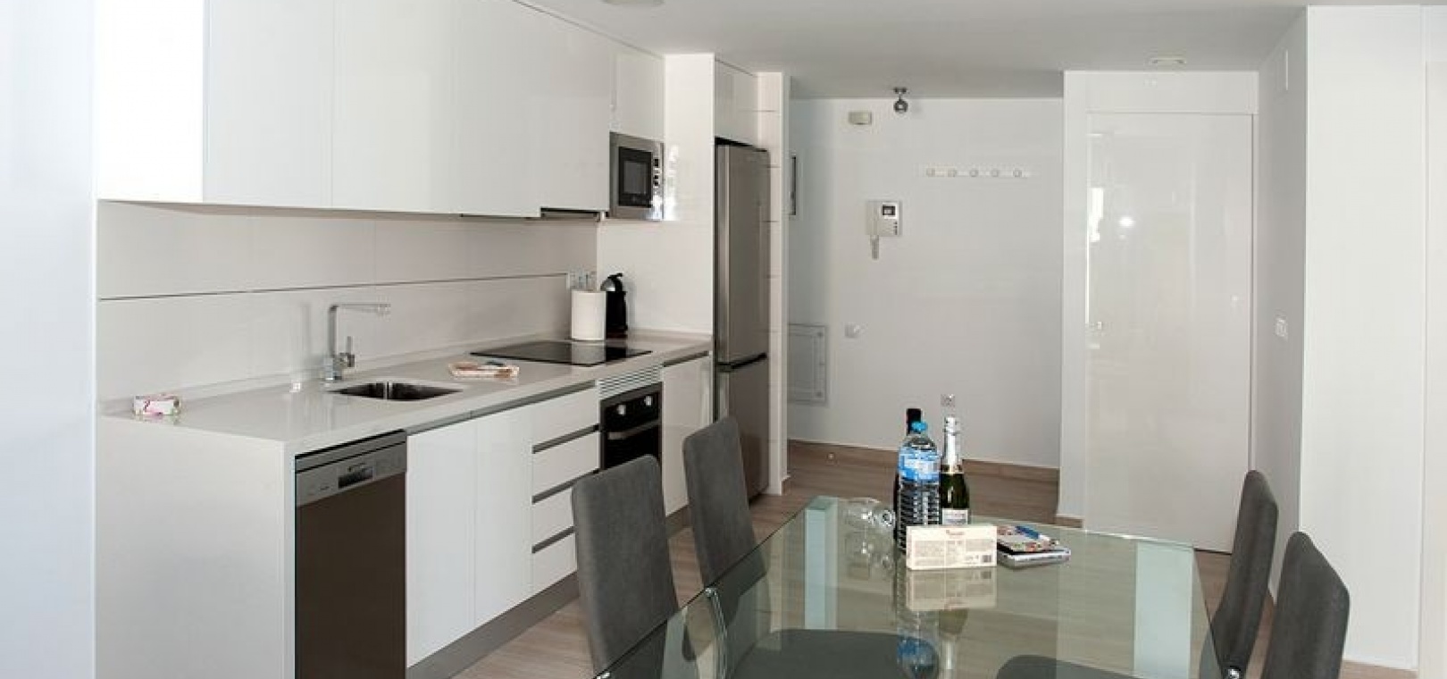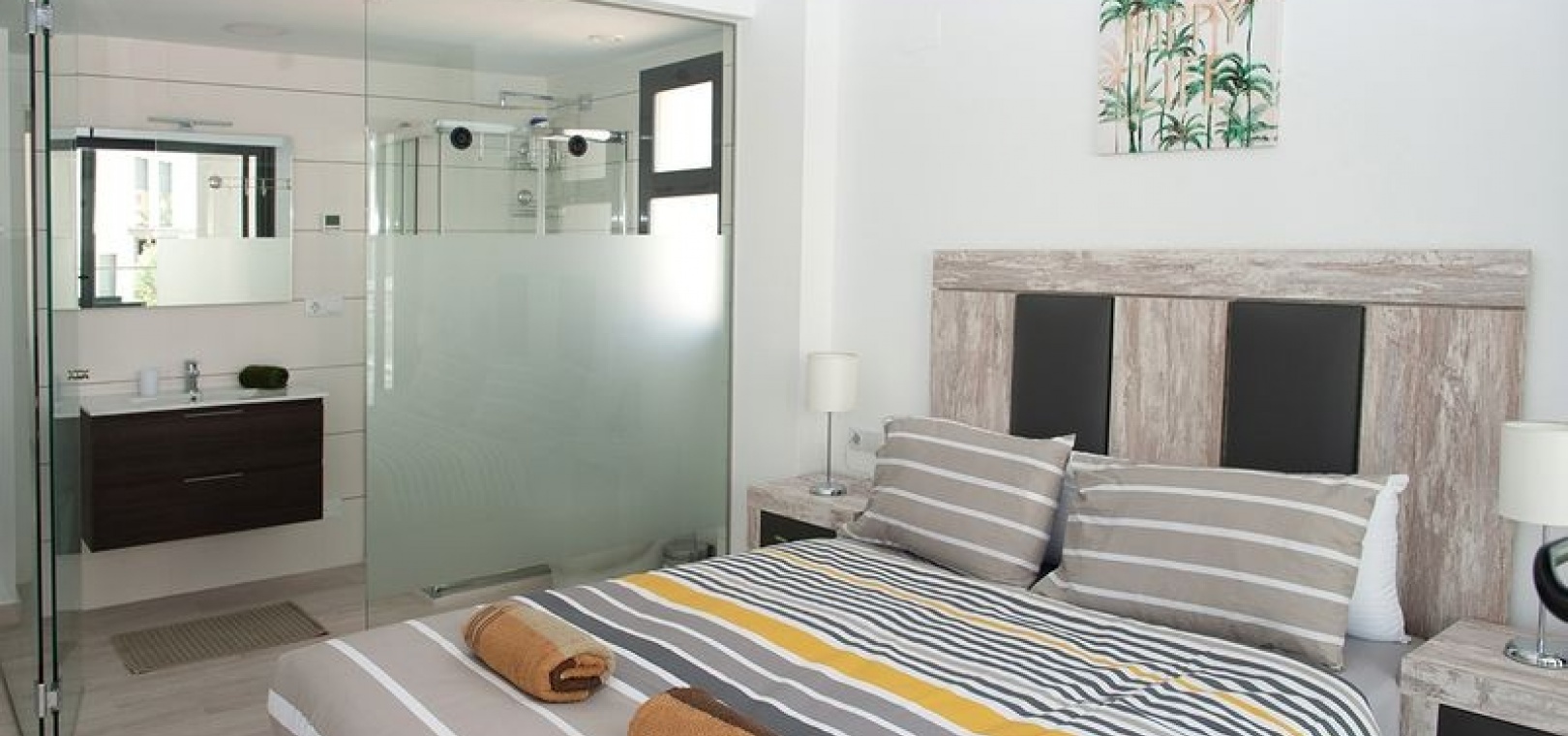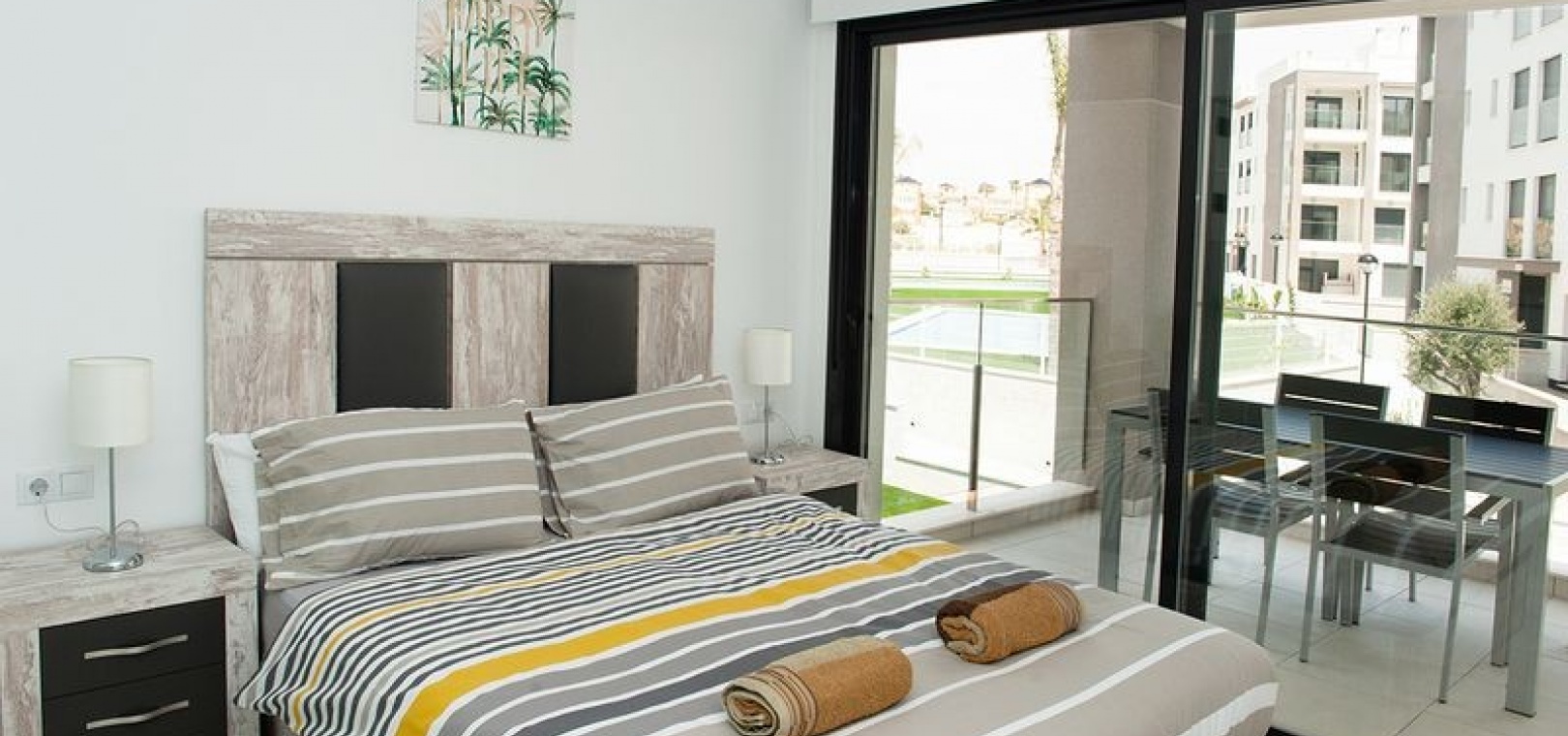 Dieses wunderschöne Apartment mit zwei Schlafzimmern im 1. Stock in Villamartin befindet sich in der begehrten Gegend Orihuela Costa an der Costa Blanca Süd. Dieses moderne Apartment wurde 2018 erbaut und bietet einen stilvollen und komfortablen Wohnraum, der sich sowohl für den Urlaub als auch für das ganze Jahr eignet. Das Anwesen verfügt über zwei geräumige Schlafzimmer, beide mit Einbauschränken und Klimaanlage. Das Hauptschlafzimmer verfügt über ein eigenes Duschbad, während das zweite Duschbad Gästen oder der Familie zur Verfügung steht. Die offene, voll ausgestattete Küche geht nahtlos in den hellen Wohn- und Essbereich über, der für zusätzlichen Komfort auch über eine Klimaanlage verfügt. Ein separater Hauswirtschaftsraum bietet zusätzlichen Komfort. Von der privaten Terrasse genießen Sie einen atemberaubenden Blick auf zwei der wunderschön gepflegten Gemeinschaftspools und die umliegenden Gärten. Der Komplex verfügt über fantastische Einrichtungen, darunter drei große Gemeinschaftspools, einen Kinderspielplatz, Petanque-Plätze und einen Padel-Platz. Zu diesem Apartment gehört auch eine private Tiefgarage, und das Gebäude ist für einen einfachen Zugang mit einem Aufzug erreichbar. Dank der idealen Lage sind es nur zehn Gehminuten zu den nächsten Supermärkten, Bars und Restaurants, während die wunderschönen Strände von Orihuela Costa nur fünf Autominuten entfernt sind.