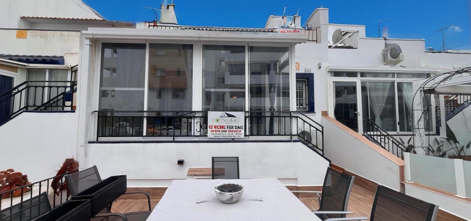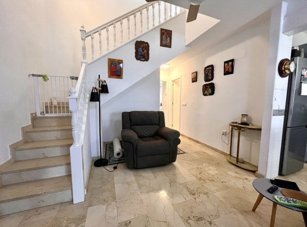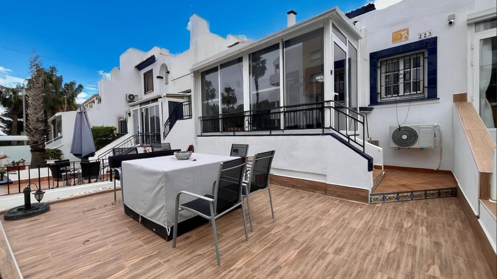 Dieses atemberaubende Stadthaus mit 3 Schlafzimmern und 2 Bädern in Rioja IV, Villamartin, ist ideal gelegen, nur einen kurzen Spaziergang vom lebhaften Geschäftszentrum La Fuente entfernt, wo Sie eine fantastische Auswahl an Restaurants, Bars, Geschäften und einem Supermarkt finden. Dieses Haus bietet sowohl Komfort als auch Charme. Dieses begehrte Anwesen wird von seinen derzeitigen Eigentümern liebevoll instand gehalten und geschmackvoll modernisiert. Es verfügt über eine modernisierte Küche und ein wunderschön renoviertes Badezimmer. Im Erdgeschoss empfängt Sie ein heller und geräumiger Wohn- und Essbereich, der nahtlos in eine offene Küche mit praktischem Hauswirtschaftsraum übergeht. Zwei großzügige Schlafzimmer mit Einbauschränken bieten Komfort und Funktionalität, während das renovierte Familienbadezimmer einen Hauch zeitgenössischer Eleganz verleiht.