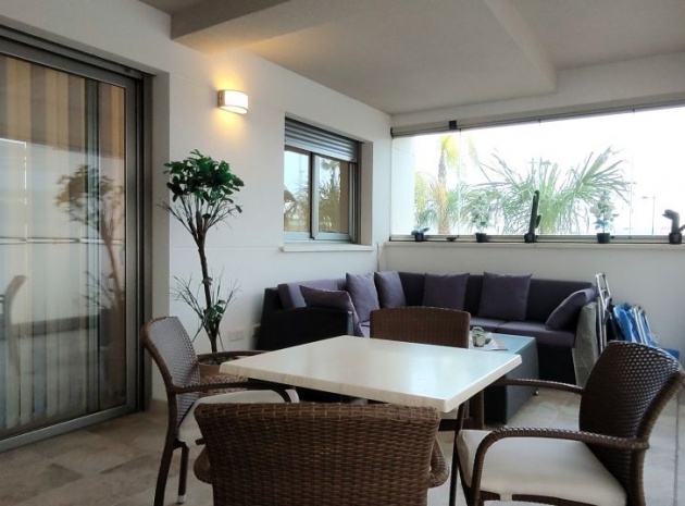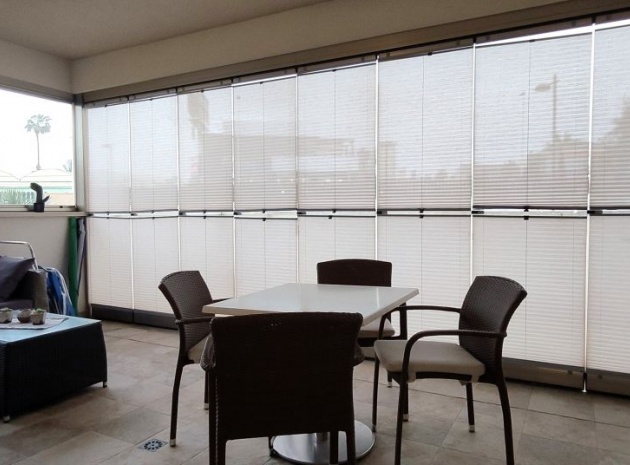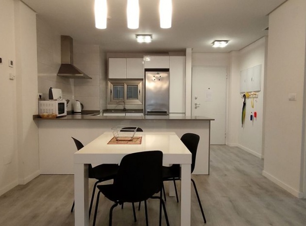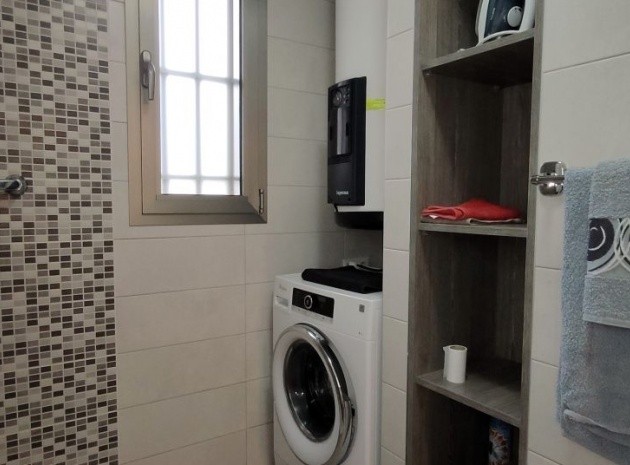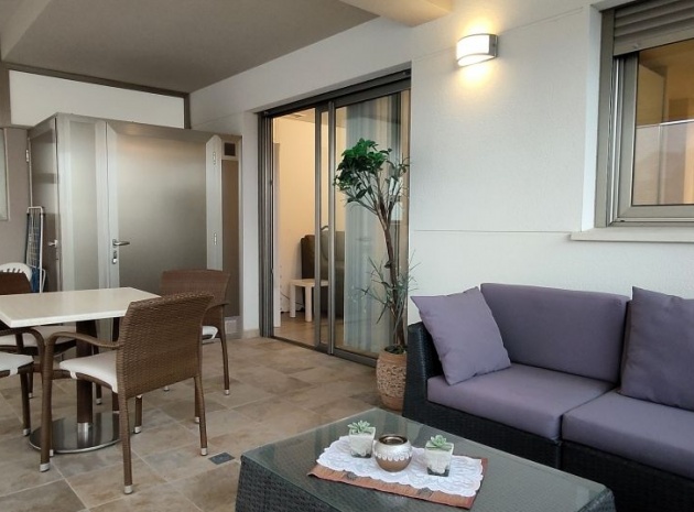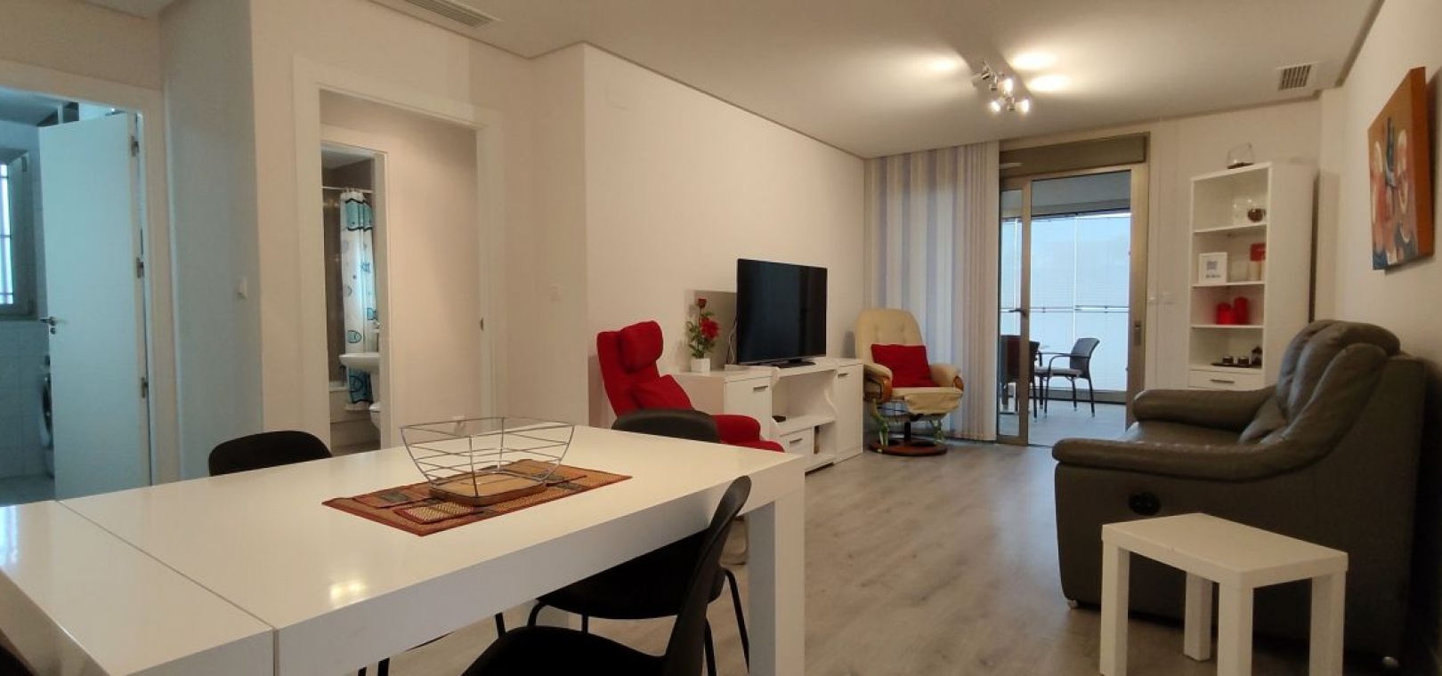 Moderne Erdgeschosswohnung im ALTIOS DE MEDITERRANEO – LOS DOLSES, Costa Blanca Süd Erleben Sie ein außergewöhnliches Wohnerlebnis in diesem geräumigen und modernen Apartment, das perfekt für Personen mit eingeschränkter Mobilität konzipiert ist. Dieses rollstuhlgerechte Anwesen liegt im lebhaften Viertel Los Dolses an der Costa Blanca Süd und bietet unvergleichlichen Komfort und Luxus. Die Wohnung verfügt über zwei gemütliche Schlafzimmer mit Einbauschränken und zwei elegante Badezimmer, darunter eine Master-Suite. Der weitläufige offene Wohnbereich ist das Herzstück des Hauses und nahtlos mit einer verglasten, multifunktionalen Terrasse verbunden, die den Wohnraum erweitert und die Wohnung noch geräumiger und luftiger erscheinen lässt – perfekt zum Entspannen oder Unterhalten. Die Wohnung wurde mit Blick auf eine einfache Zugänglichkeit konzipiert und ist über eine Rampe erreichbar, was sie ideal für Personen mit eingeschränkter Mobilität macht. Die verglaste Terrasse verleiht dem Wohnbereich eine weitere Dimension und bietet einen Außenbereich, der das ganze Jahr über genutzt werden kann und gleichzeitig das Gesamtgefühl von Raum und Licht verstärkt. In einer sicheren Wohnanlage gelegen, genießen die Bewohner die Ruhe, die ein privater Parkplatz direkt neben dem Gebäudeeingang mit sich bringt. Der Komplex bietet fantastische Annehmlichkeiten vor Ort, darunter einen Sommerpool, einen luxuriösen Wellnessbereich mit beheiztem Pool, Sauna und voll ausgestattetem Fitnessstudio. Diese Wohnung wird voll möbliert angeboten und verfügt über eine Klimaanlage mit Luftkanälen. Sie können sofort einziehen. Abgesehen von der Immobilie selbst finden Sie eine erstklassige Lage, die auf Schritt und Tritt Komfort bietet. Lokale Geschäfte, Bars und Restaurants sind nur einen kurzen Spaziergang entfernt, während Golfbegeisterte den 1 km entfernten Villamartin Golf and Plaza zu schätzen wissen. Strandliebhaber werden die Nähe zum nur 3 km entfernten Strand La Zenia zu schätzen wissen. Verpassen Sie nicht die Chance, dieses moderne Traumhaus in perfekter Küstenlage zu besitzen, das sowohl Ihren Komfort- als auch Ihren Zugänglichkeitsanforderungen gerecht wird.