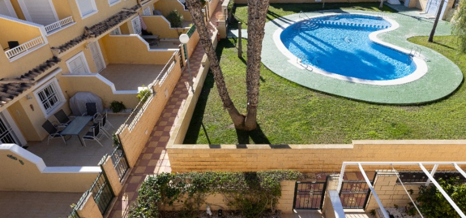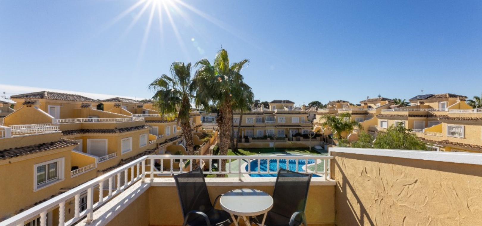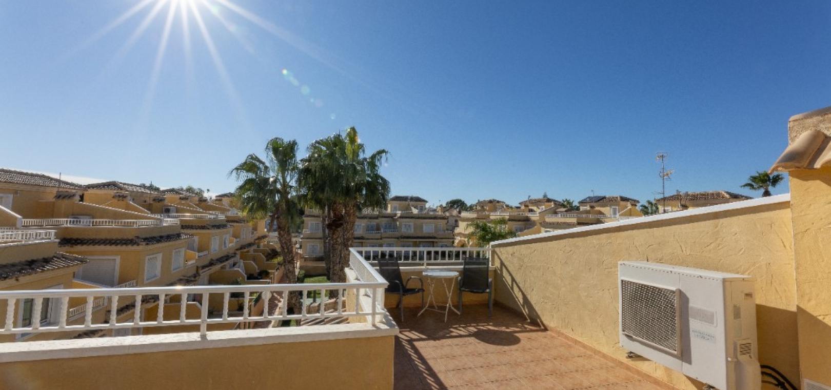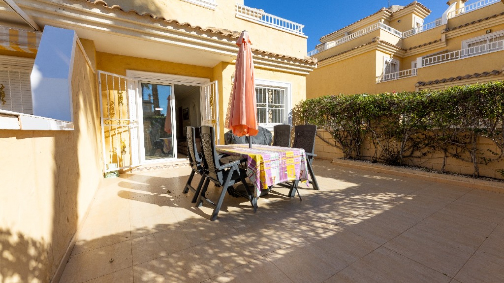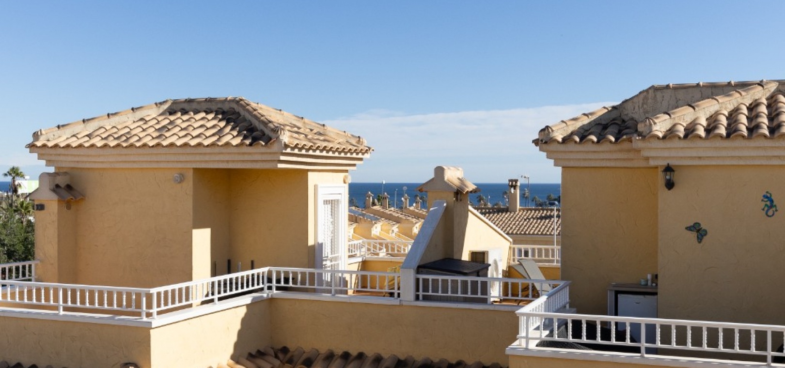 Reihenhaus in Mariblanca, Los Altos, Punta Prima, Spanien zu verkaufen. Wir bieten Ihnen dieses atemberaubende Reihenhaus zum Verkauf an. Es befindet sich in der geschlossenen Wohnanlage Mariblanca, nur wenige Gehminuten von Einkaufszentren, Bars, Restaurants und den Sandstränden von Orihuela Costa entfernt, die viele Jahre in Folge für ihre Sauberkeit mit der Blauen Flagge ausgezeichnet wurden. Die Anlage bietet ihren Bewohnern einen schönen Gemeinschaftspool mit Grünflächen. Das Anwesen besteht aus 3 Schlafzimmern mit Einbauschränken, 2 Bädern (eines mit ebenerdiger Dusche und das zweite mit Badewanne), einem großen Wohn-Essbereich mit Zugang zu den Terrassen, einer separaten und ausgestatteten Küche mit Hauswirtschaftsraum und einem privaten Solarium mit Meerblick. Punta Prima ist ein wunderschöner spanischer Badeort an der südlichen Costa Blanca und weniger als 30 Minuten von zwei internationalen Flughäfen, Murcia und Alicante (Spanien), entfernt.