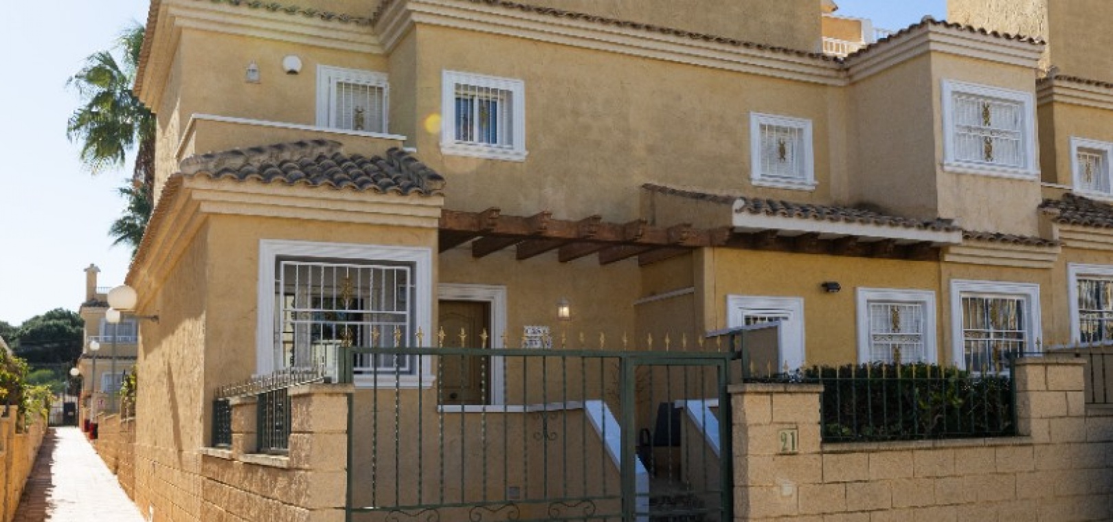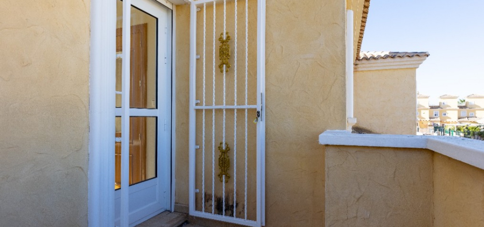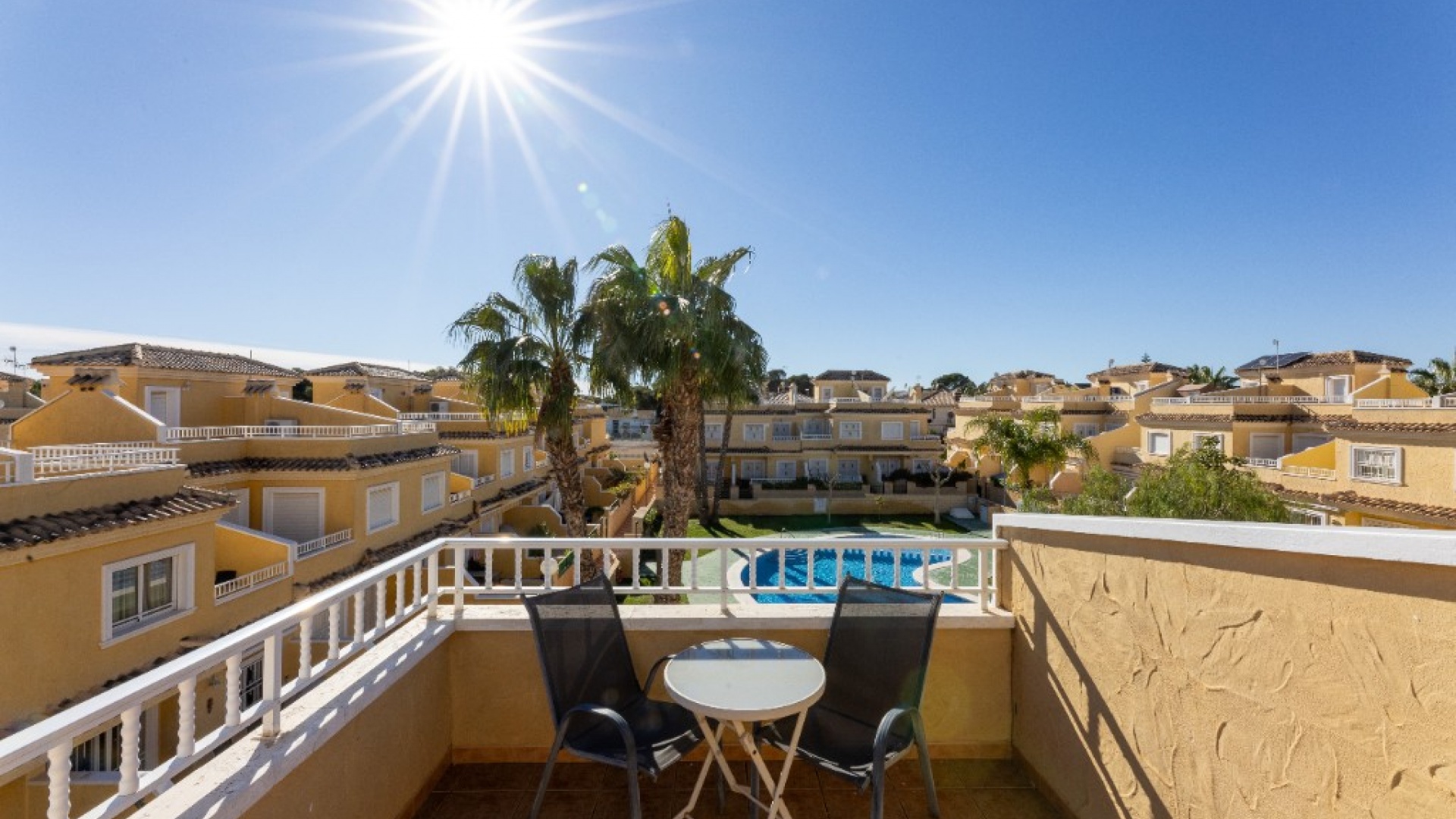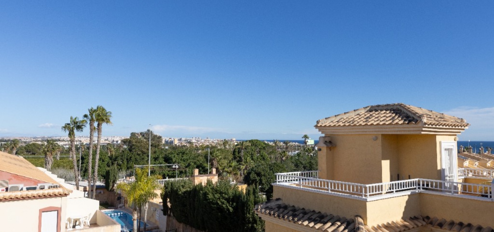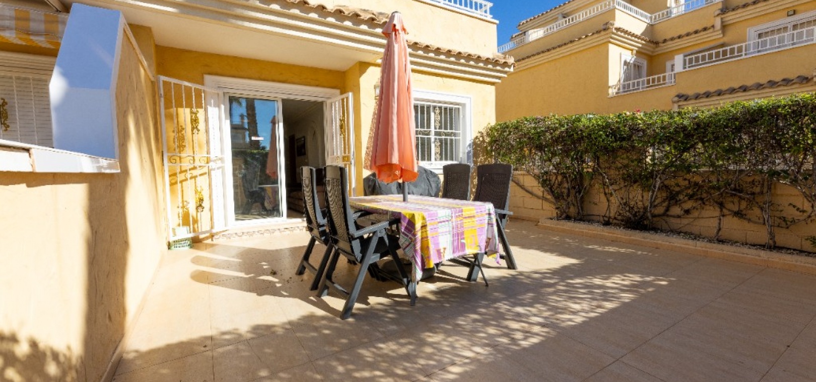 Reihenhaus in Mariblanca, Los Altos, Punta Prima, Spanien zu verkaufen. Wir bieten Ihnen dieses atemberaubende Reihenhaus zum Verkauf an. Es befindet sich in der geschlossenen Wohnanlage Mariblanca, nur wenige Gehminuten von Einkaufszentren, Bars, Restaurants und den Sandstränden von Orihuela Costa entfernt, die viele Jahre in Folge für ihre Sauberkeit mit der Blauen Flagge ausgezeichnet wurden. Die Anlage bietet ihren Bewohnern einen schönen Gemeinschaftspool mit Grünflächen. Das Anwesen besteht aus 3 Schlafzimmern mit Einbauschränken, 2 Bädern (eines mit ebenerdiger Dusche und das zweite mit Badewanne), einem großen Wohn-Essbereich mit Zugang zu den Terrassen, einer separaten und ausgestatteten Küche mit Hauswirtschaftsraum und einem privaten Solarium mit Meerblick. Punta Prima ist ein wunderschöner spanischer Badeort an der südlichen Costa Blanca und weniger als 30 Minuten von zwei internationalen Flughäfen, Murcia und Alicante (Spanien), entfernt.