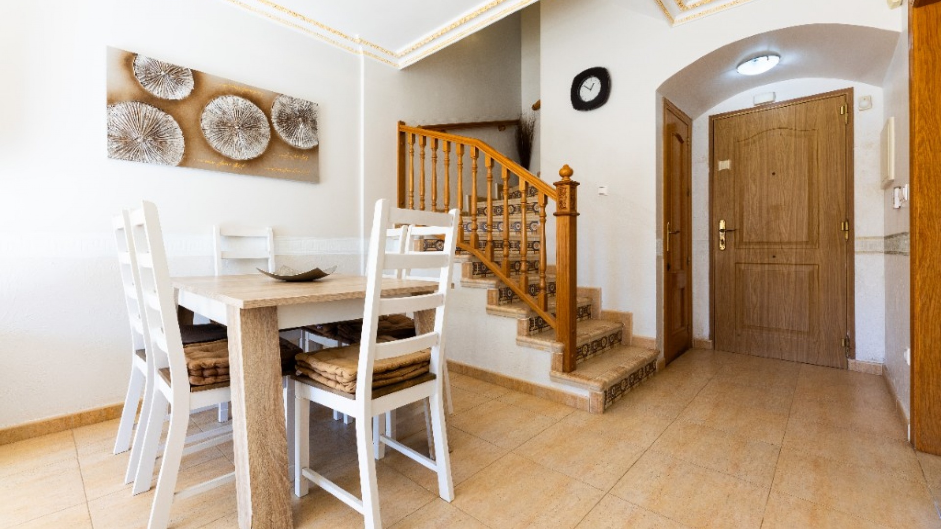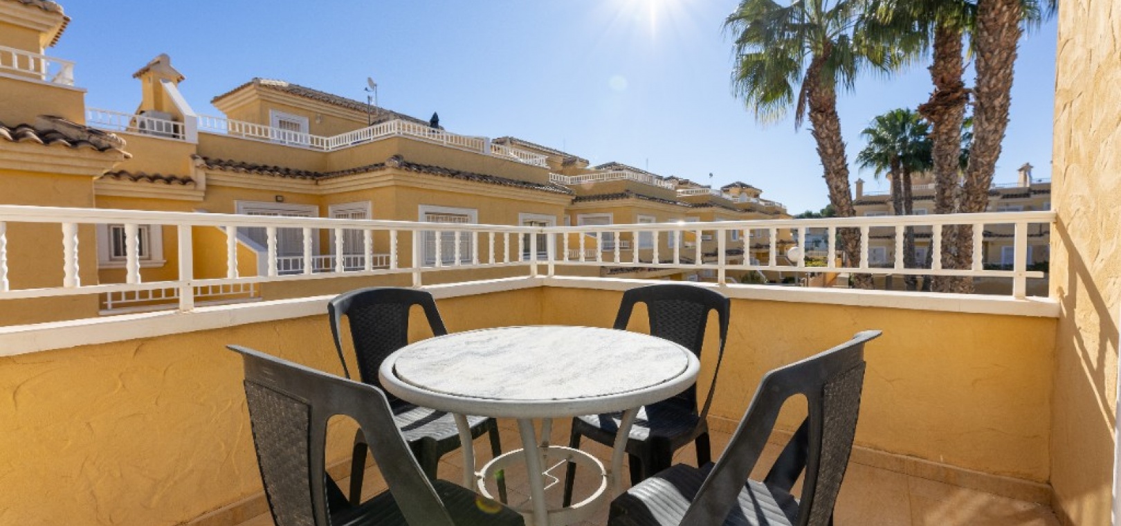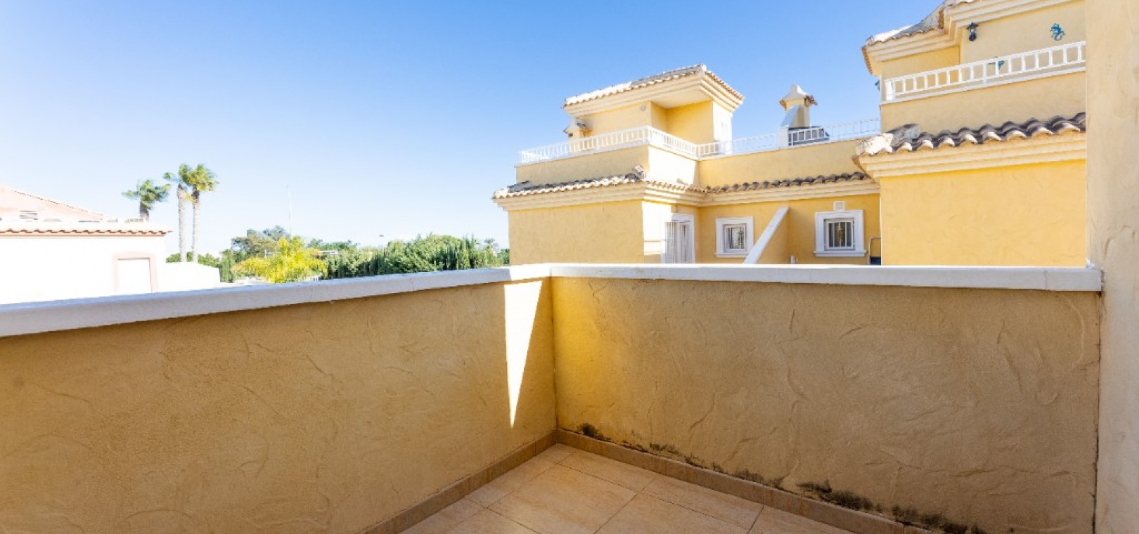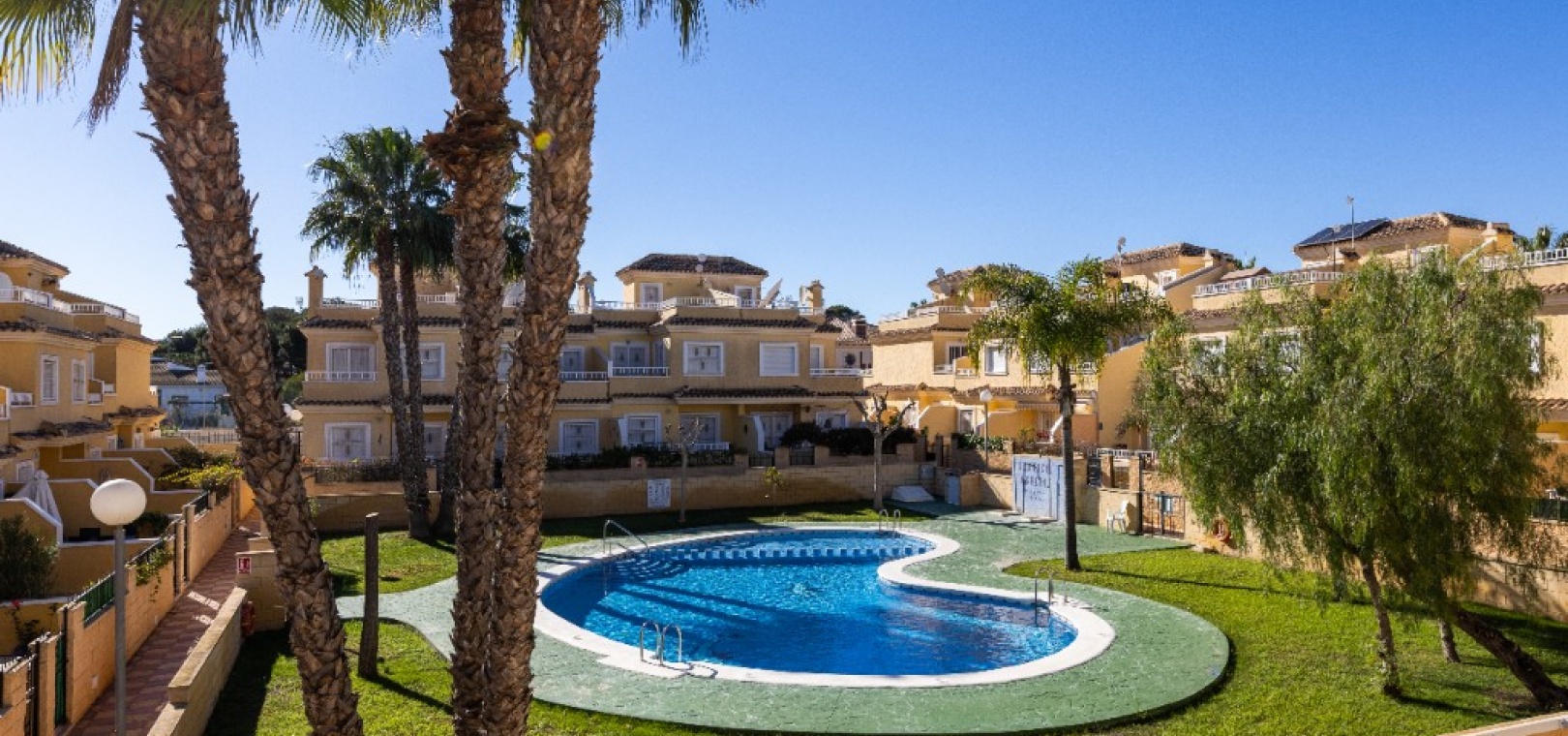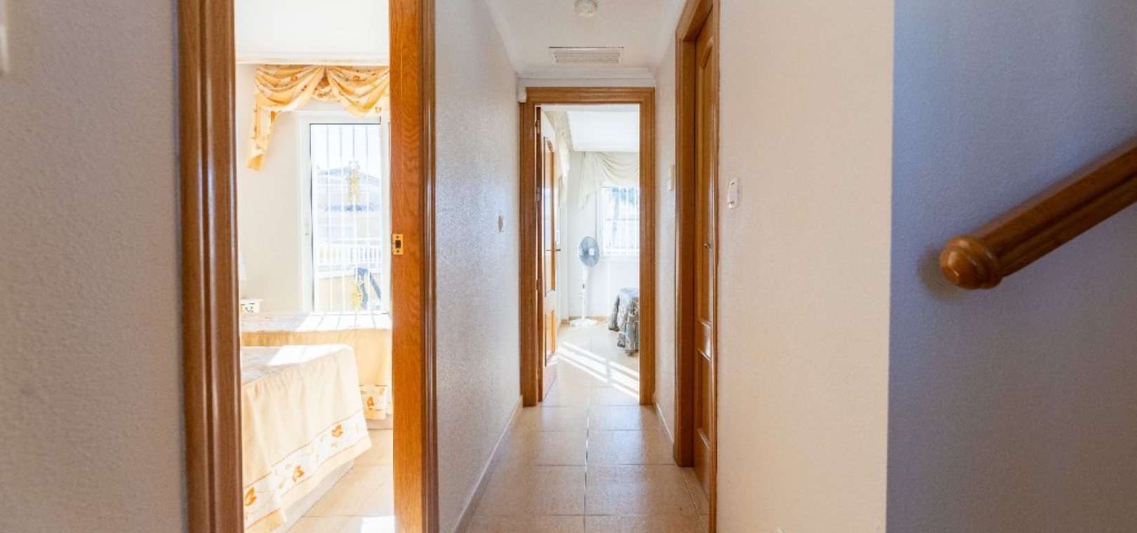 Reihenhaus in Mariblanca, Los Altos, Punta Prima, Spanien zu verkaufen. Wir bieten Ihnen dieses atemberaubende Reihenhaus zum Verkauf an. Es befindet sich in der geschlossenen Wohnanlage Mariblanca, nur wenige Gehminuten von Einkaufszentren, Bars, Restaurants und den Sandstränden von Orihuela Costa entfernt, die viele Jahre in Folge für ihre Sauberkeit mit der Blauen Flagge ausgezeichnet wurden. Die Anlage bietet ihren Bewohnern einen schönen Gemeinschaftspool mit Grünflächen. Das Anwesen besteht aus 3 Schlafzimmern mit Einbauschränken, 2 Bädern (eines mit ebenerdiger Dusche und das zweite mit Badewanne), einem großen Wohn-Essbereich mit Zugang zu den Terrassen, einer separaten und ausgestatteten Küche mit Hauswirtschaftsraum und einem privaten Solarium mit Meerblick. Punta Prima ist ein wunderschöner spanischer Badeort an der südlichen Costa Blanca und weniger als 30 Minuten von zwei internationalen Flughäfen, Murcia und Alicante (Spanien), entfernt.