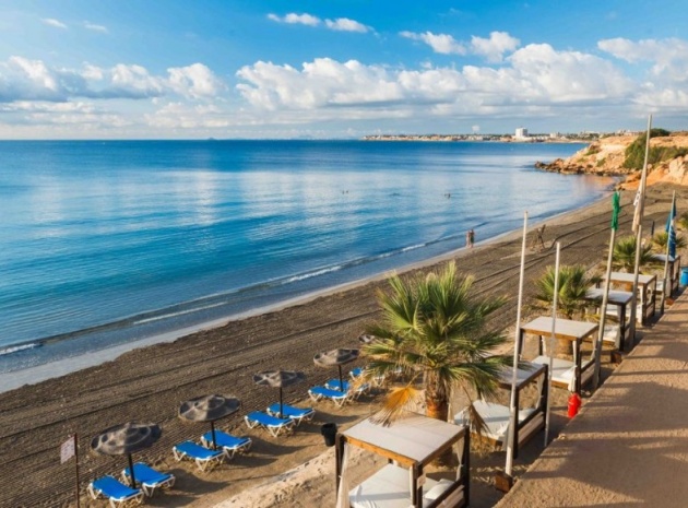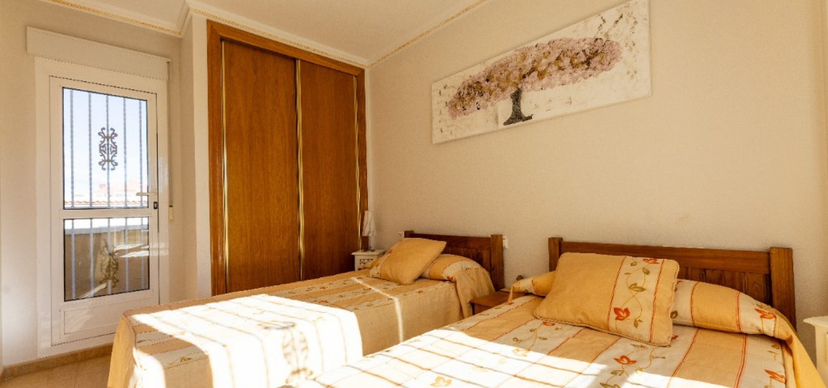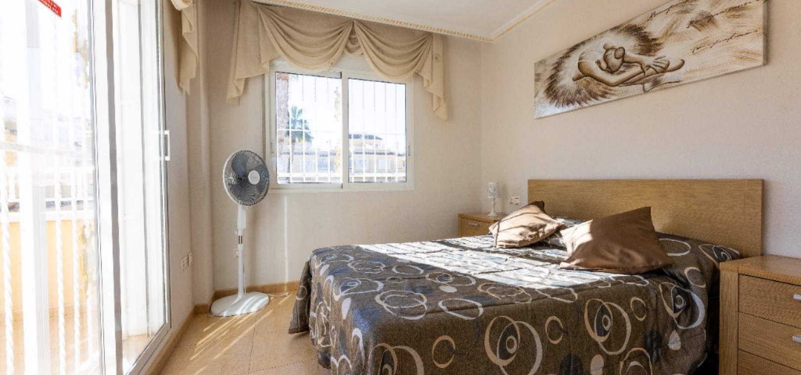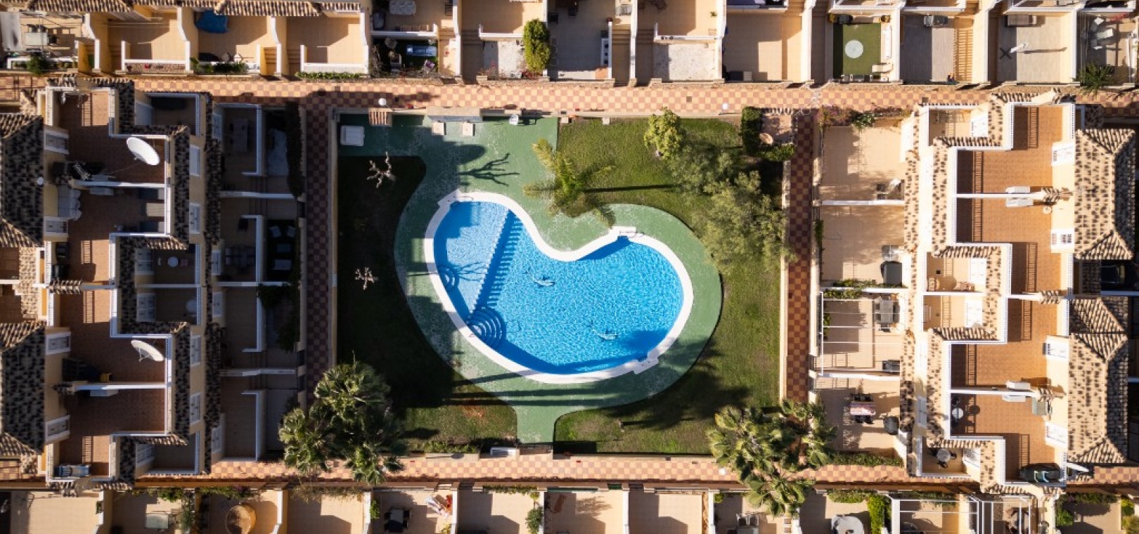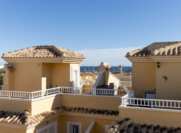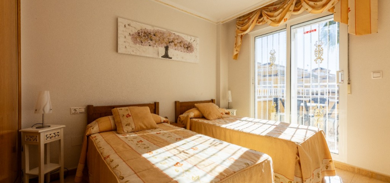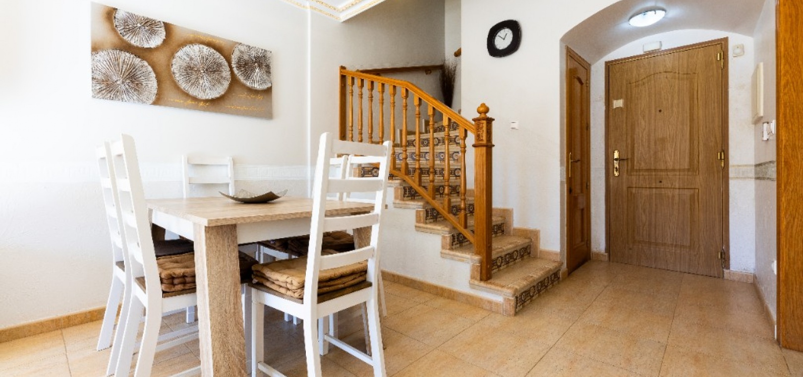Reihenhaus in Mariblanca, Los Altos, Punta Prima, Spanien zu verkaufen. Wir bieten Ihnen dieses atemberaubende Reihenhaus zum Verkauf an. Es befindet sich in der geschlossenen Wohnanlage Mariblanca, nur wenige Gehminuten von Einkaufszentren, Bars, Restaurants und den Sandstränden von Orihuela Costa entfernt, die viele Jahre in Folge für ihre Sauberkeit mit der Blauen Flagge ausgezeichnet wurden. Die Anlage bietet ihren Bewohnern einen schönen Gemeinschaftspool mit Grünflächen. Das Anwesen besteht aus 3 Schlafzimmern mit Einbauschränken, 2 Bädern (eines mit ebenerdiger Dusche und das zweite mit Badewanne), einem großen Wohn-Essbereich mit Zugang zu den Terrassen, einer separaten und ausgestatteten Küche mit Hauswirtschaftsraum und einem privaten Solarium mit Meerblick. Punta Prima ist ein wunderschöner spanischer Badeort an der südlichen Costa Blanca und weniger als 30 Minuten von zwei internationalen Flughäfen, Murcia und Alicante (Spanien), entfernt.
