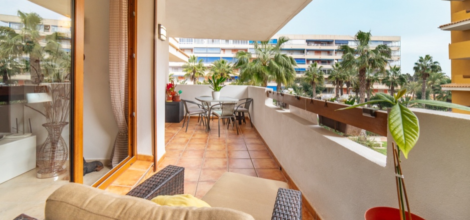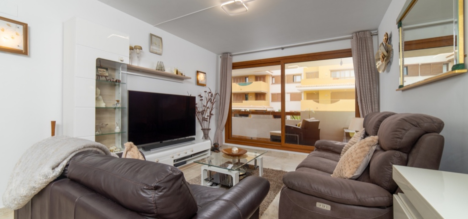 WOHNUNG ZU VERKAUFEN, WOHNGEBIET „LA ENTRADA“, PUNTA PRIMAN. Schöne Wohnung zu verkaufen, gelegen in der geschlossenen Wohnanlage „La Entrada“, mit 2 Schlafzimmern, 2 Bädern, Küche, Wohnzimmer und Terrasse. Der Strand von Punta Prima sowie lokale Annehmlichkeiten sind nur wenige Gehminuten entfernt. Eine Tiefgarage und ein Abstellraum sind im Preis inbegriffen. Punta Prima ist ein typisch spanischer Touristenort am Meer an der südlichen Costa Blanca und weniger als 30 Minuten von den beiden internationalen Flughäfen San Javier in Murcia und Alicante (Spanien) entfernt. Die Strände, die zu den saubersten in der Umgebung gehören und mit der Blauen Flagge ausgezeichnet wurden, werden durch eine wunderbare Auswahl an Geschäften, Cafés, Supermärkten, Bars und Restaurants ergänzt.