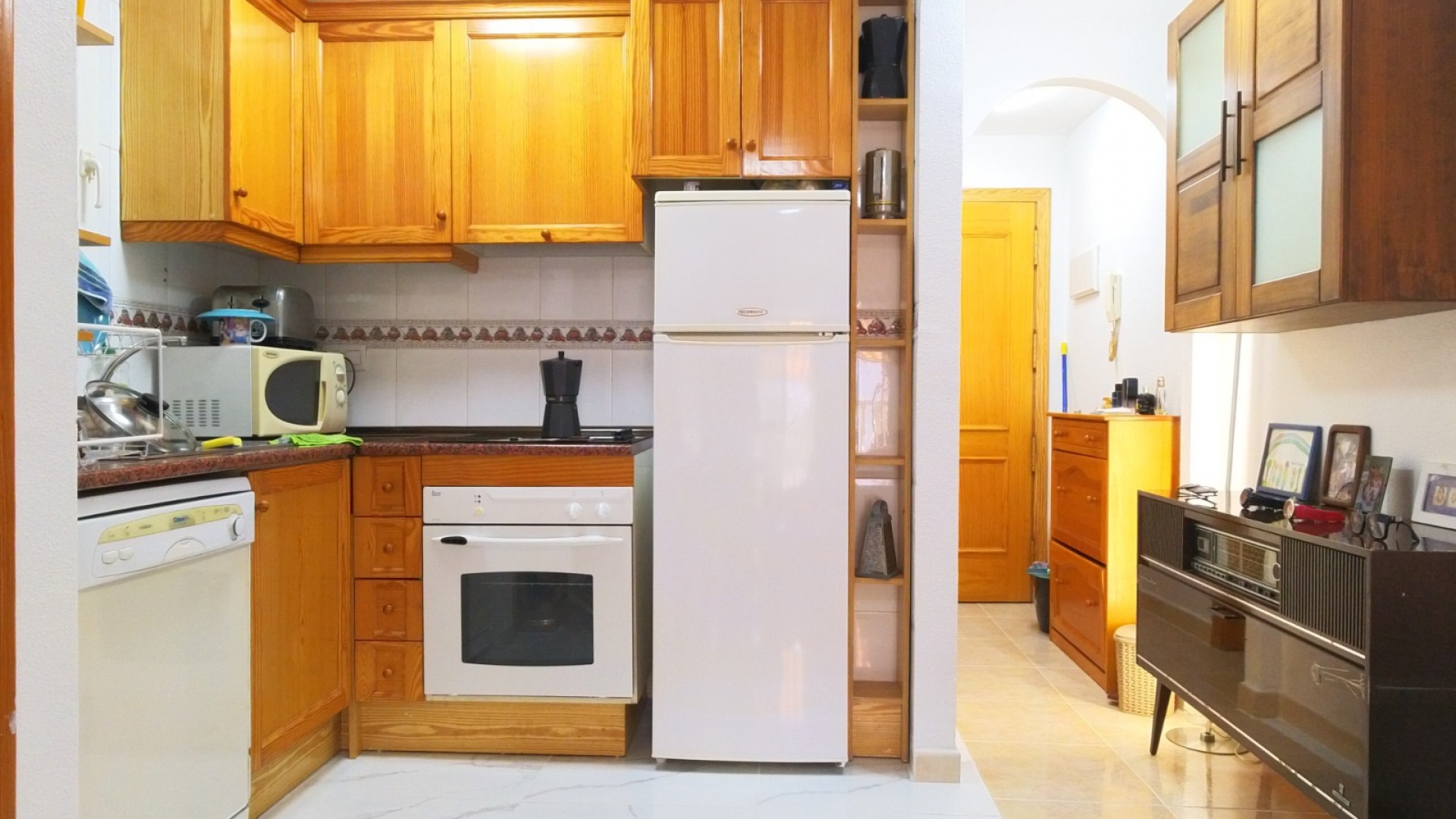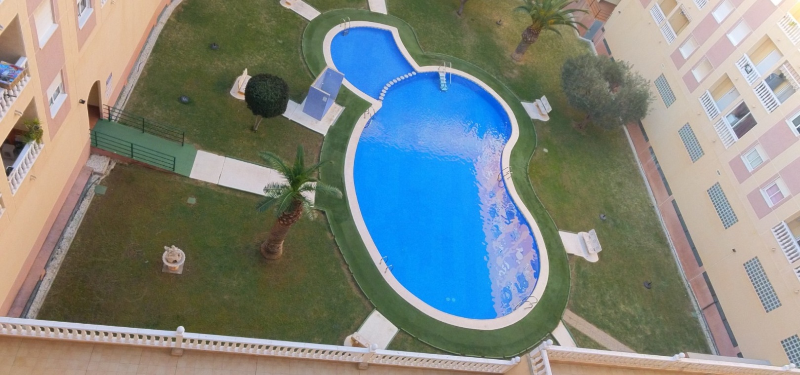 Diese helle Wohnung mit renoviertem Badezimmer befindet sich im 4. Stock einer modernen Wohnanlage aus dem Jahr 2001 und ist mit einem Aufzug ausgestattet. Sie verfügt über zwei große Schlafzimmer, ein Badezimmer, eine voll ausgestattete offene Küche und ein gemütliches Wohnzimmer mit Zugang zu einer nach Westen ausgerichteten Terrasse, von der aus Sie einen freien Blick auf die Salinen von Torrevieja genießen können. Für Ihren Komfort ist die Wohnung mit einer Klimaanlage ausgestattet.