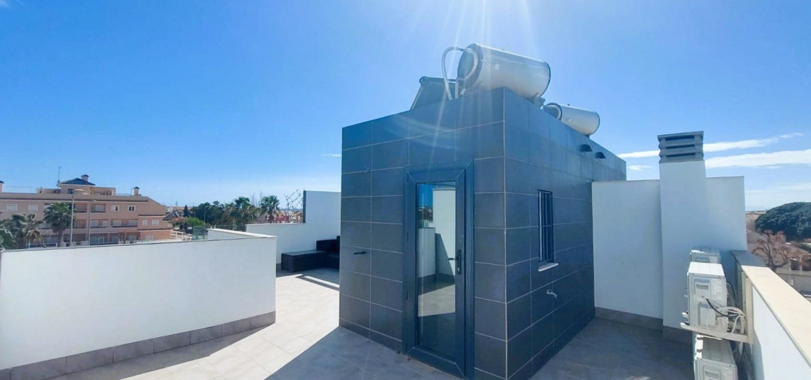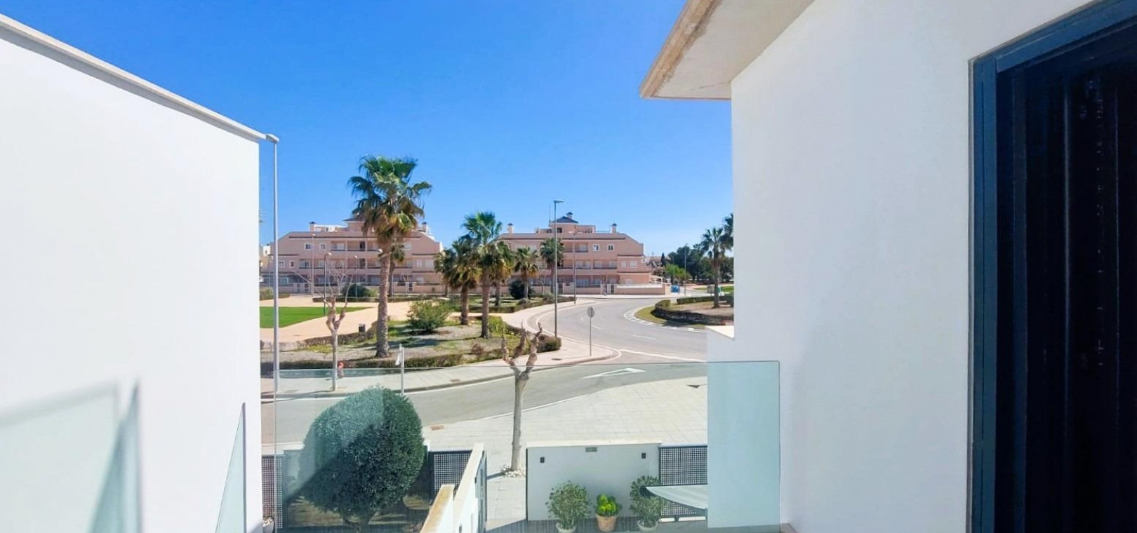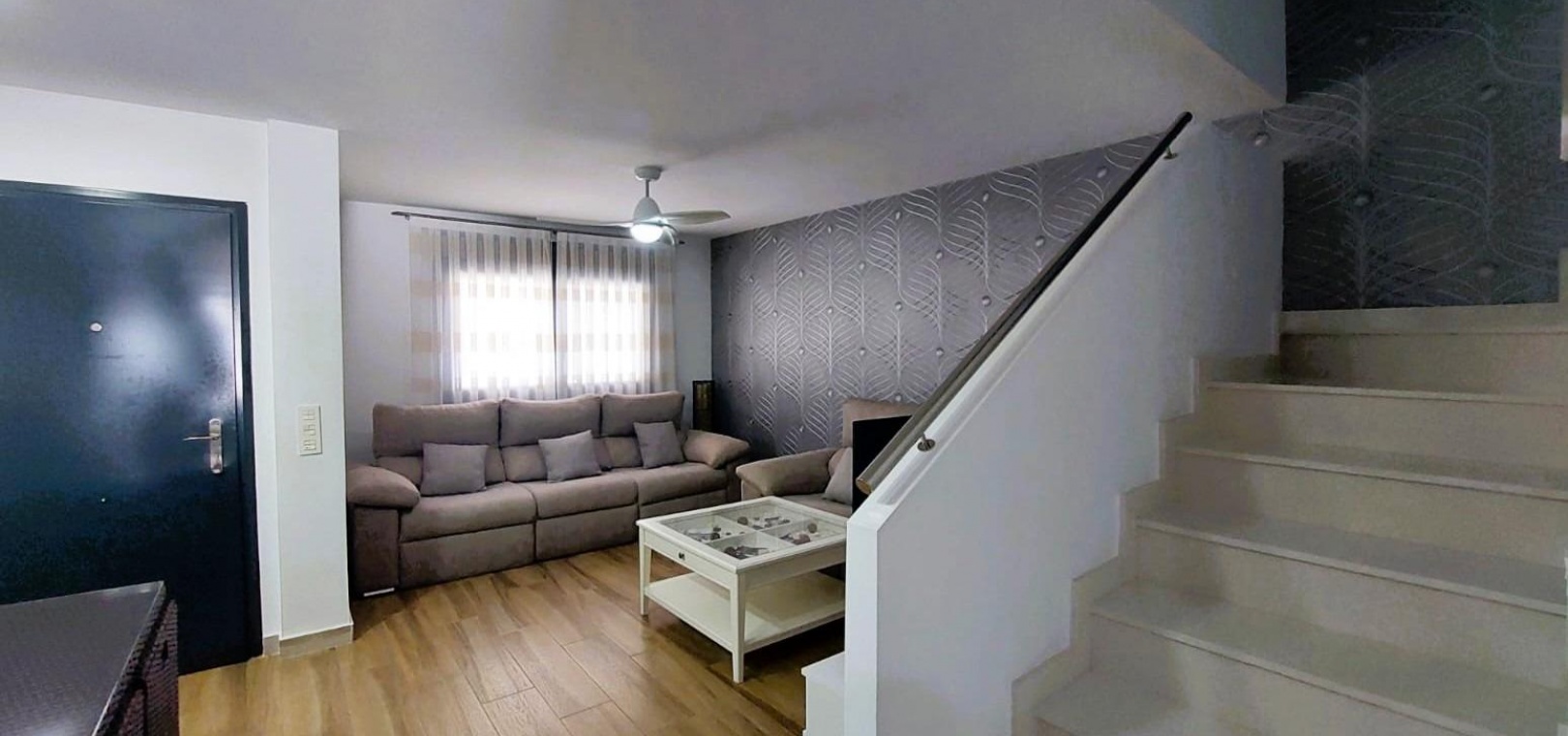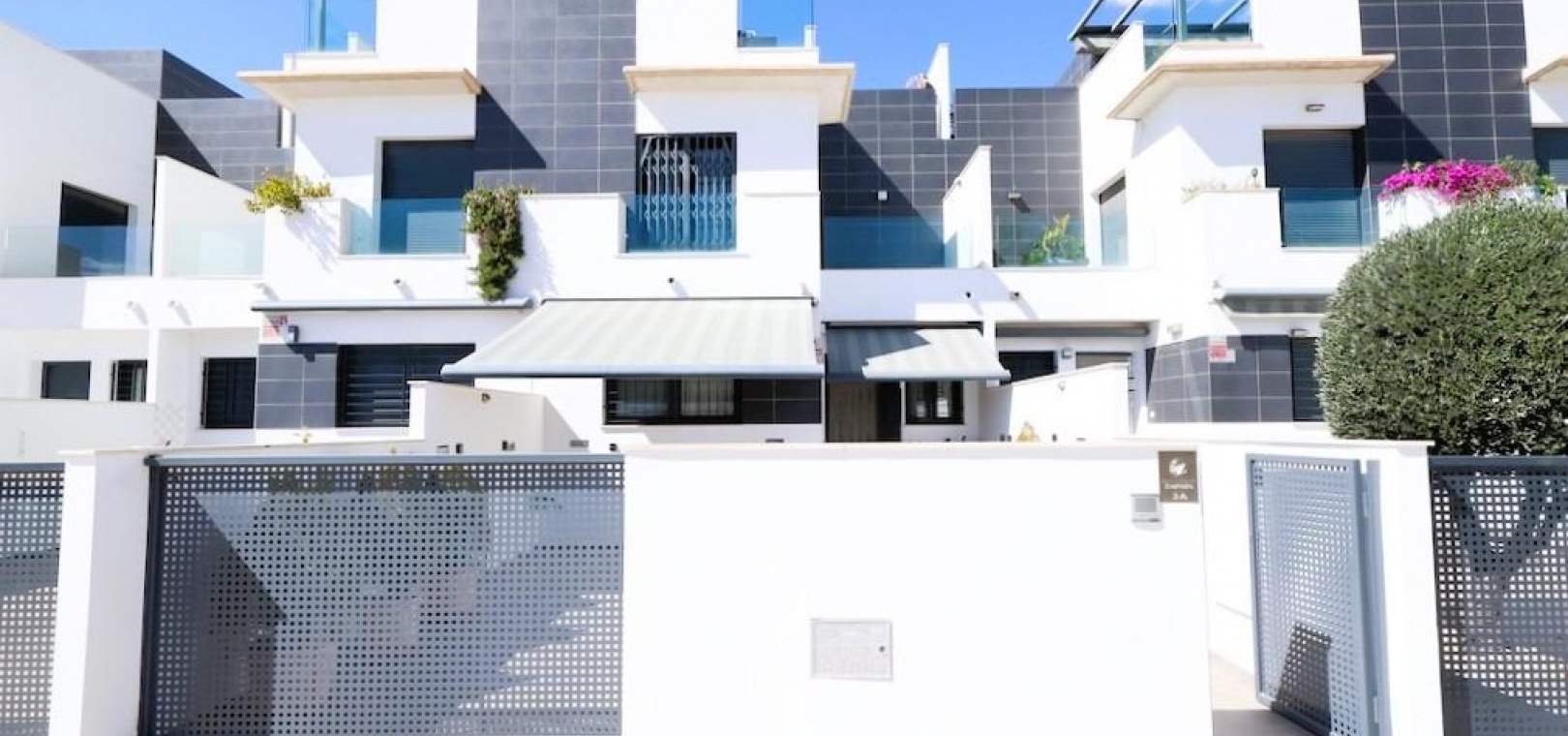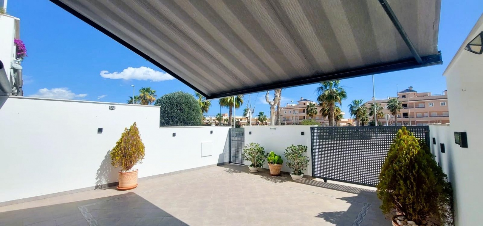 Verpassen Sie nicht die Gelegenheit, dieses schöne, geräumige und sonnige, halbneue Stadthaus zu besichtigen, das 2013 nach hohen Standards gebaut wurde und 7 Gehminuten von der Playa del Puerto in Torre de la Horadada entfernt liegt.~~Im Erdgeschoss haben wir einen hellen Garten mit automatischer Einfahrt für Fahrzeuge, ein geräumiges Wohn-Esszimmer mit Zugang zur Küche, einen Hauswirtschaftsraum, eine hintere Terrasse mit viel Stauraum, 1 Schlafzimmer mit Einbauschrank, 1 komplettes Badezimmer mit Dusche und einen Abstellraum/Speisekammer.~~Im ersten Stock gibt es 2 geräumige Doppelschlafzimmer mit Einbauschränken, 1 komplettes Badezimmer mit Dusche und Fenster. Jedes der Schlafzimmer hat Zugang zu einer Terrasse, von denen eine einen unverbauten Blick auf den Park bietet.~~Im dritten Stock gibt es eine 52 m² große Sonnenterrasse mit Meerblick.~~Es wird komplett möbliert und mit Elektrogeräten verkauft, alle praktisch neu. Es verfügt über 4 Klimaanlagen mit Warm-/Kaltpumpe und Deckenventilatoren in allen Räumen des Anwesens. Solarpanel für Warmwasser. Glatte Wände, Sicherheitstür, Sicherheitsgitter und Moskitonetze an Türen und Fenstern.~~Dieses fantastische Haus befindet sich in einer gepflegten Urbanisation mit einem schönen Pool. Es liegt in einer der besten Gegenden von Torre de la Horadada, sehr ruhig, gegenüber einem großen Park, 500 Meter vom Strand entfernt, umgeben von allen notwendigen Dienstleistungen und mit sehr guter Anbindung an die Autobahnen.~~Dies ist eine fantastische Gelegenheit, eine halbneue Villa in wunderschönem Zustand zu erwerben, ohne auf den Bau warten zu müssen, und die alle notwendigen Annehmlichkeiten beinhaltet.~~